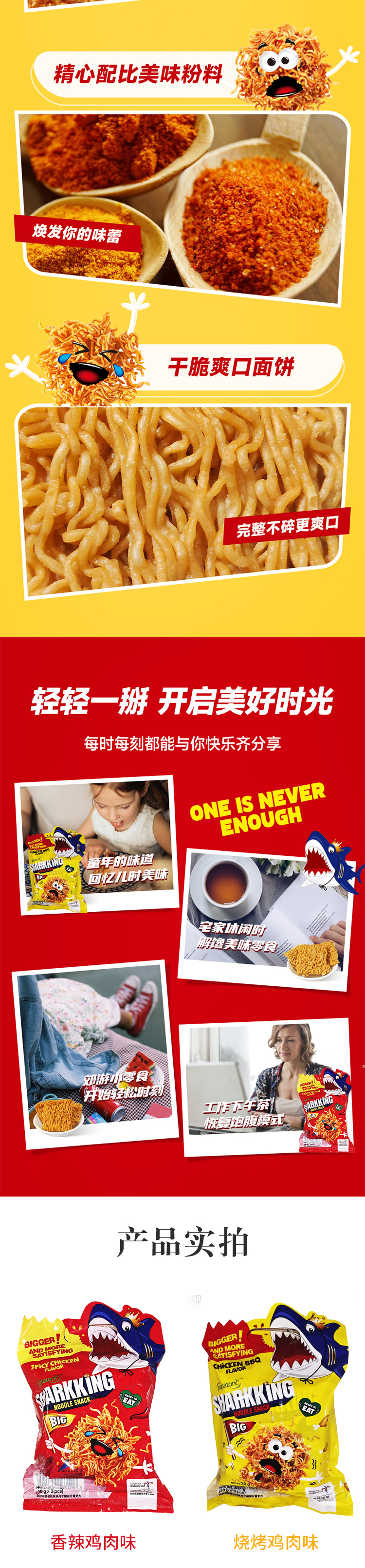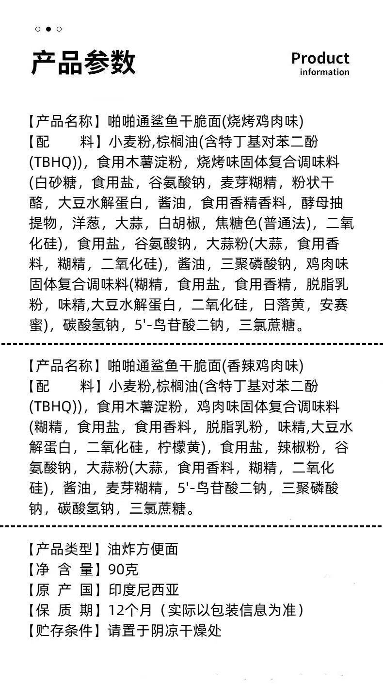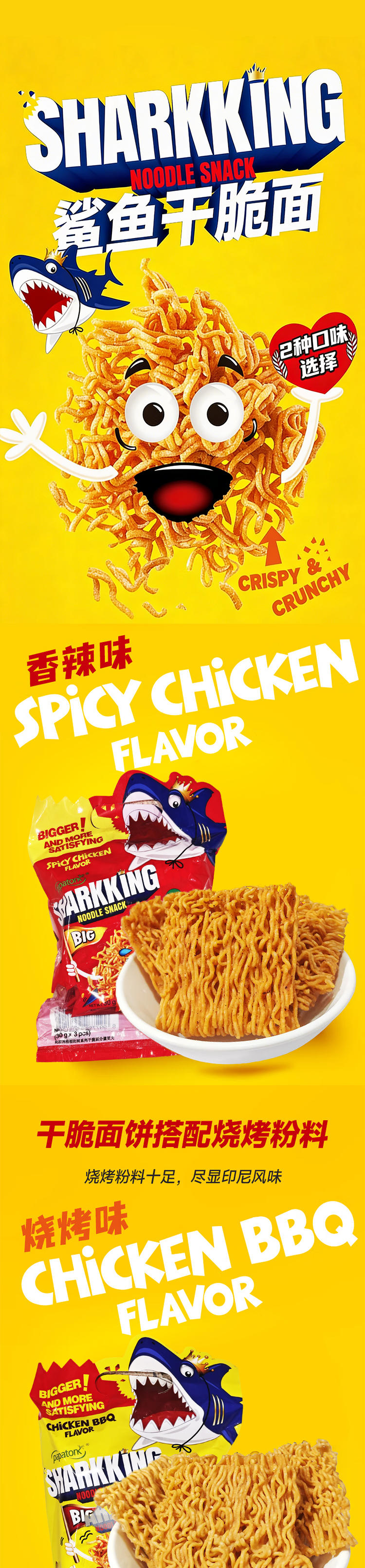 印度尼西亚进口啪啪通鲨鱼干脆面 (香辣|烧烤鸡肉味)90g/袋