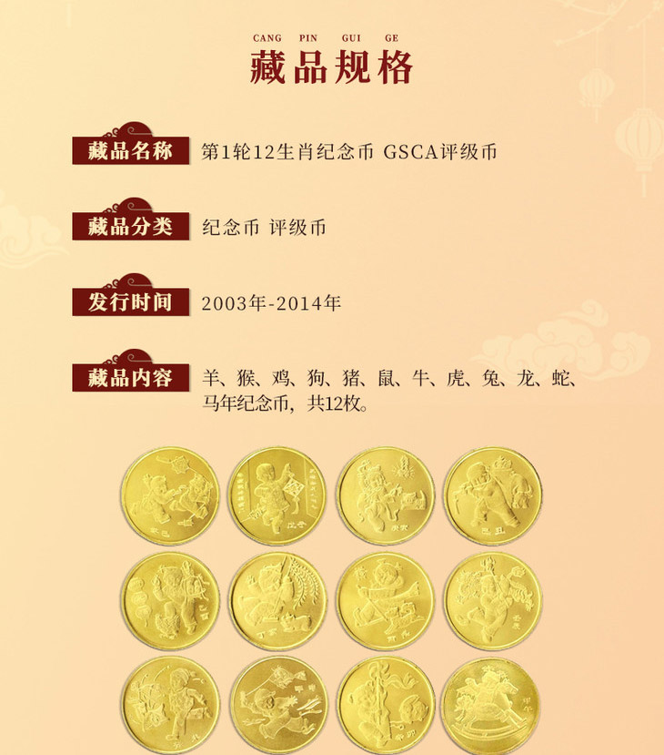 评级版《首轮十二生肖流通纪念币》十二生肖纪念币