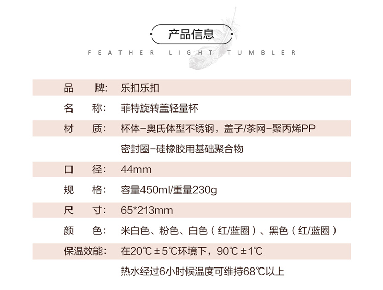 乐扣乐扣(LOCK&LOCK) 保温杯轻量杯 菲特旋盖情侣杯商务杯 白红黑蓝450ml*2 LHC4131S602