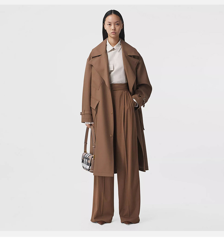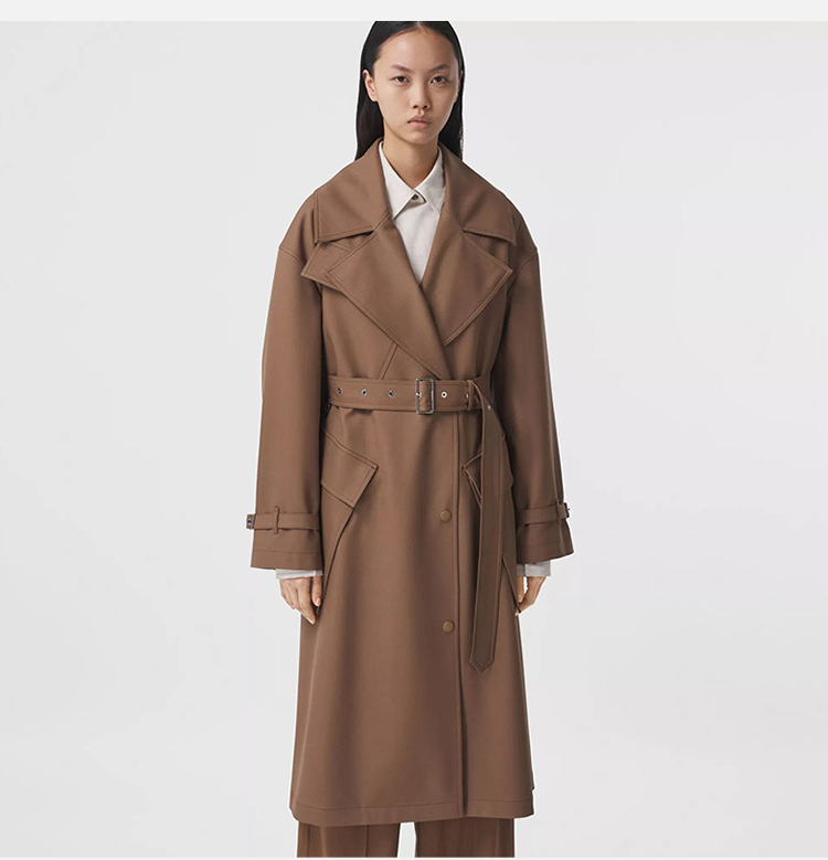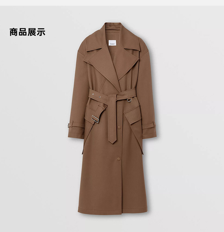 【二】BURBERRY 巴宝莉 女士口袋细节羊毛束带大衣 棕色 8038930 A7404