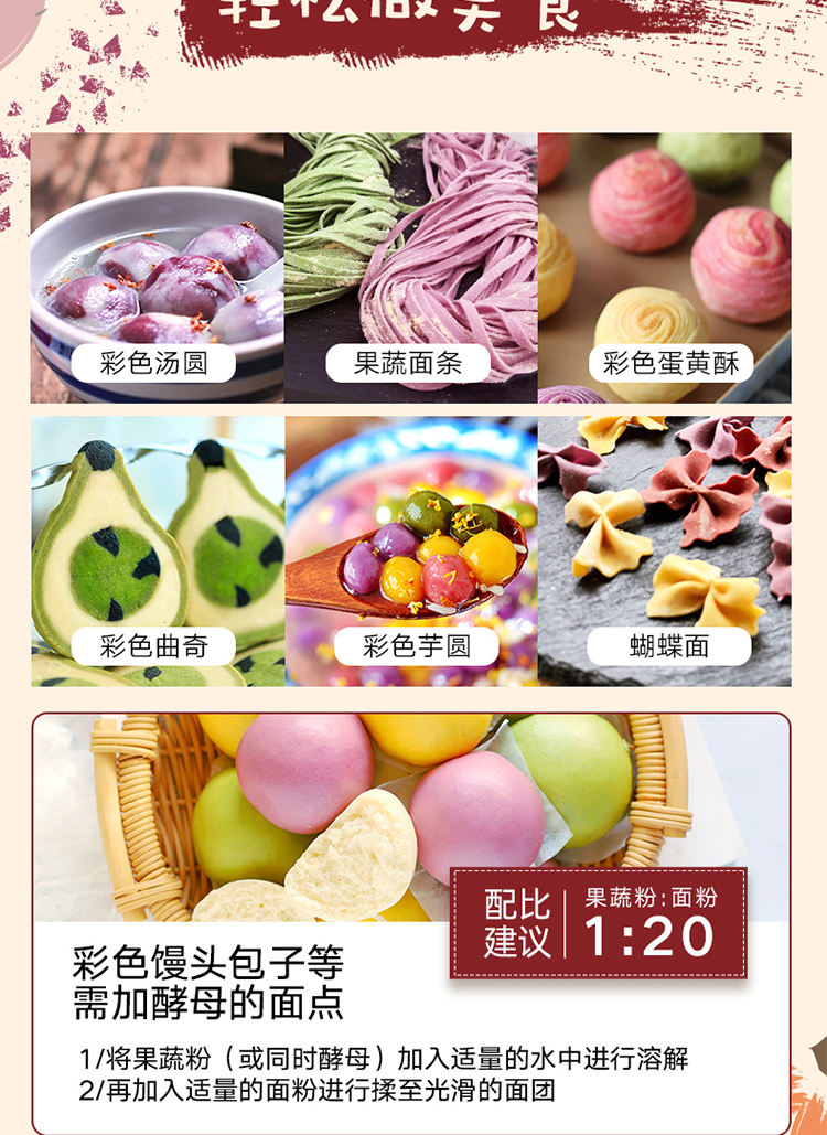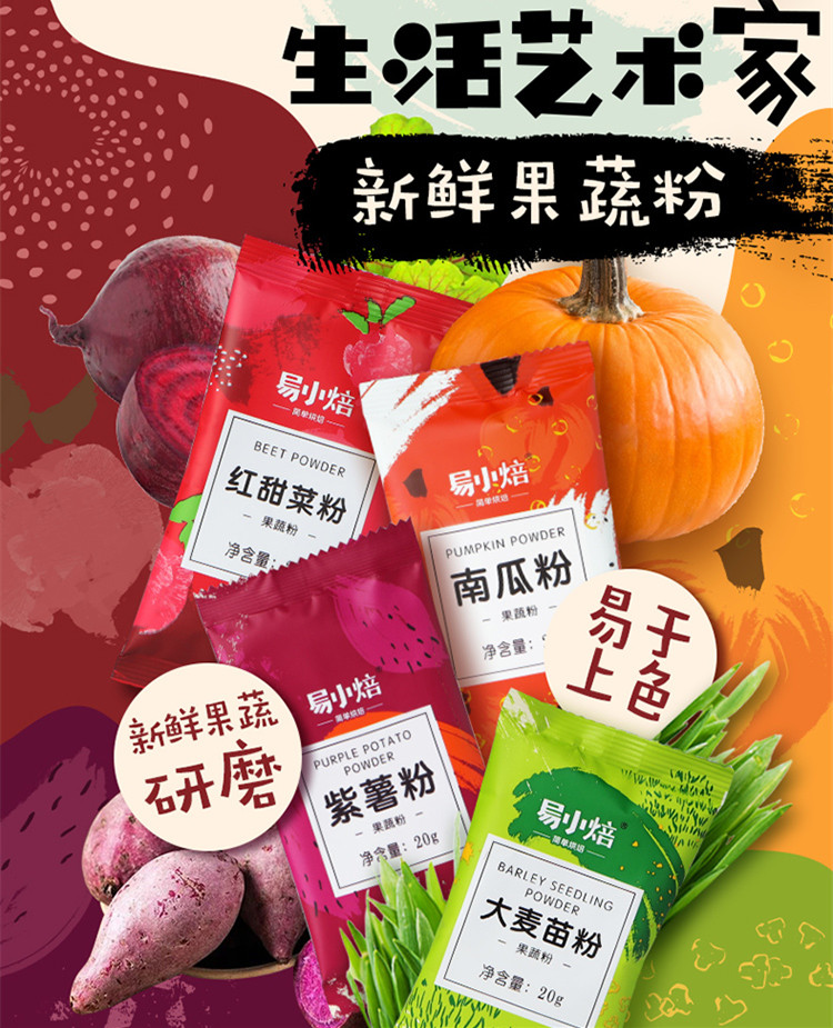 20g 易小焙果蔬粉 草莓芒果南瓜粉紫薯粉红甜菜粉大麦苗粉 食用色素粉