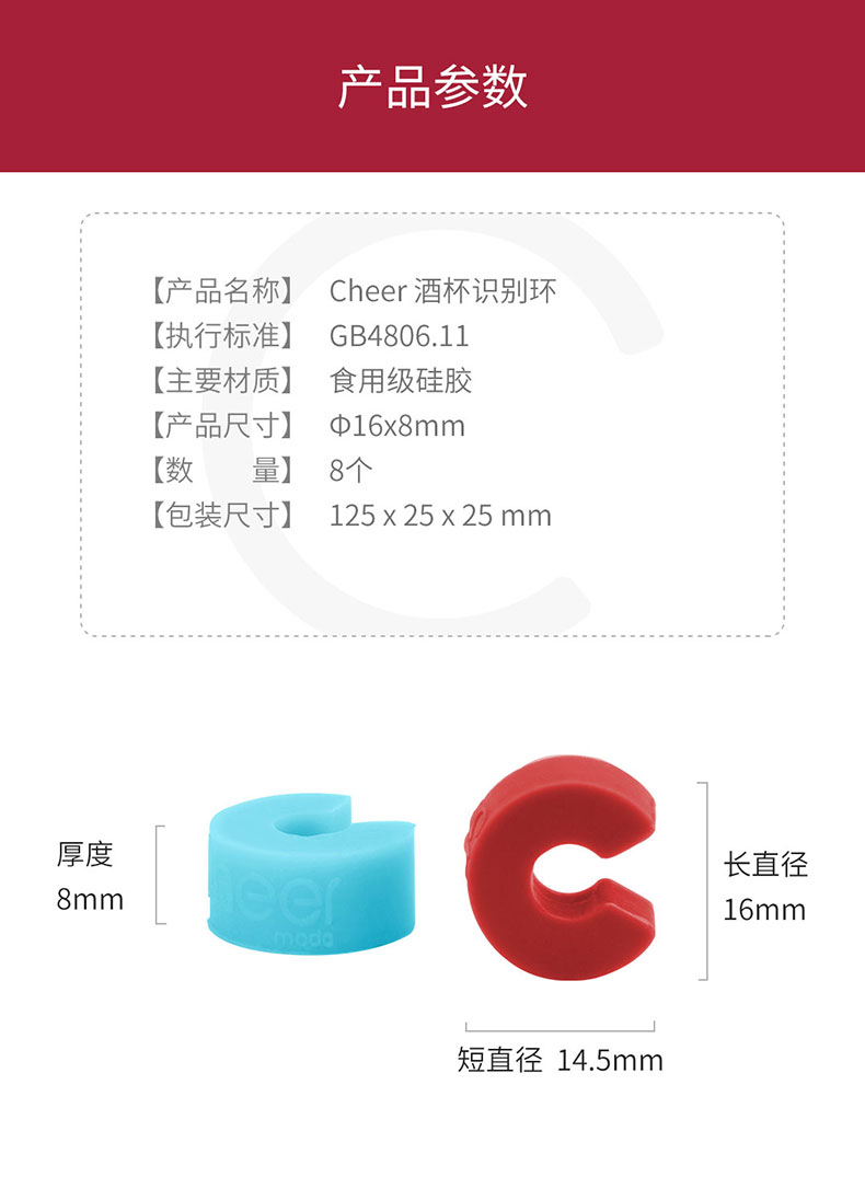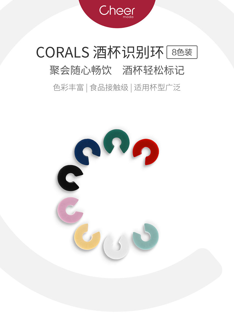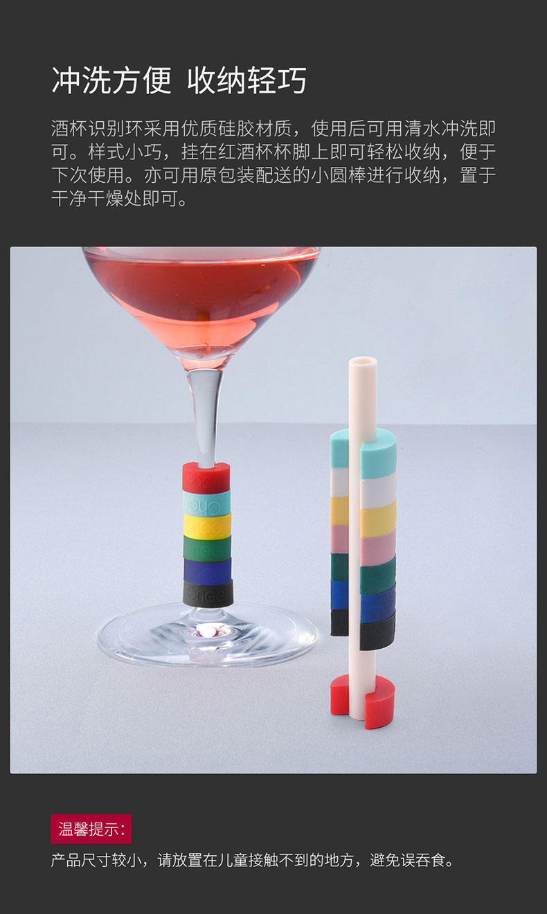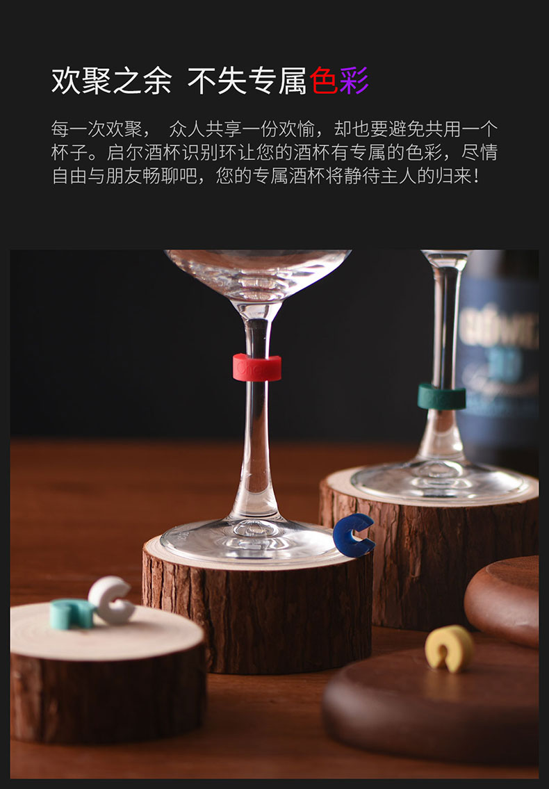 Cheer启尔 酒杯识别环 迷你小巧酒杯识别器 梦幻彩虹色 8颗装