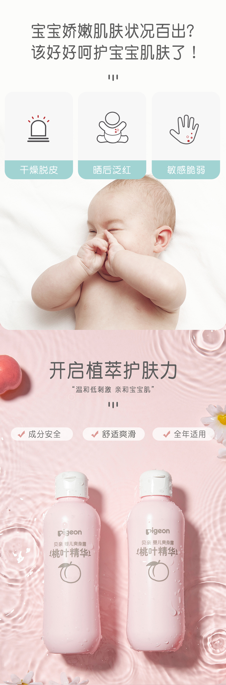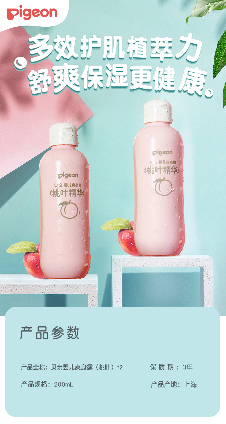 贝亲桃叶液体爽身粉宝宝痱子去新生桃叶精华止痒婴儿童幼儿专用/IA171