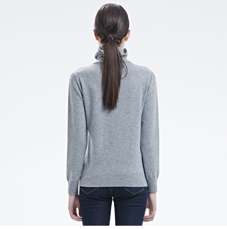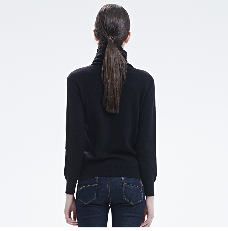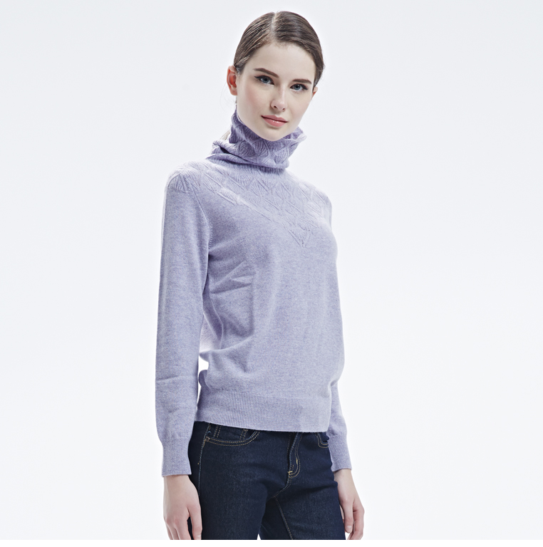 羊绒世家女秋冬新品纯色简约堆领毛衣女薄款菱形印花纯山羊绒衫女