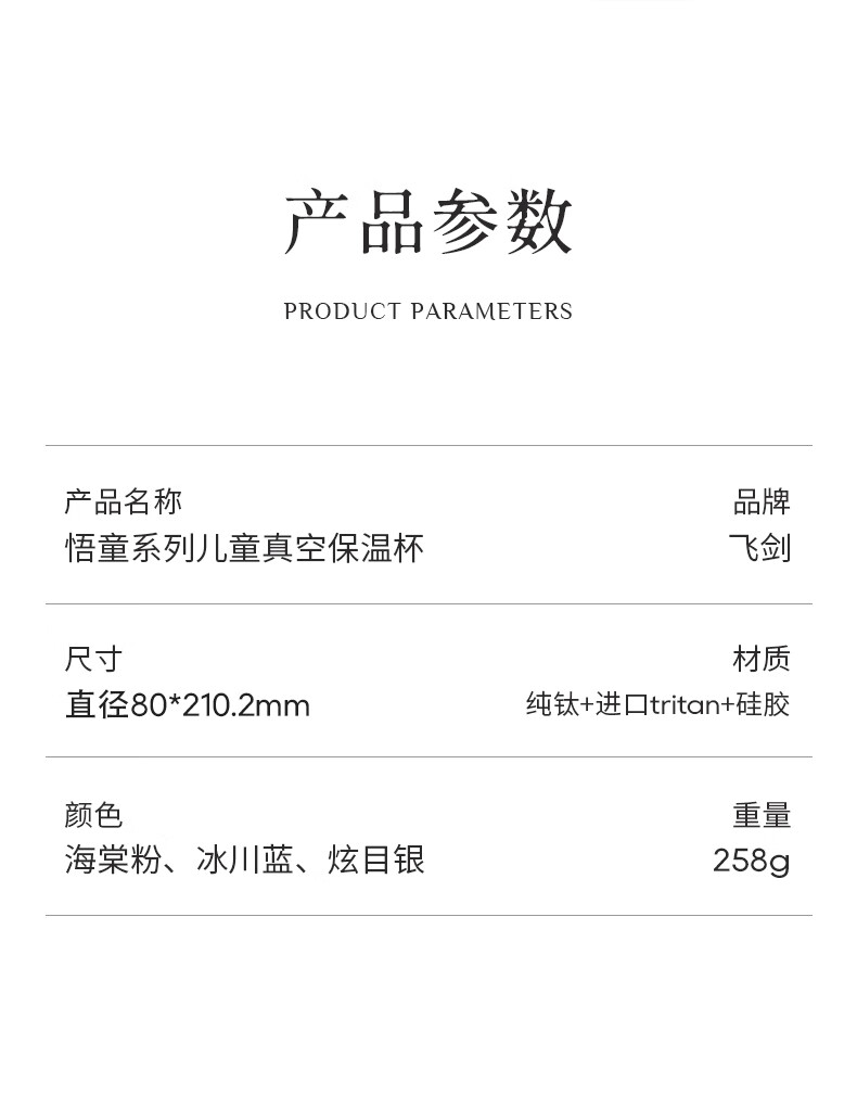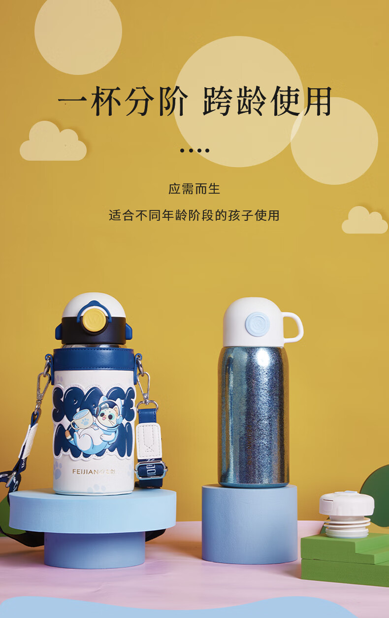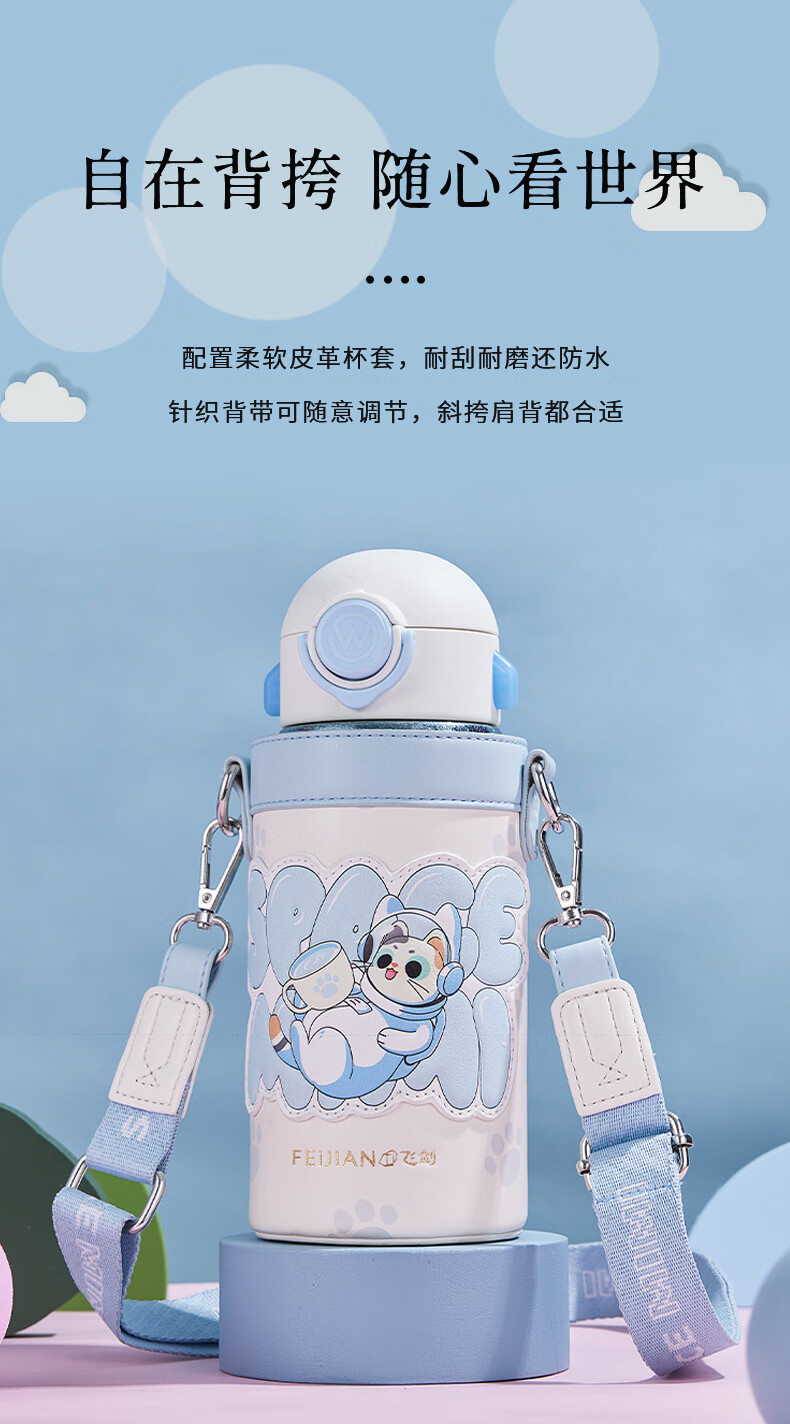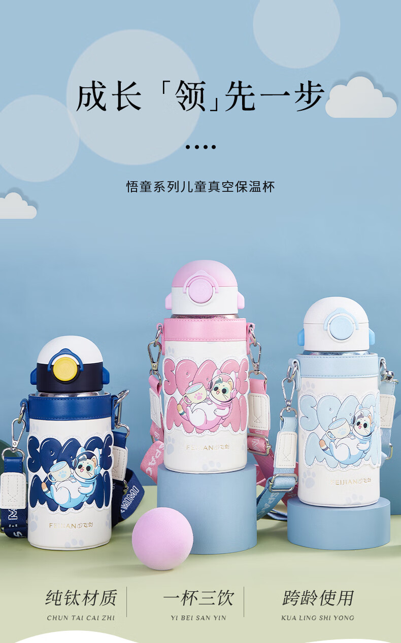 飞剑 550ML航天系列钛品保温杯 悟童儿童保温钛杯幼儿园吸管双盖纯钛保温钛杯保温壶斜跨水杯外出钛水杯