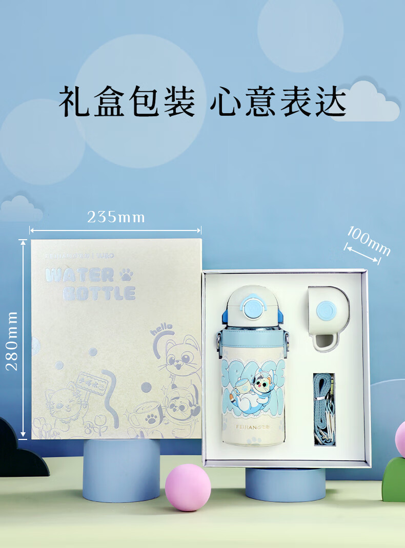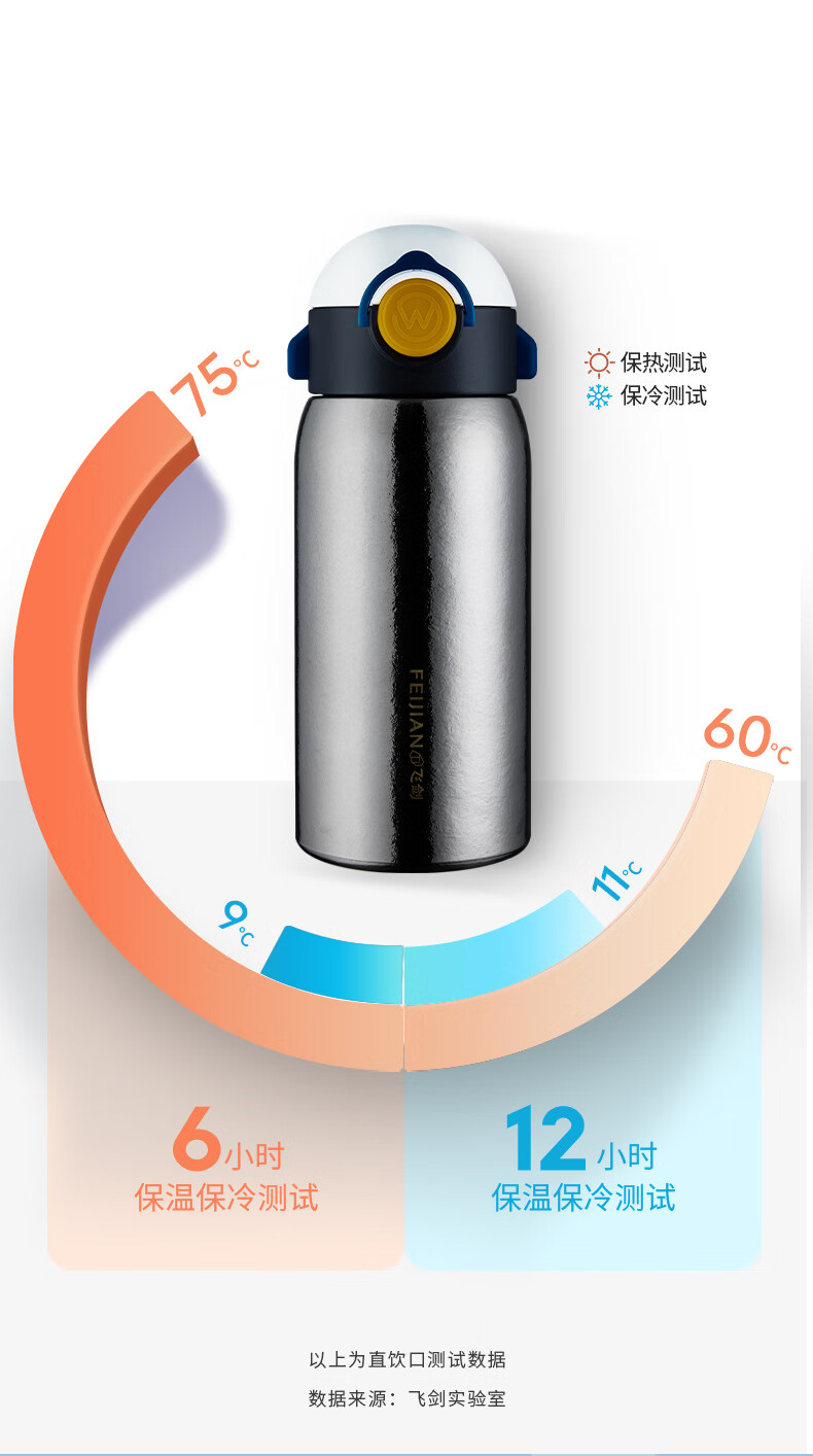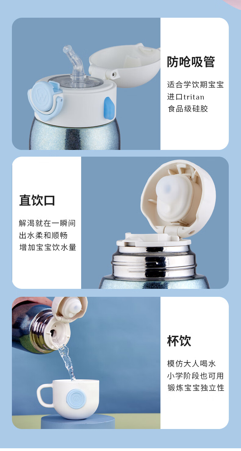 飞剑 550ML航天系列钛品保温杯 悟童儿童保温钛杯幼儿园吸管双盖纯钛保温钛杯保温壶斜跨水杯外出钛水杯