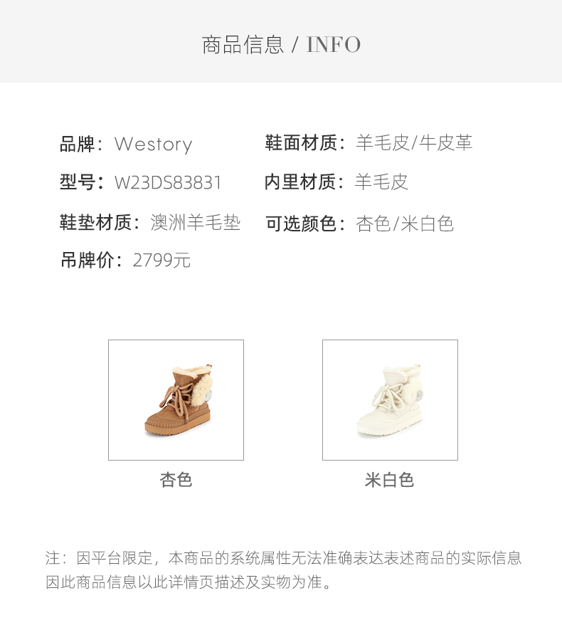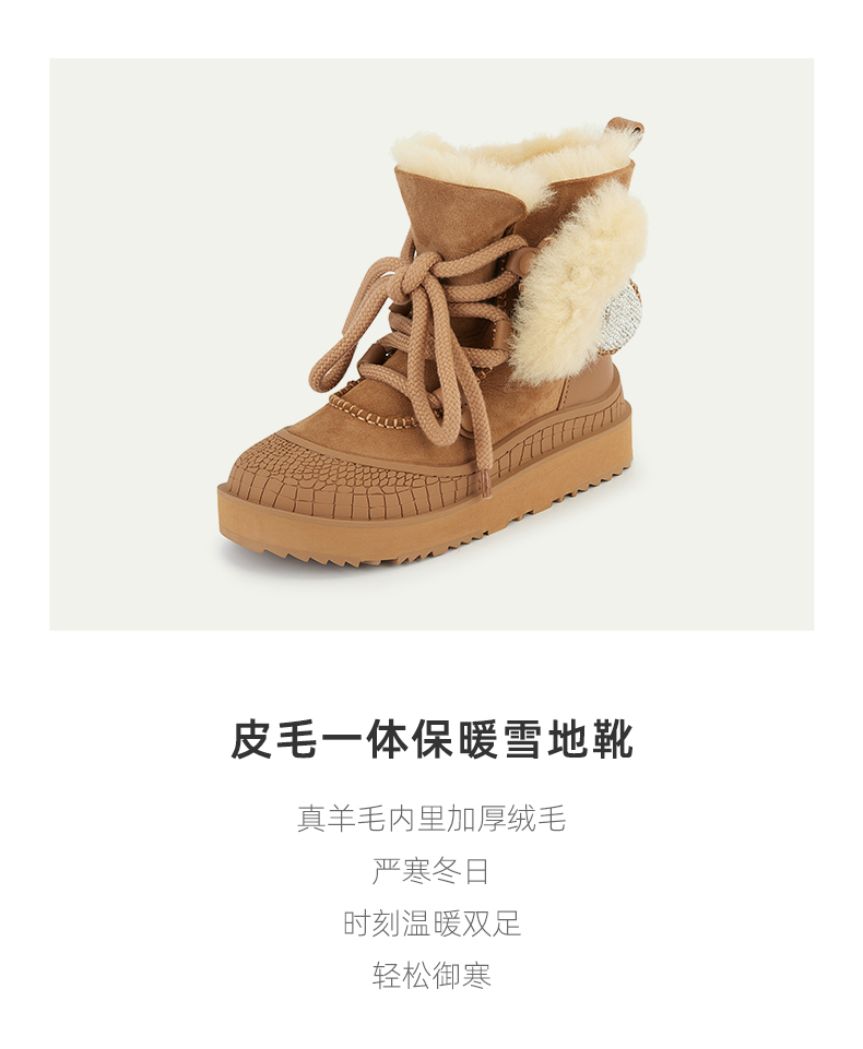 westory2023秋冬新款雪地靴女羊皮毛一体防滑厚底加厚保暖雪地靴W23DS83831
