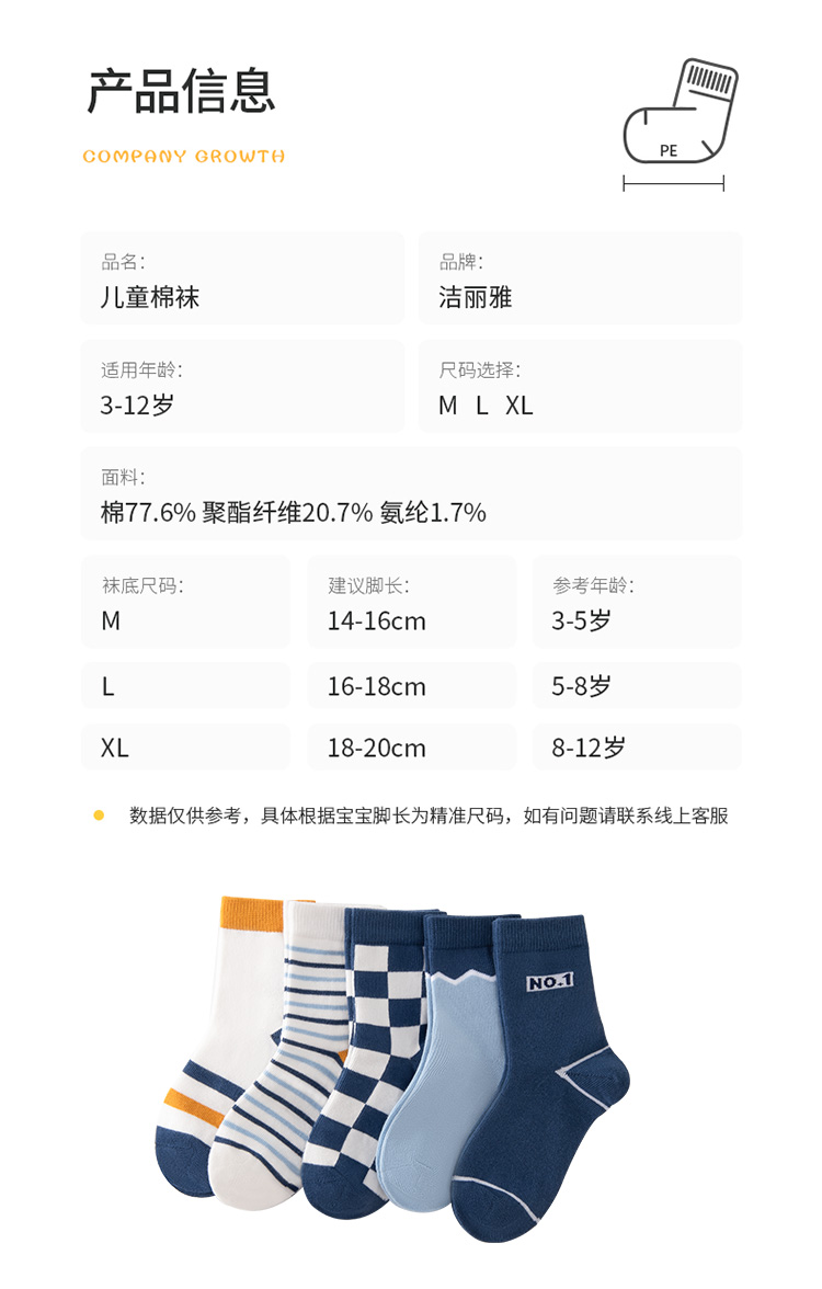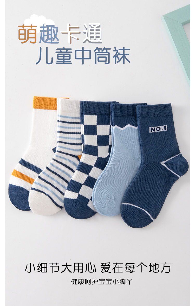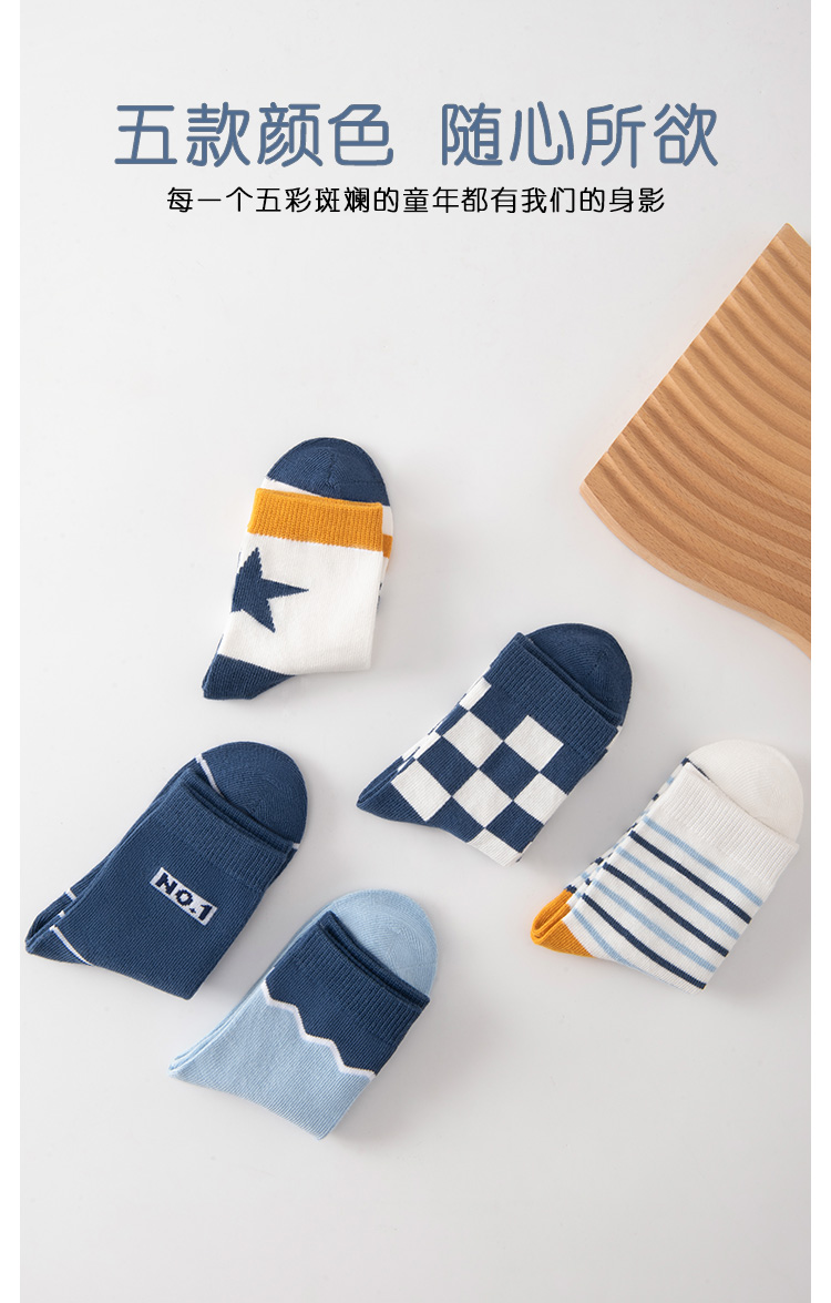 【五双装】洁丽雅正品棉质童袜透气不闷脚可爱童趣弹力舒适儿童袜