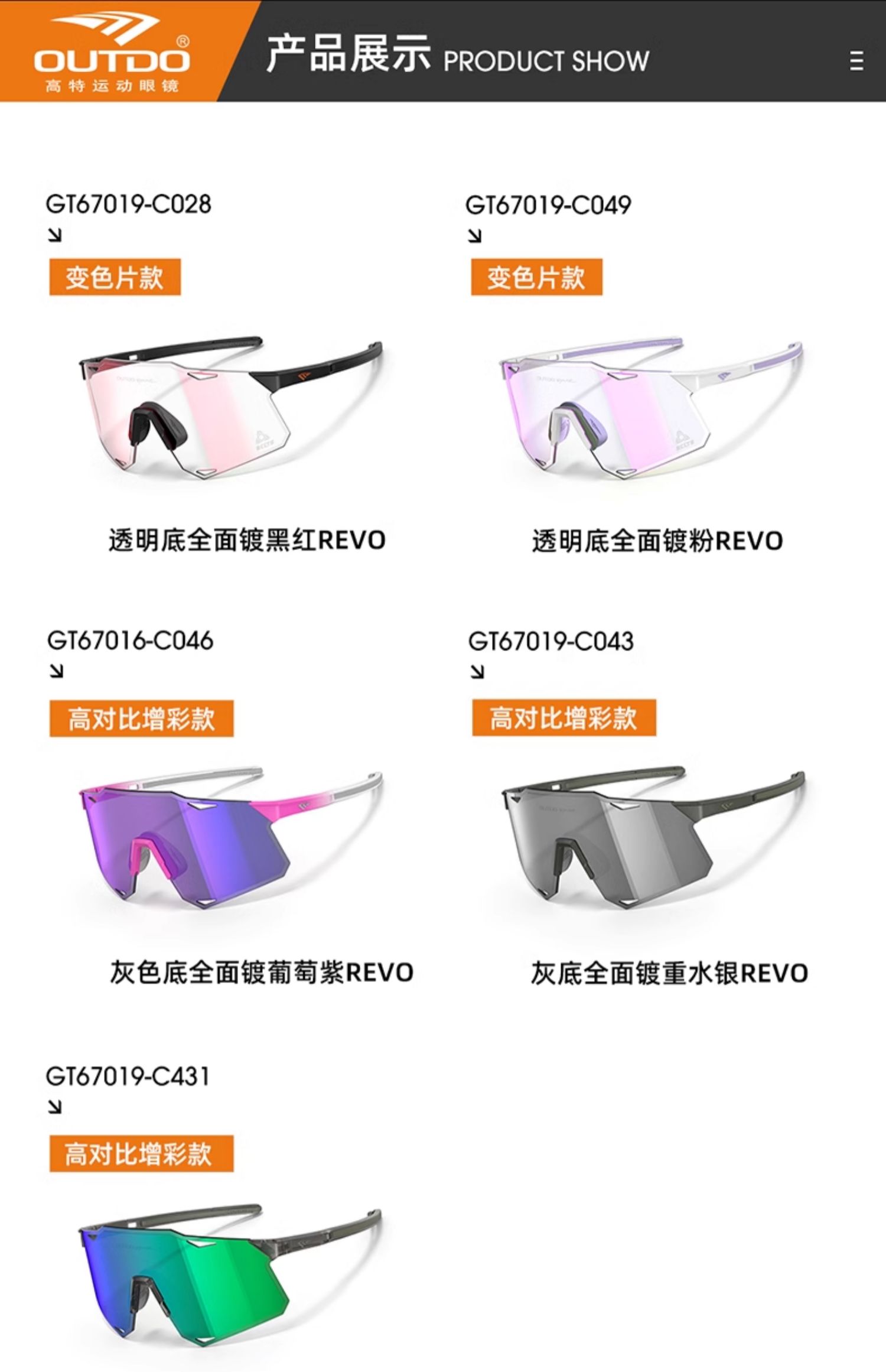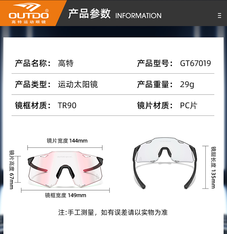 高特骑行眼镜变色男款女专业自行车公路车高清防风护目镜GT67019