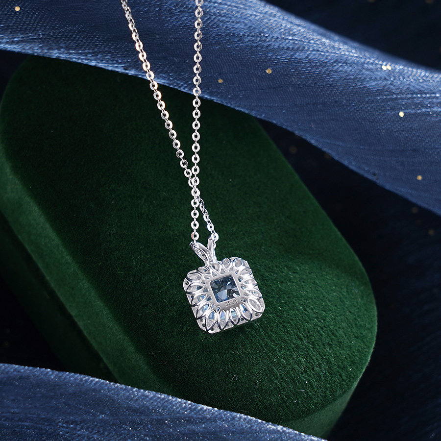 【寓意】:小众方形套链,镶嵌晶莹剔透的蓝宝石,灵动澄澈,宛如将大海的深邃之美凝于方寸之间。寓意获得来自大海的神秘力量,美丽年年,好运连绵。