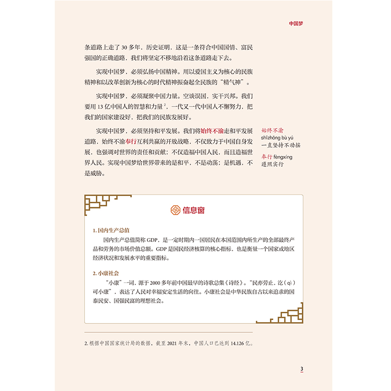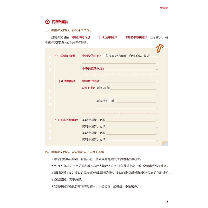 《高级中文读写教程》依据内容与语言融合式教学理念,将语言内容学习和语言技能训练融为一体,强调理论与实践相结合,采用时政文献、新闻报道、时事评论、人物故事等丰富的真实语料,客观反映当代中国的真实风貌,多角度、全方位引导学习者直观感知当代中国,了解当代中国的治理观和国际观。通过对课文内容的学习、思考和交流,以及不同类型的阅读和写作训练,不断提升学习者的中文应用能力、理解当代中国的能力、跨文化沟通能力和思辨能力。
