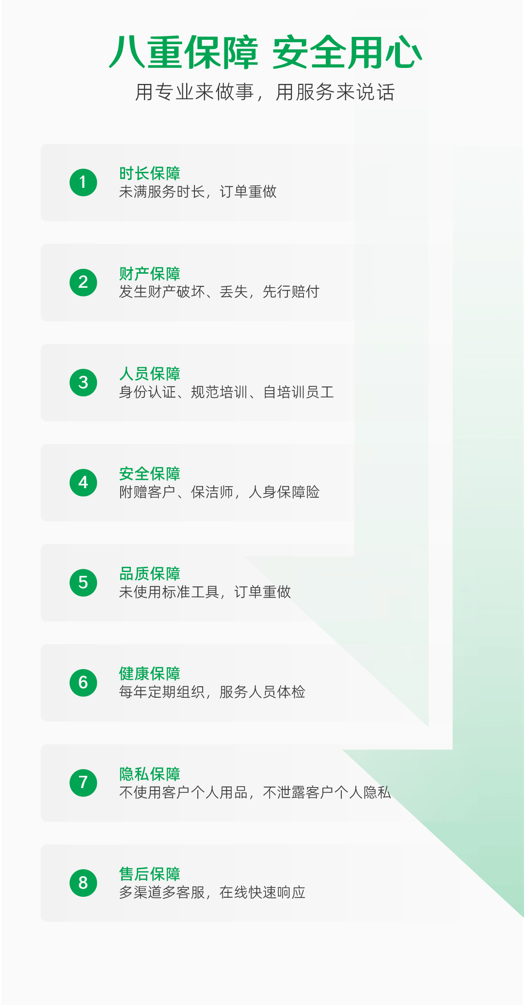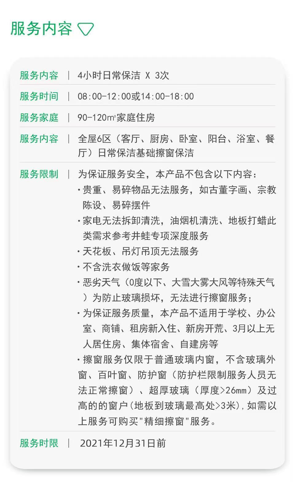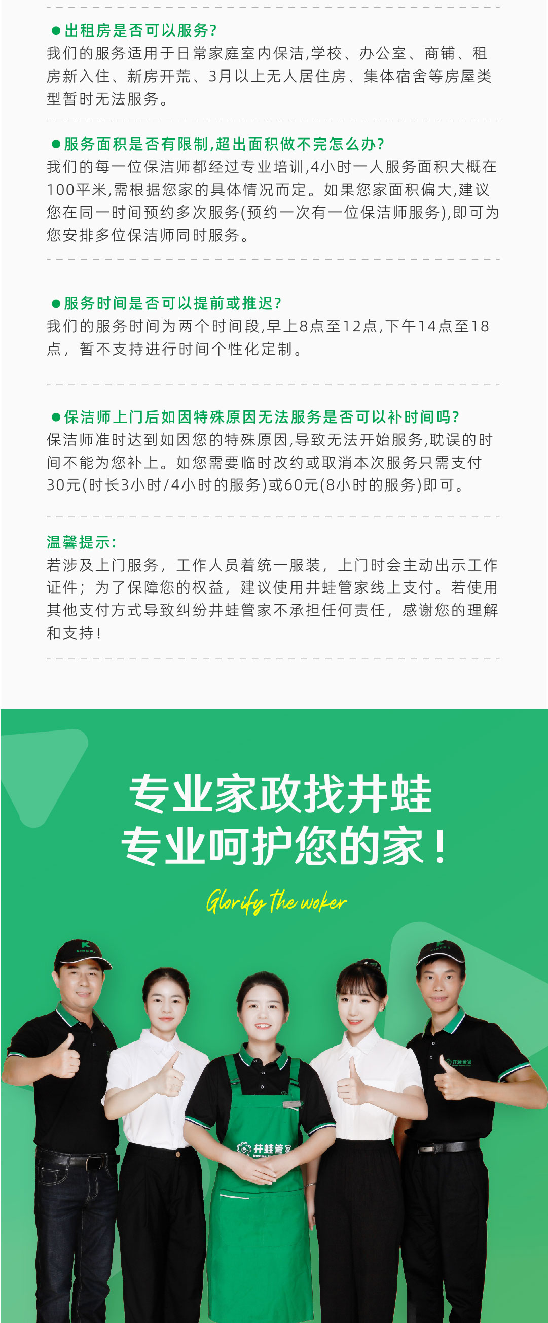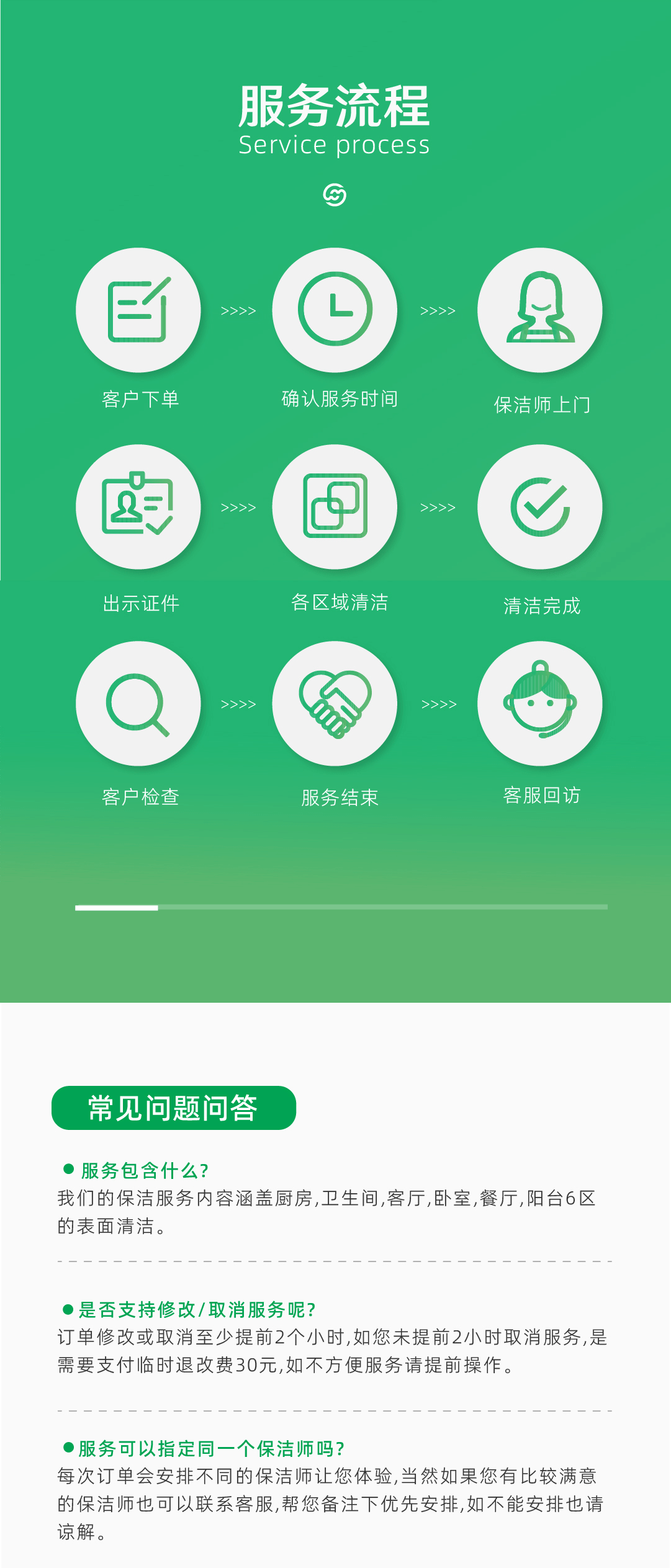 1.保洁服务,上门服务时间为8:00-18:00,超出时间暂无法提供服务,请根据家庭情况预约合适人员上门!如遇服务旺季,请提前预约,以免耽误您的排程;