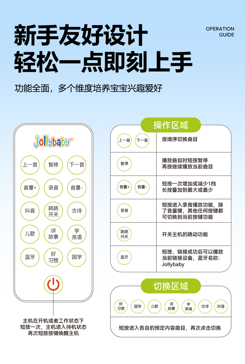 jollybaby音乐跳跳球婴幼儿玩具宝宝学说话可啃咬婴儿玩具0-1岁哄娃神器