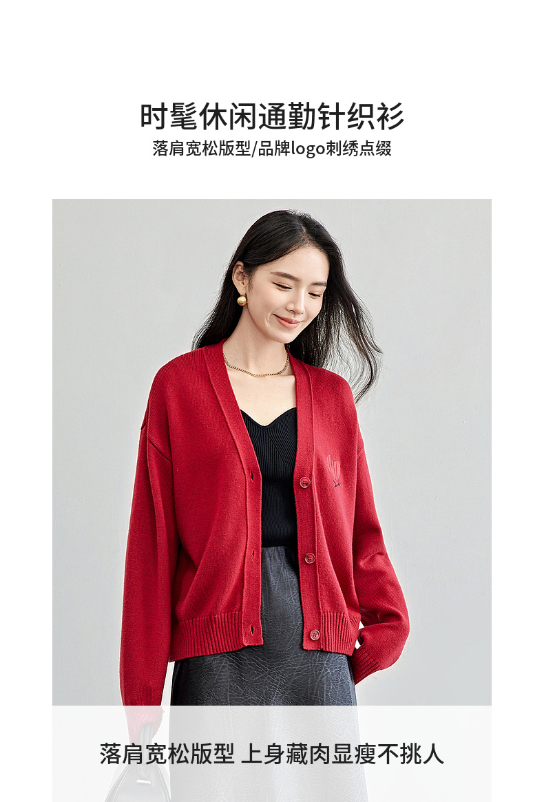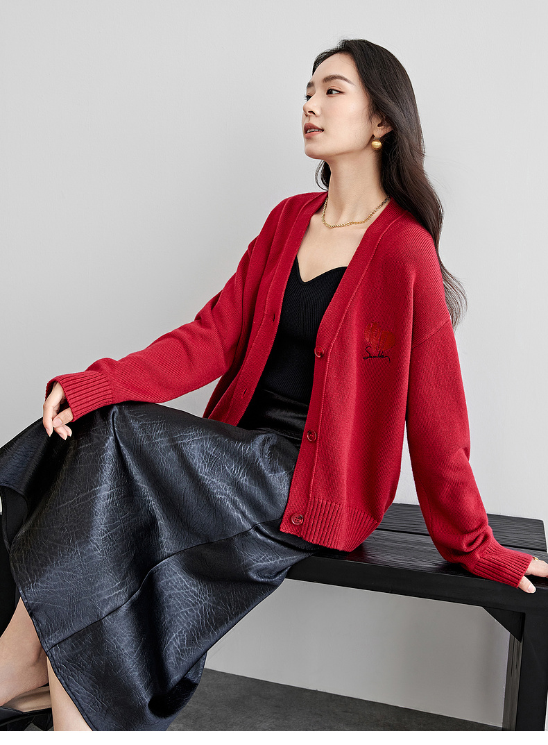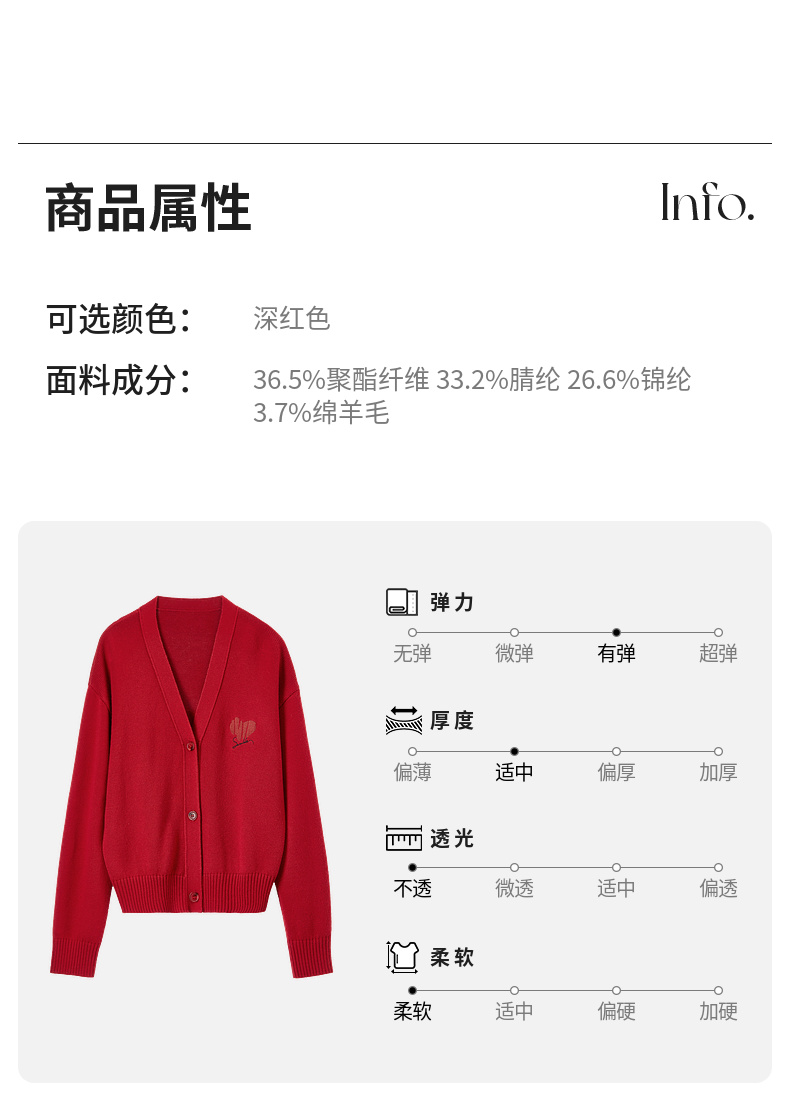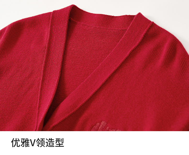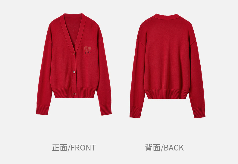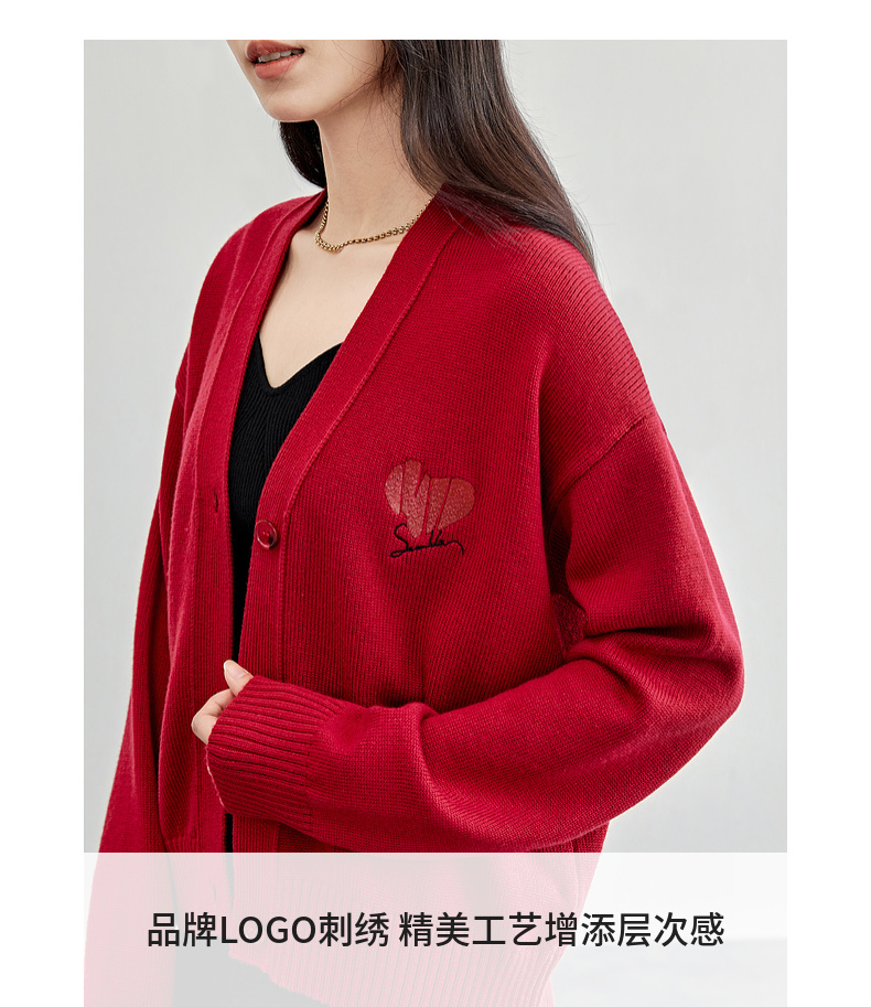 【内购】绵羊毛新年氛围感毛织开衫定制爱心logo安可雷红色毛衣-W51E58235