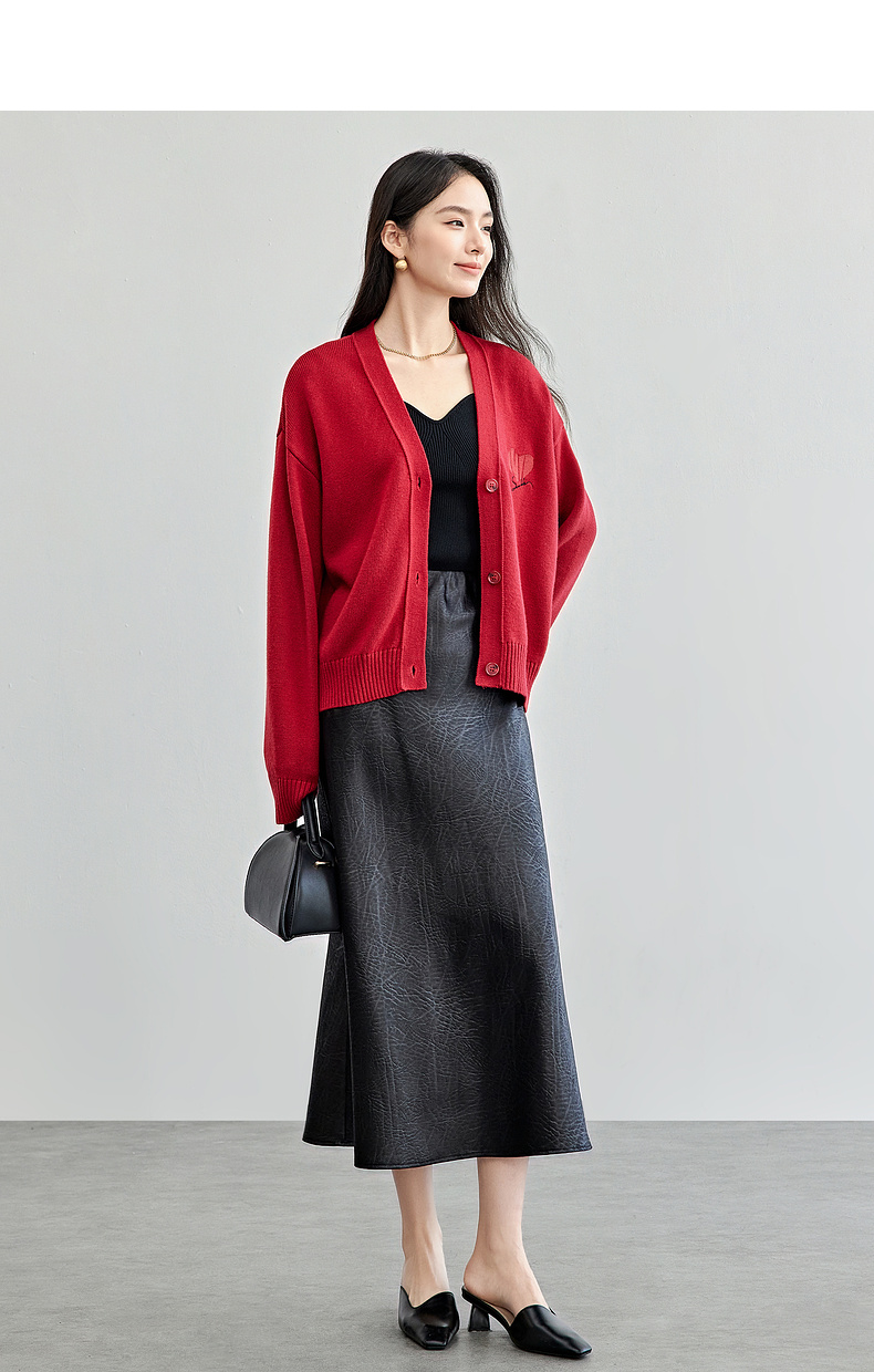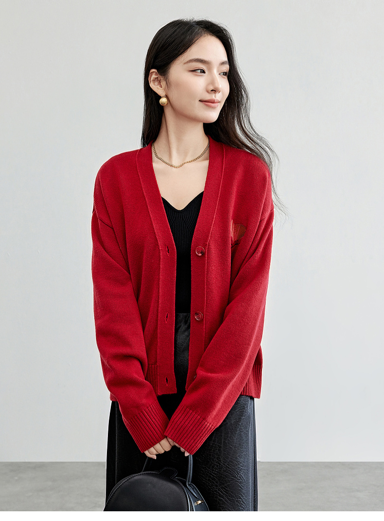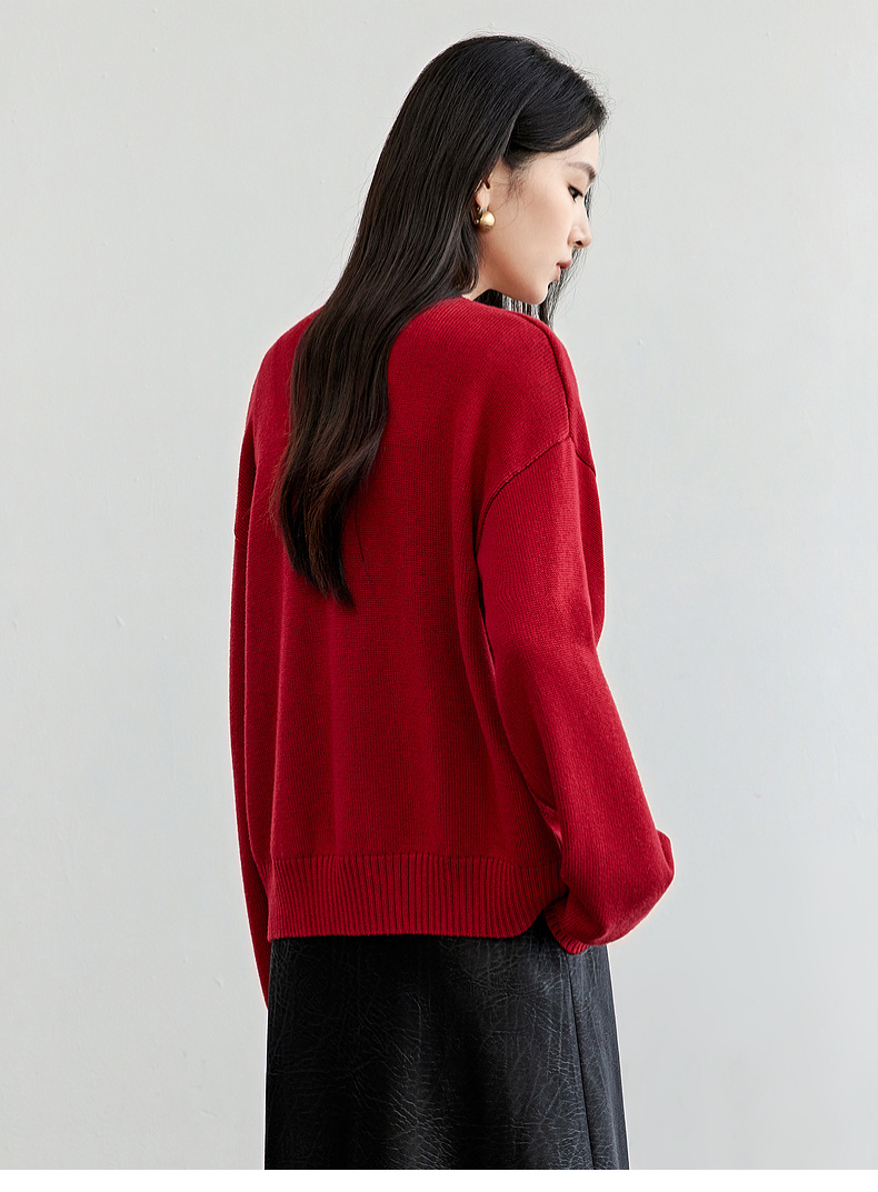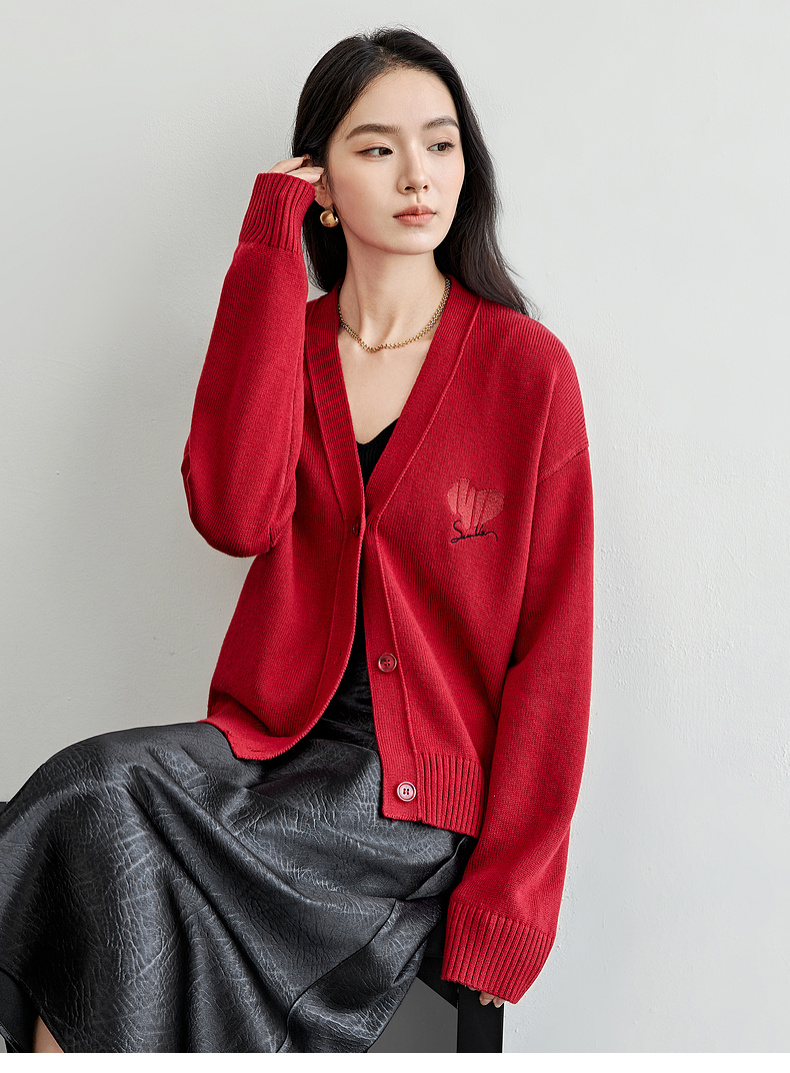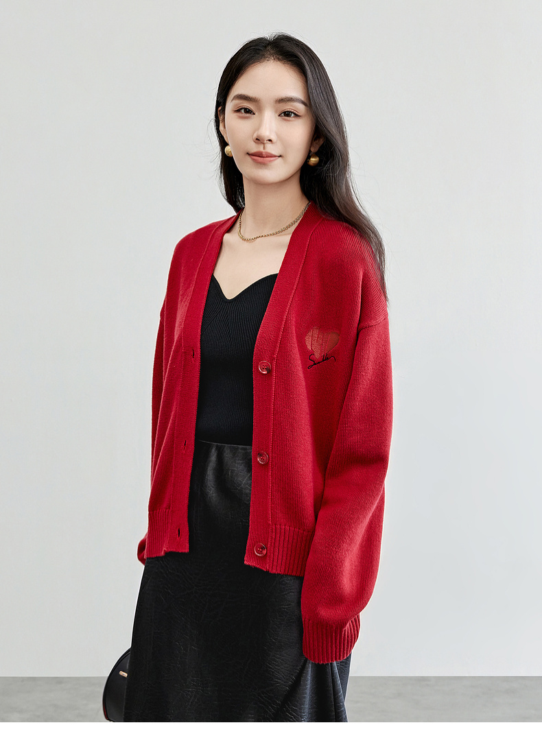 【内购】绵羊毛新年氛围感毛织开衫定制爱心logo安可雷红色毛衣-W51E58235