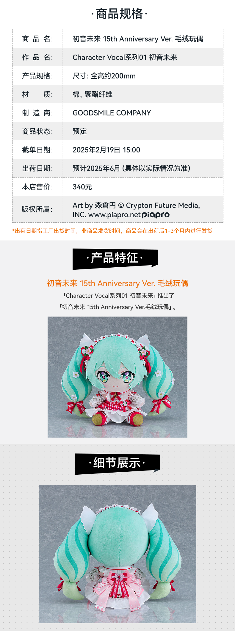 【GSC现货】初音未来 15th Anniversary Ver. 毛绒玩偶