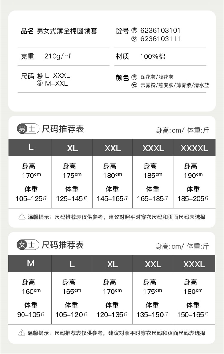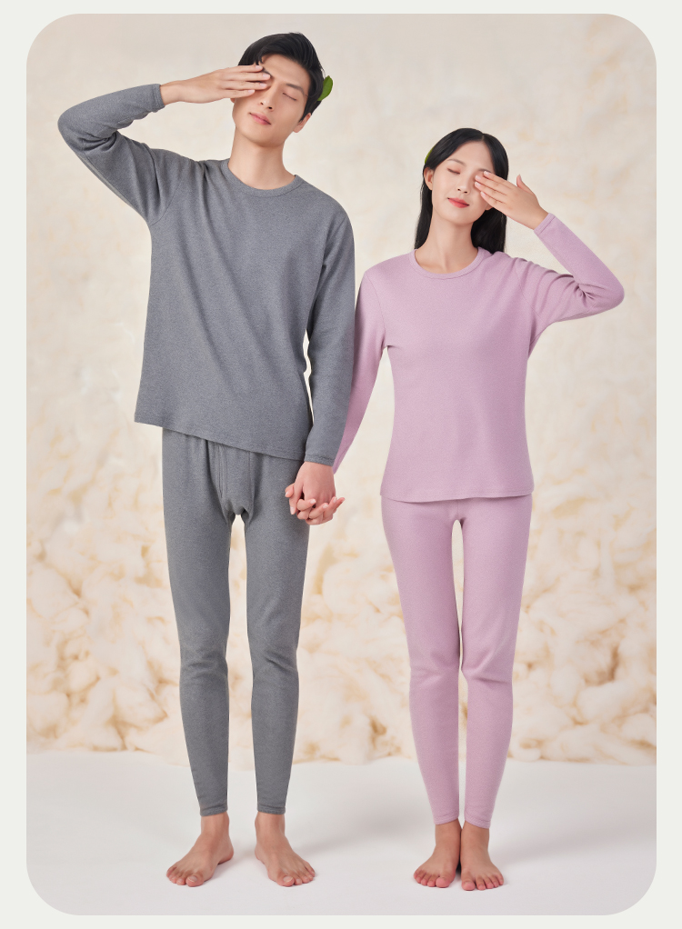 爱帝男/女士精梳纯棉内衣套装小圆领保暖套