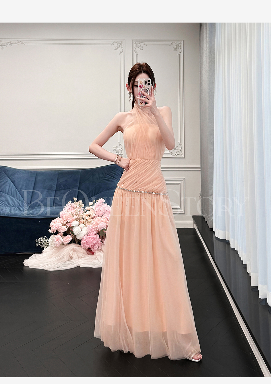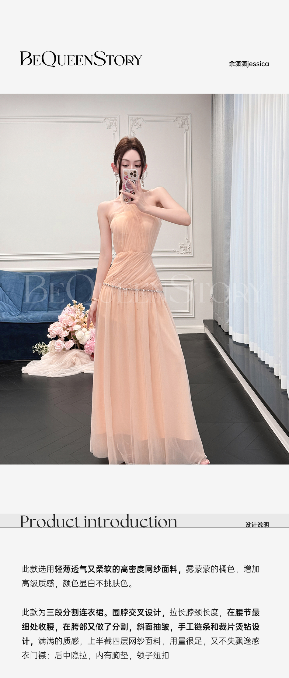 【孤品样衣,不退不换】【时光之恋】网纱烫钻高级感连衣裙轻奢时尚百搭2025春季新款