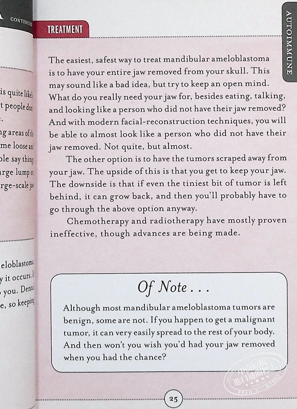 Because it's ultra-portable, you can (and probably should) have The Hypochondriac's Pocket Guide to Horrible Diseases You Probably Already Have with you at all times so at the slightest onset of an unmistakably fatal-feeling itchy rash, you can simply whip out your trusty guide, conveniently diagnose yourself, and then let the worrying begin.