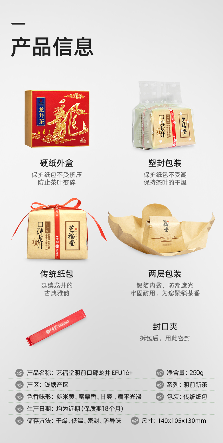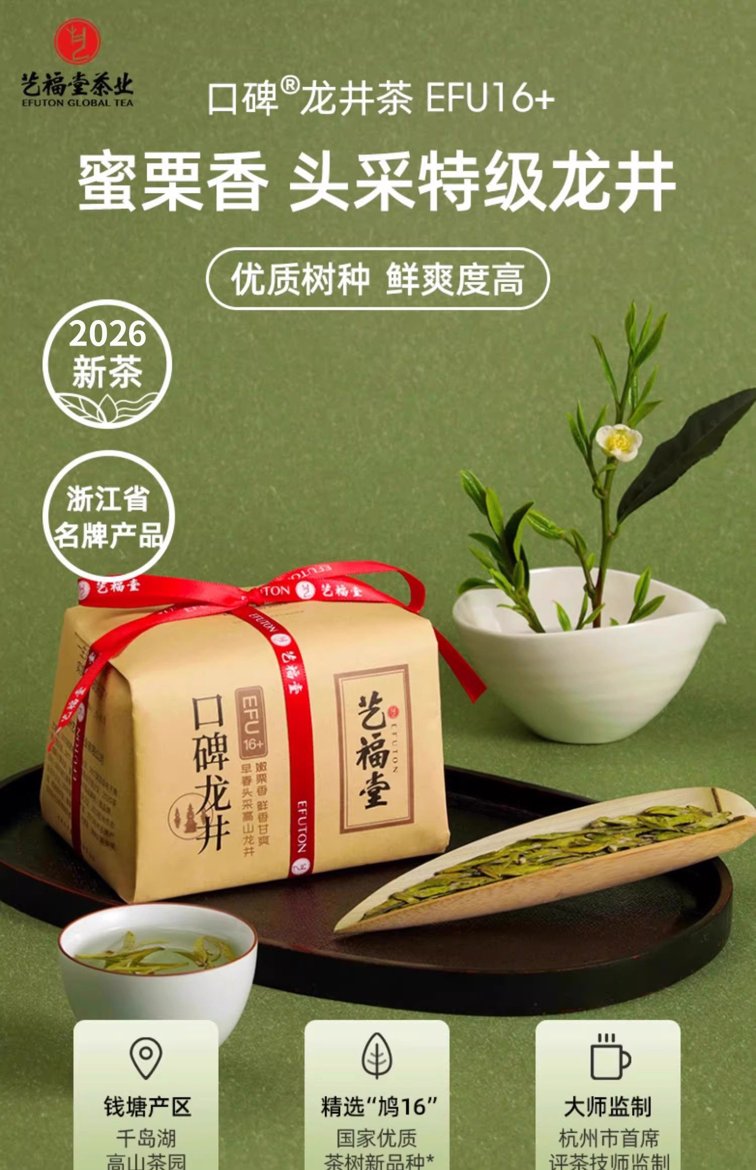 【新茶上市】艺福堂 明前特级口碑龙井茶 口碑龙井EFU16+ 2026新茶 250g/包