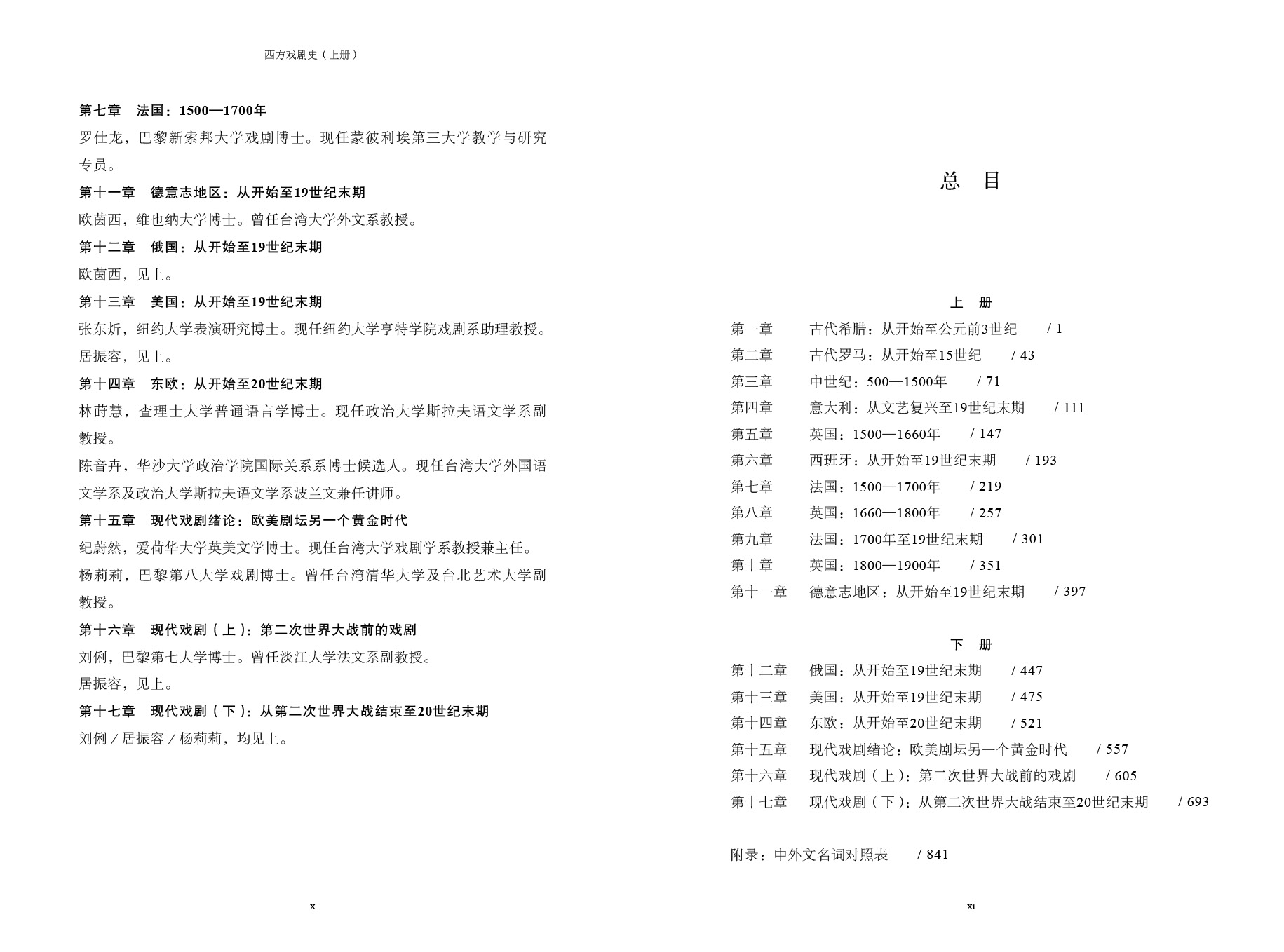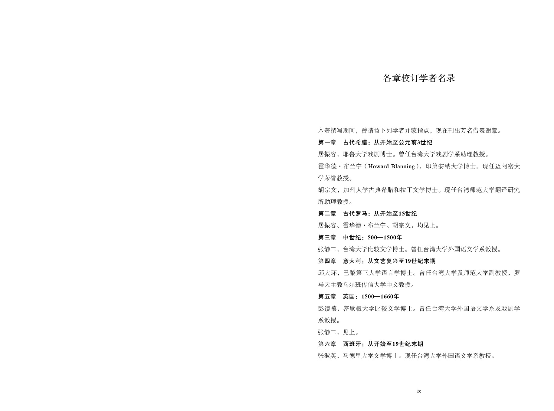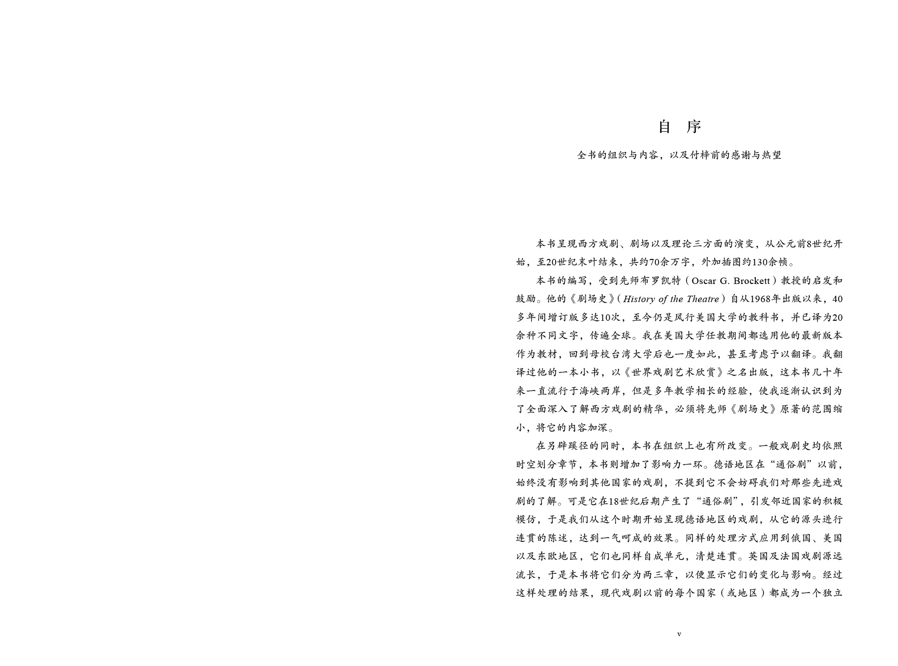 一、戏剧史。呈现每个时代戏剧的全貌,探讨其中的杰出作家及其代表作,对于许多次要作品也尽量勾勒出轮廓。