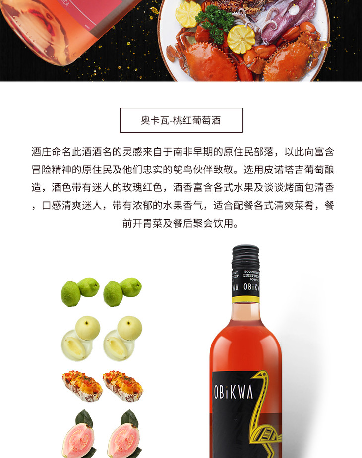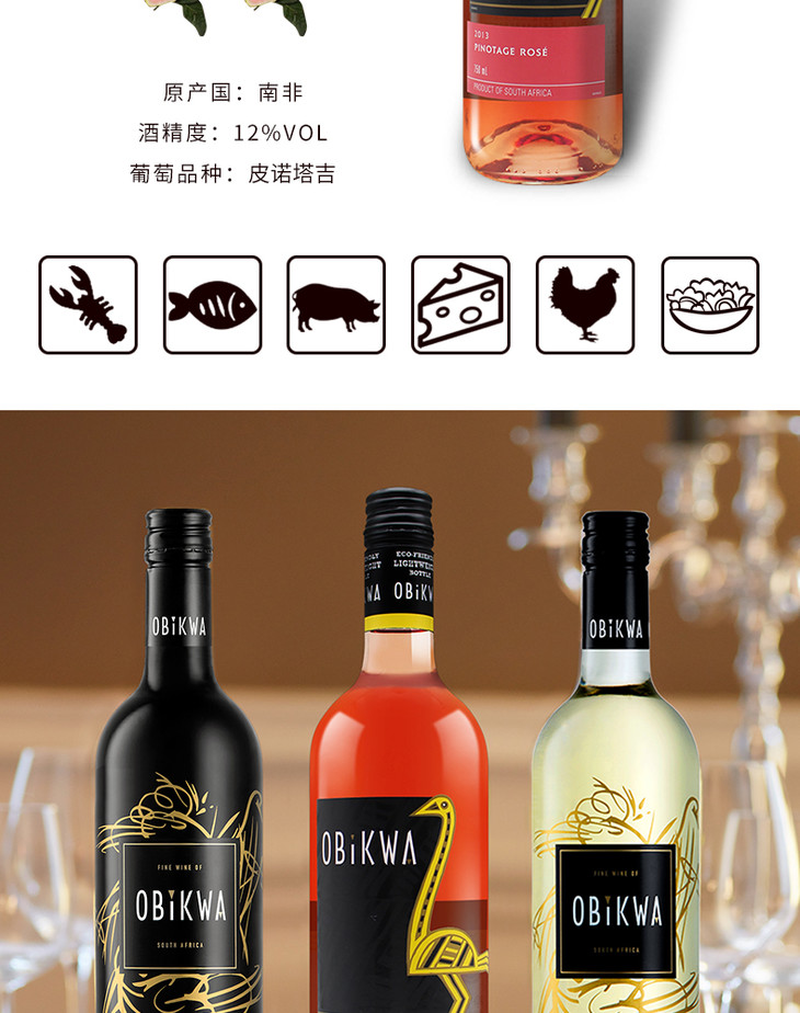 南非原瓶进口 奥卡瓦桃红葡萄酒 Obikwa Pinotage Rose 单支装750ml
