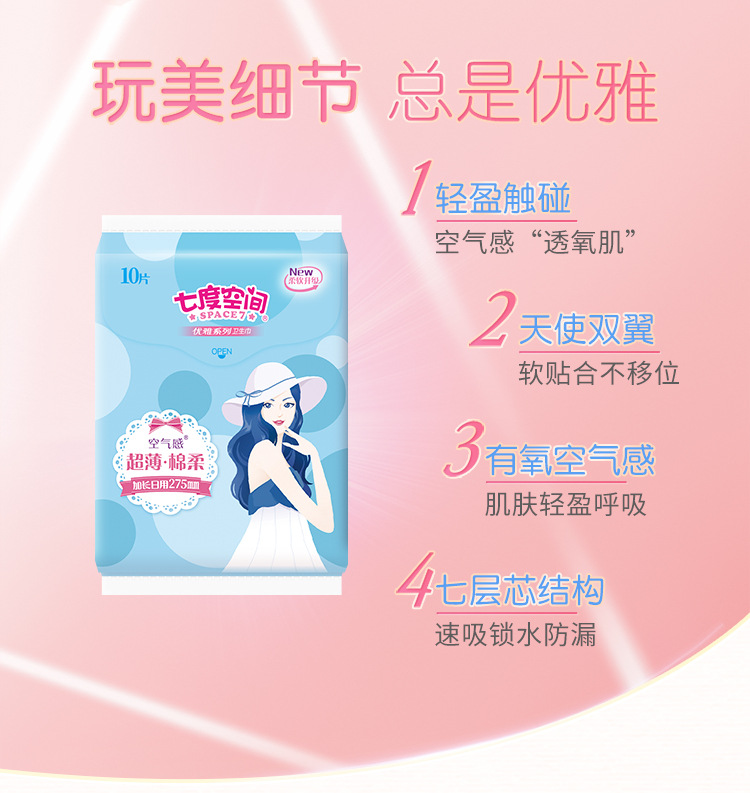 七度空间优雅丝柔夜用10片卫生巾(9301431)