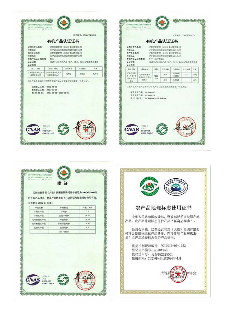 2005年,原国家质检总局批准“大连海参”为全国水产品行业第一个地理标志保护产品。