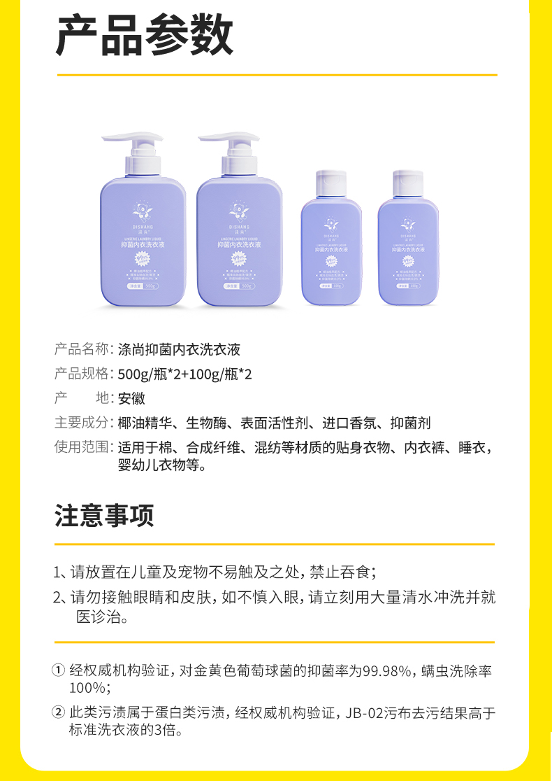 按头安利的内衣洗衣液【涤尚抑菌内衣洗衣液】 家居& 出差组合 500g/瓶*2+100g/瓶*2