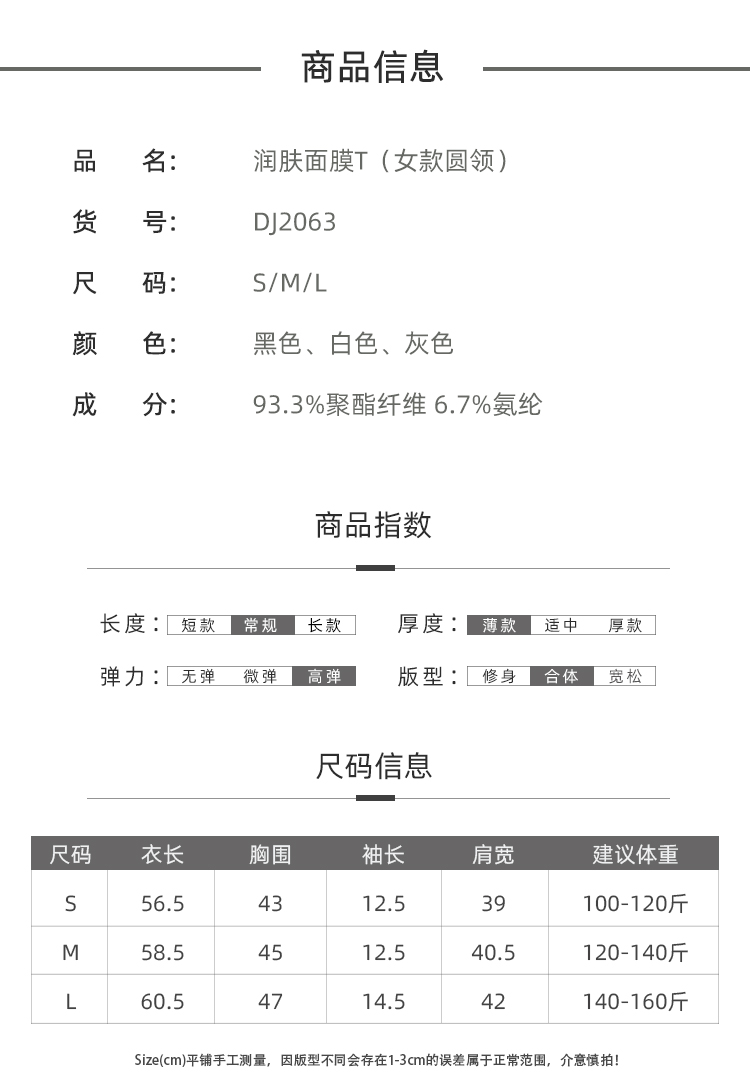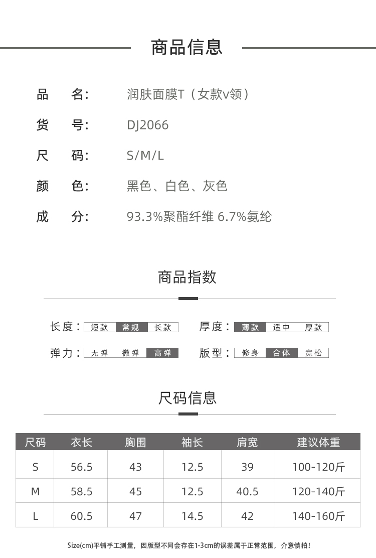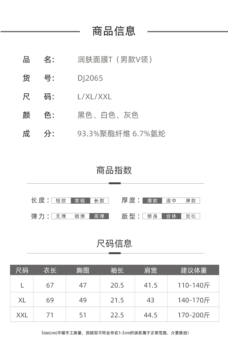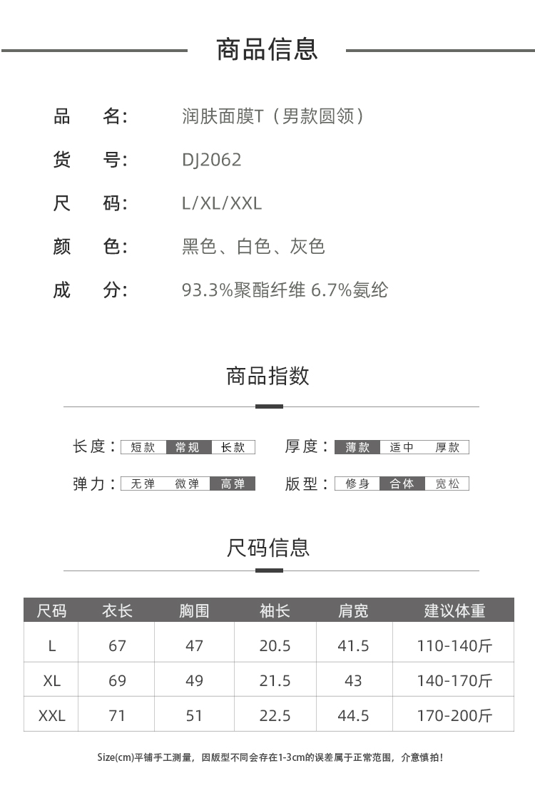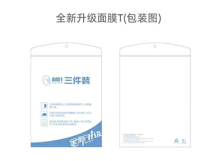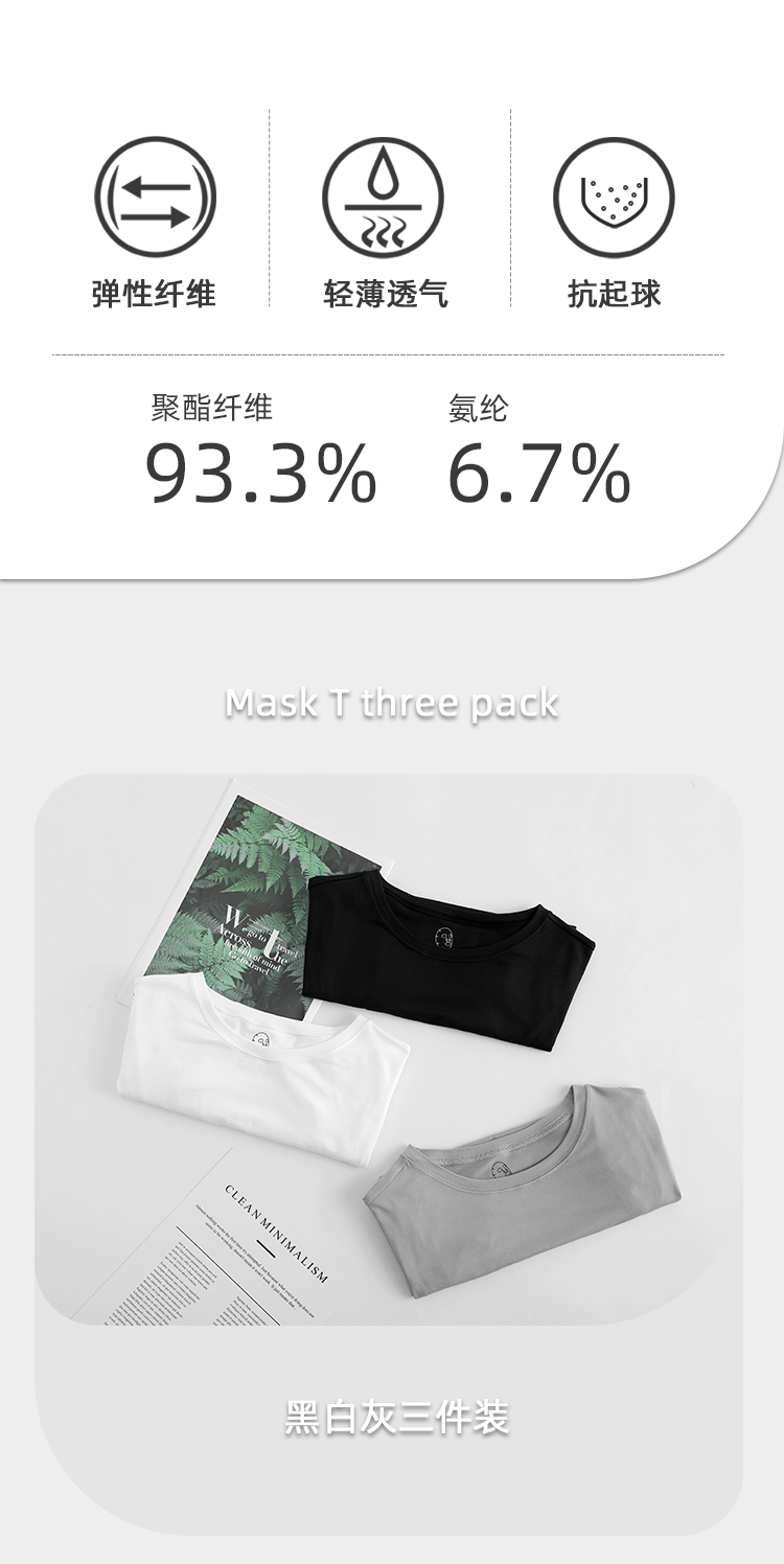 【天使法则】3件装男女丝滑透气面膜T恤 基础打底T恤