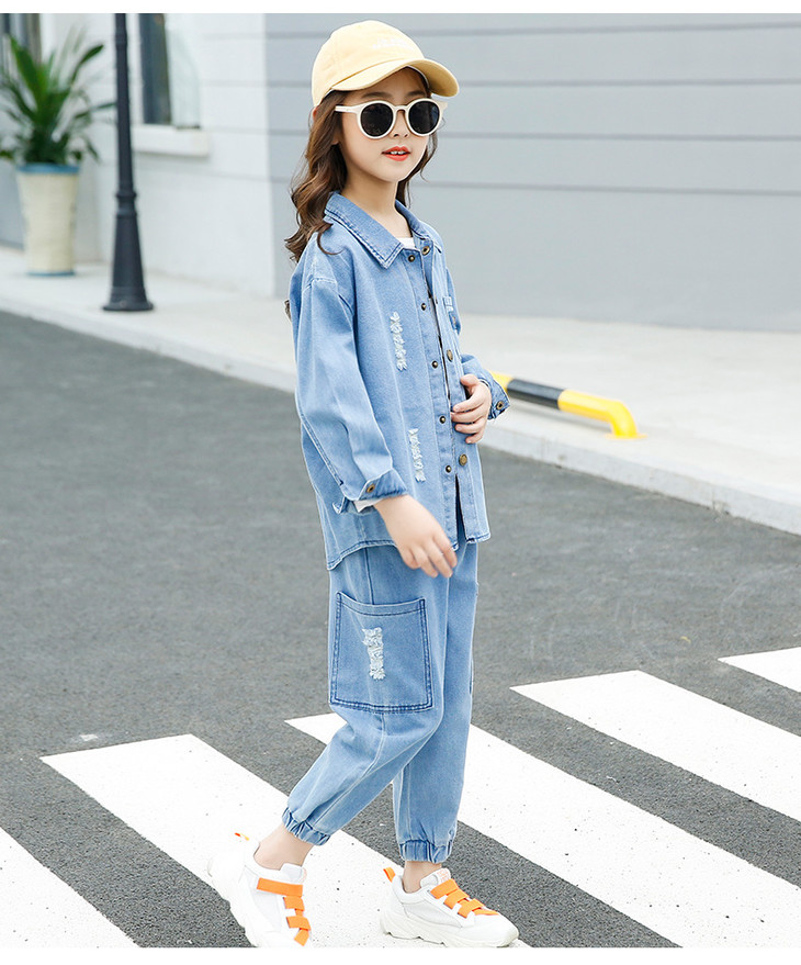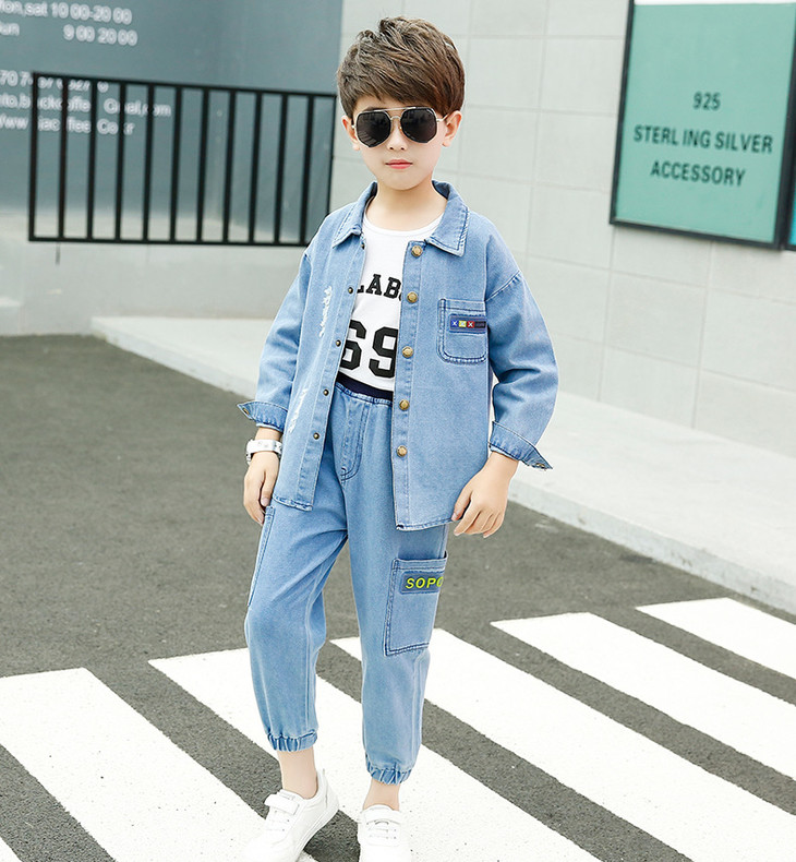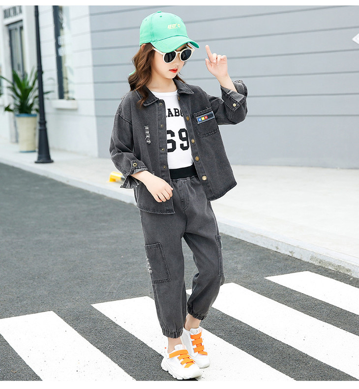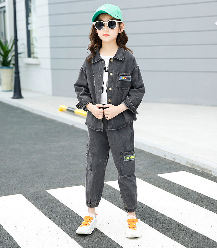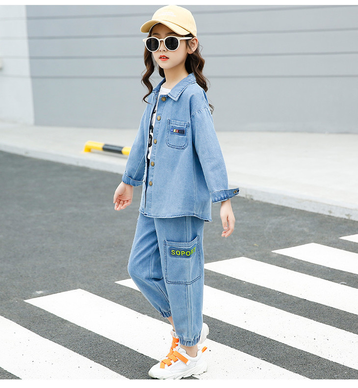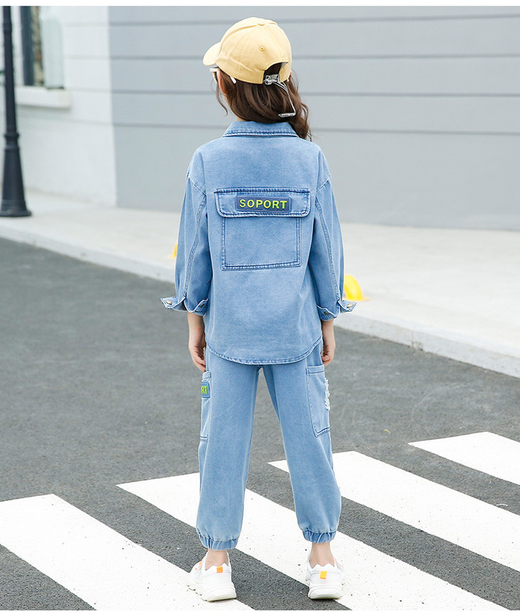 【童装】男女童装时髦套装洋气运动牛仔两件套