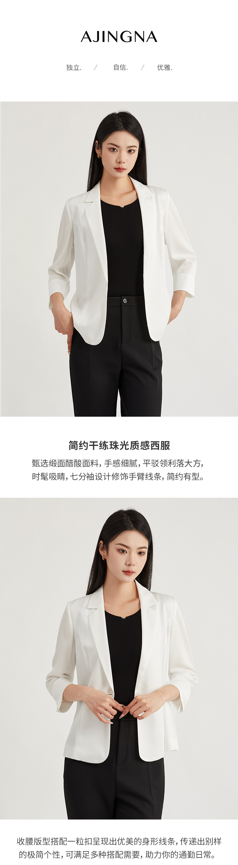【商场同款】阿菁娜缎面醋酸珠光质感西服A29X108018