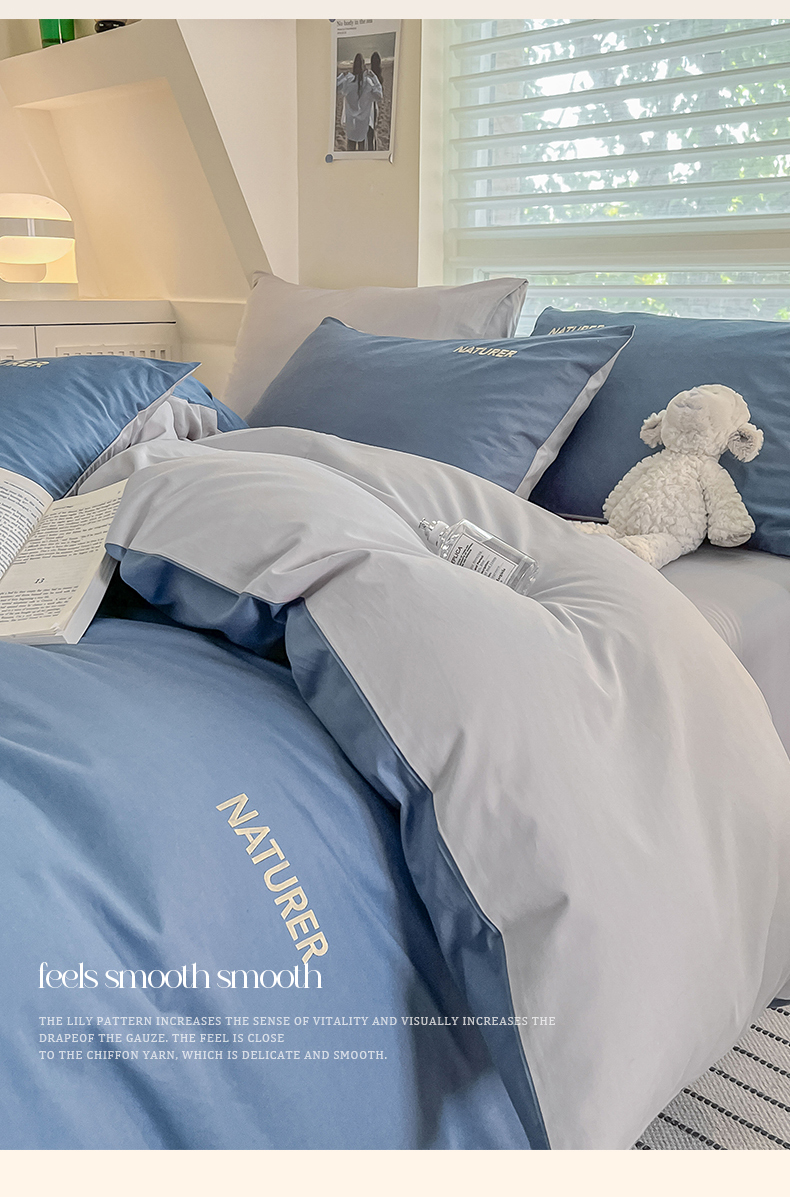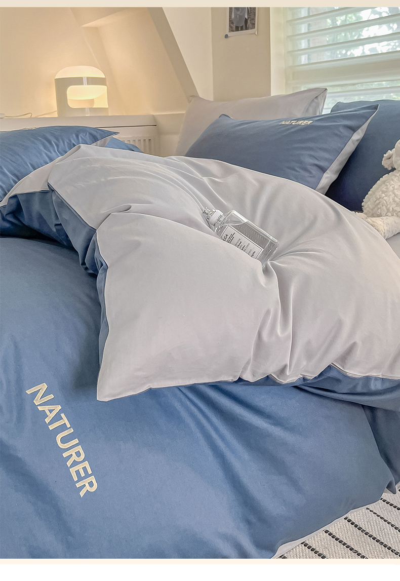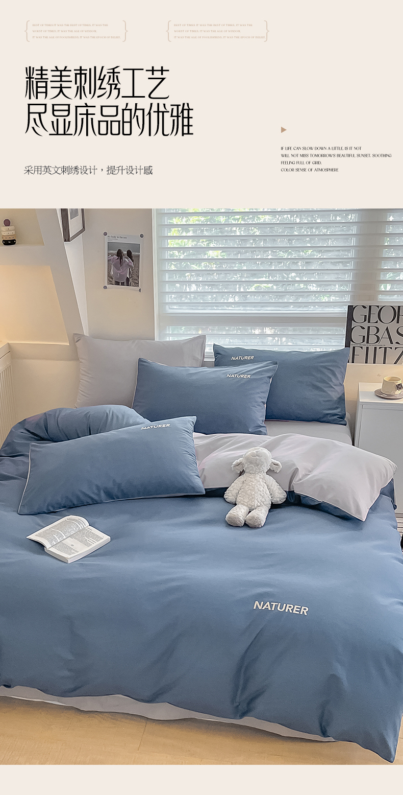 【品牌直发】加倍生活 A类全棉刺绣双拼四件套 全棉面料 8色可选yb1127003