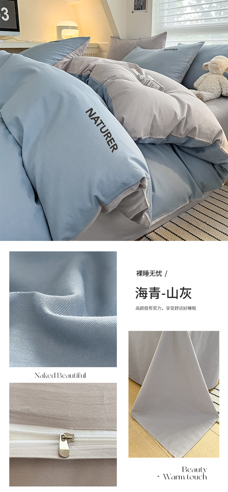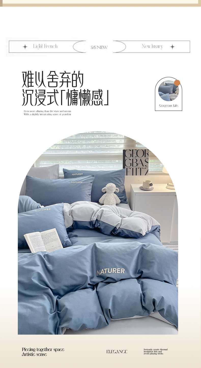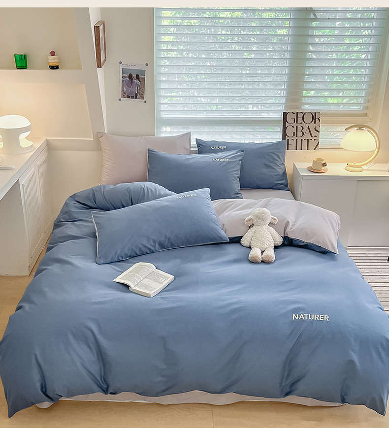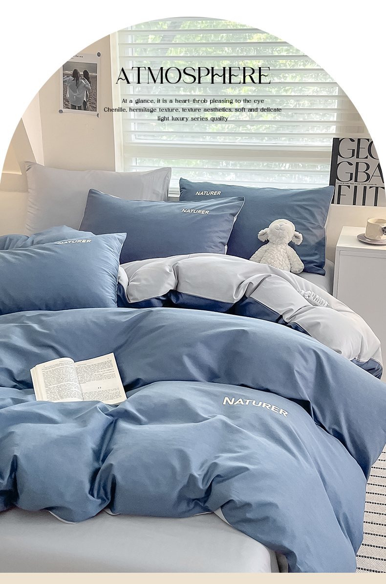 【品牌直发】加倍生活 A类全棉刺绣双拼四件套 全棉面料 8色可选yb1127003