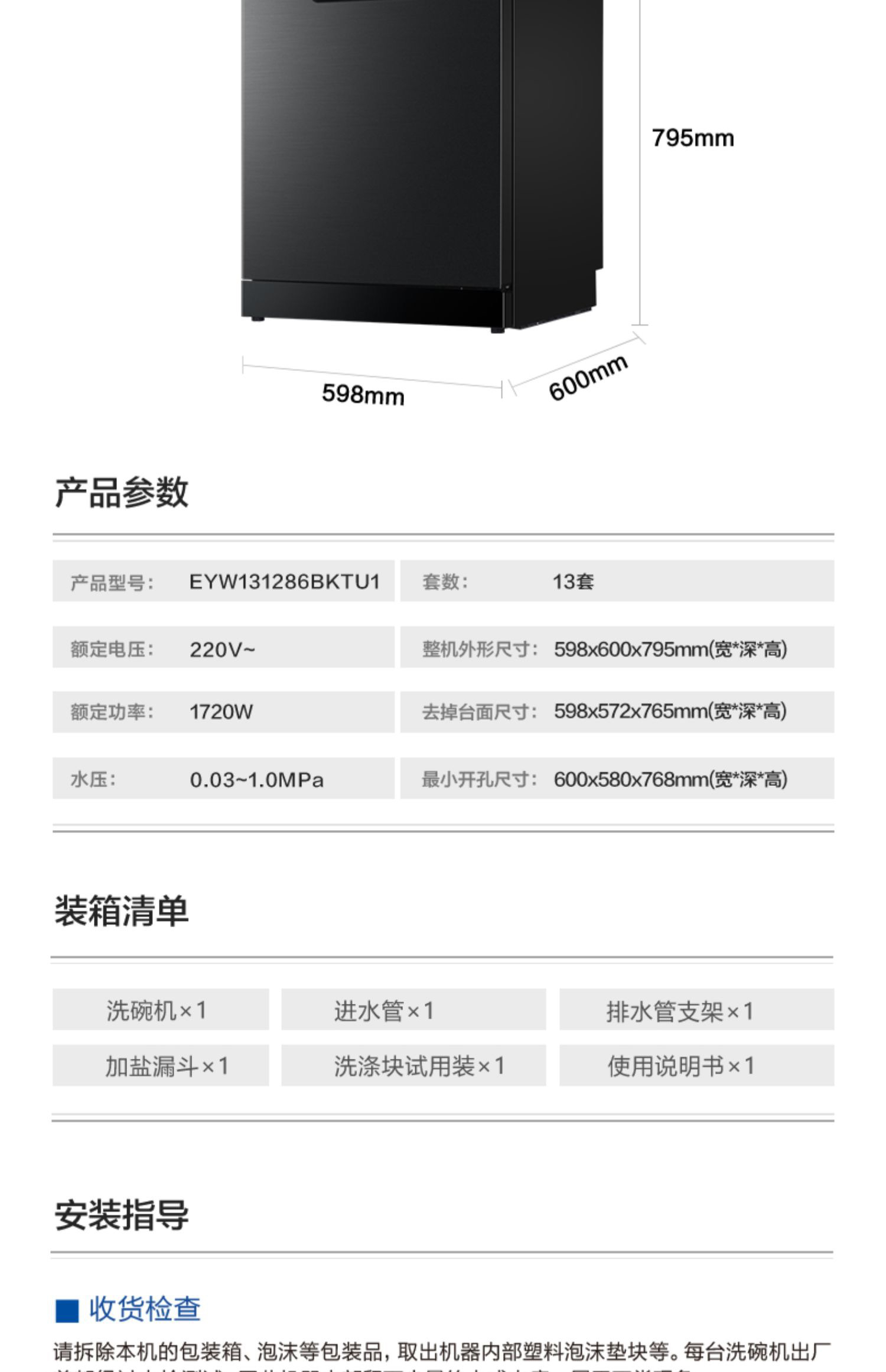 海尔(Haier)洗碗机 EYW131286BKTU1晶彩