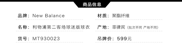 小李子:专柜正品NewBalance利物浦第二客场球迷版运动短袖球衣