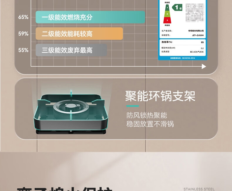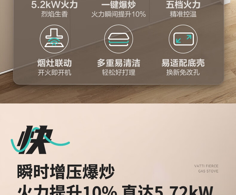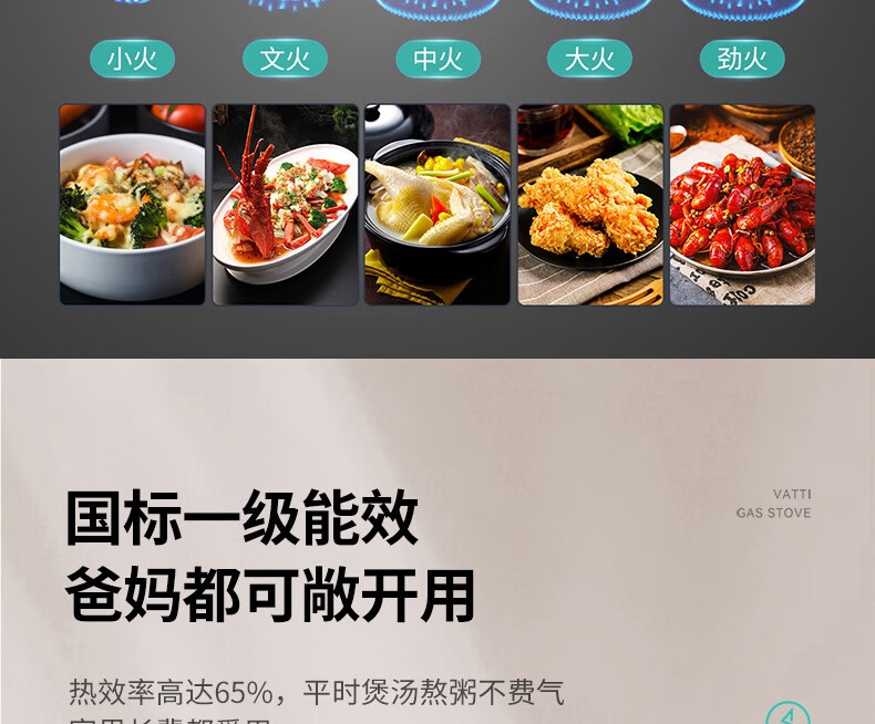 华帝(VATTI)灶具 5.2KW火力 烟灶智能联动开火即开机 五档精控火力 火候收放自如JZT- ZJ520H