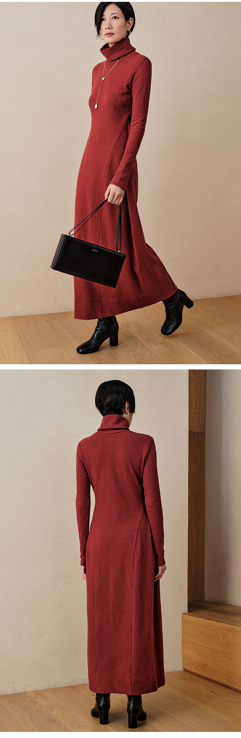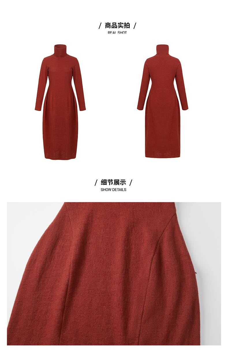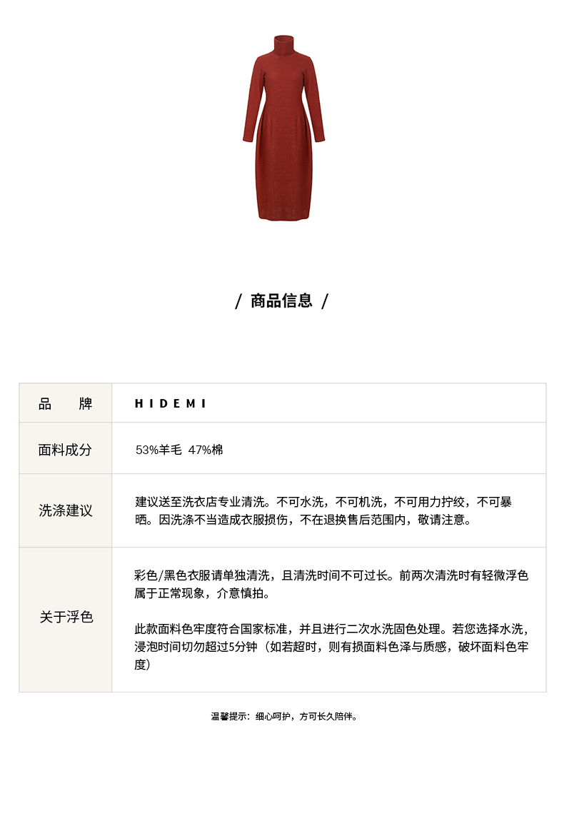 HIDEMI 枫叶棕红色羊毛显瘦茧型设计感轻礼服连衣裙