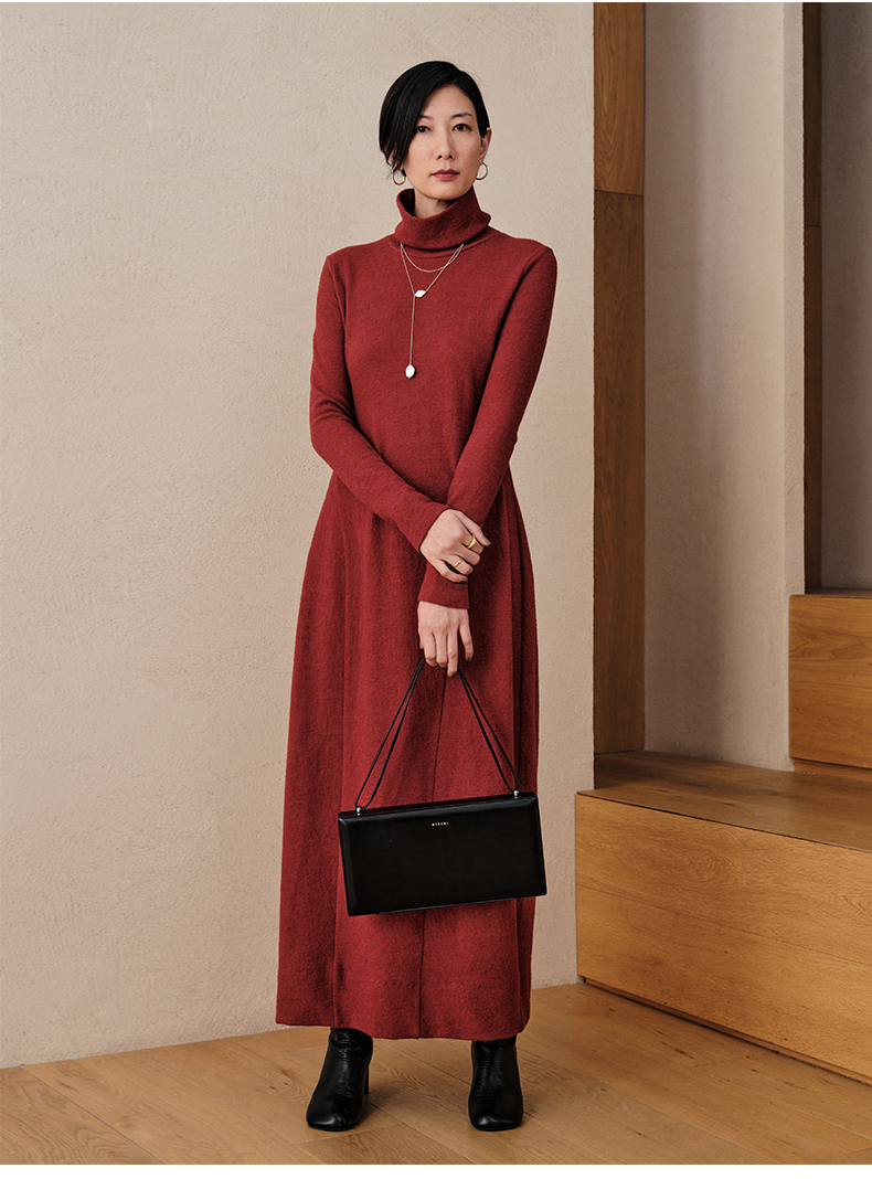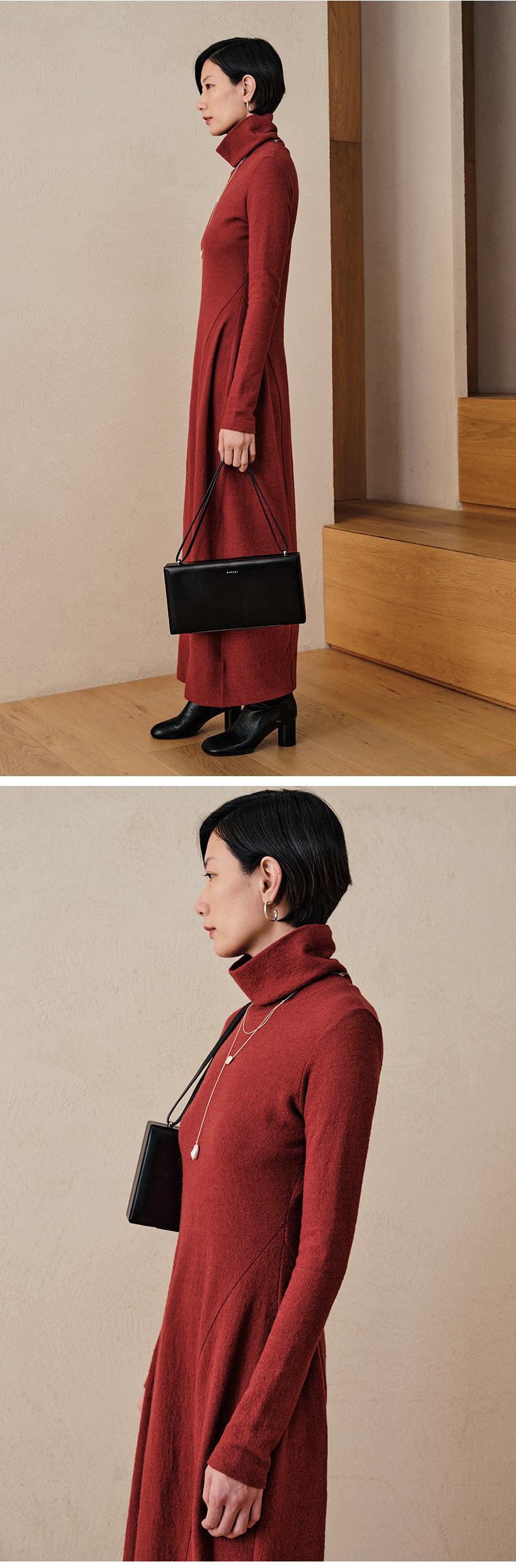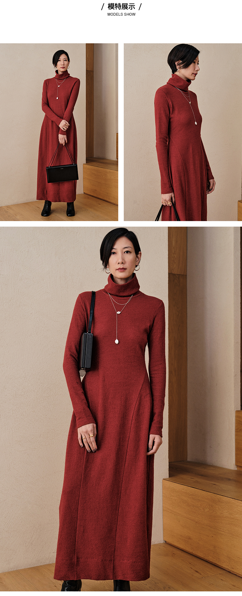 HIDEMI 枫叶棕红色羊毛显瘦茧型设计感轻礼服连衣裙