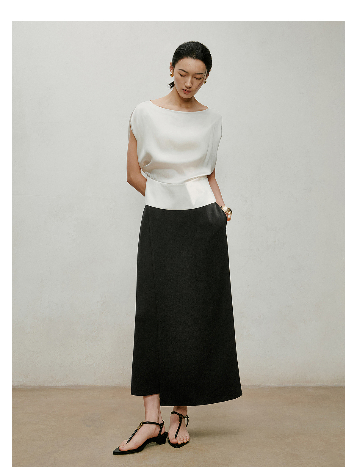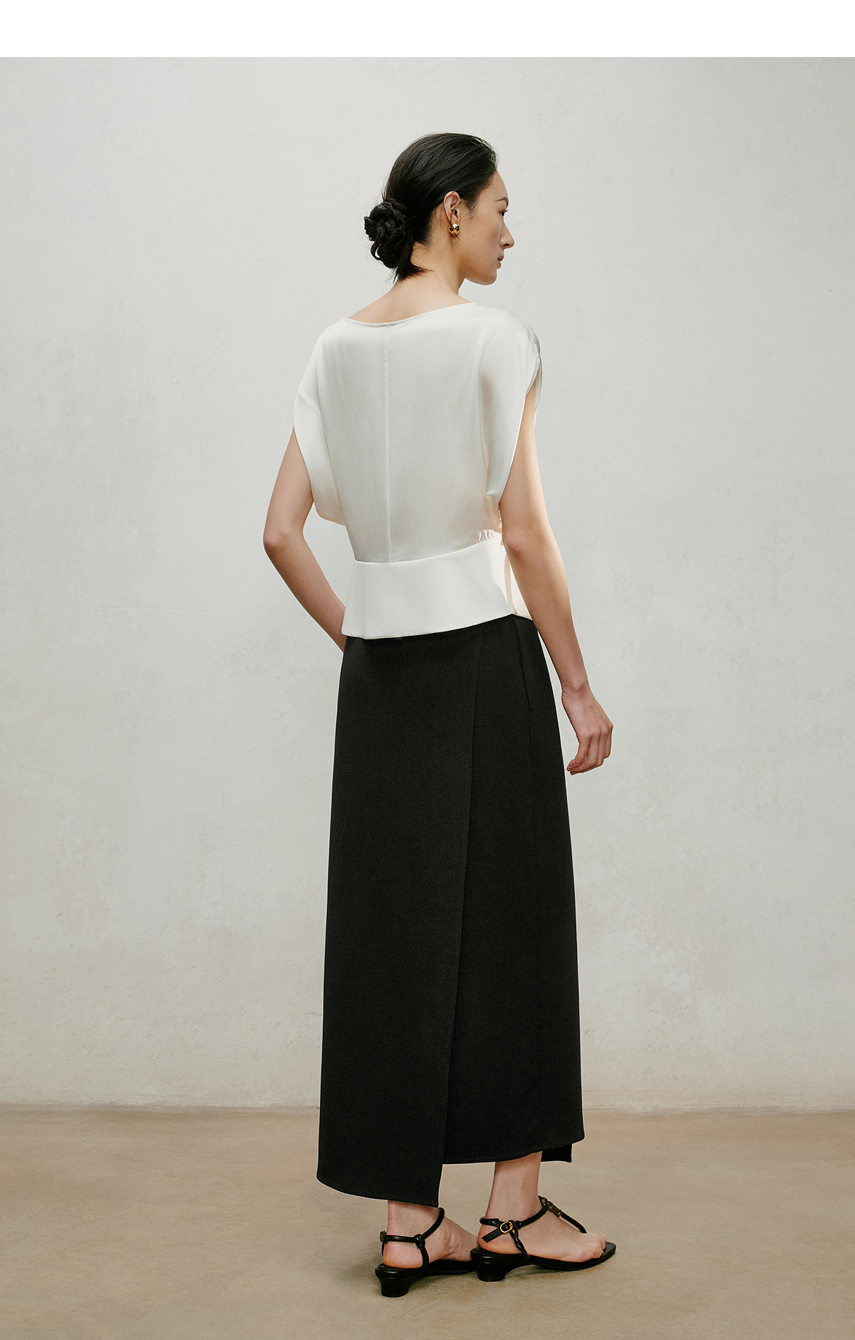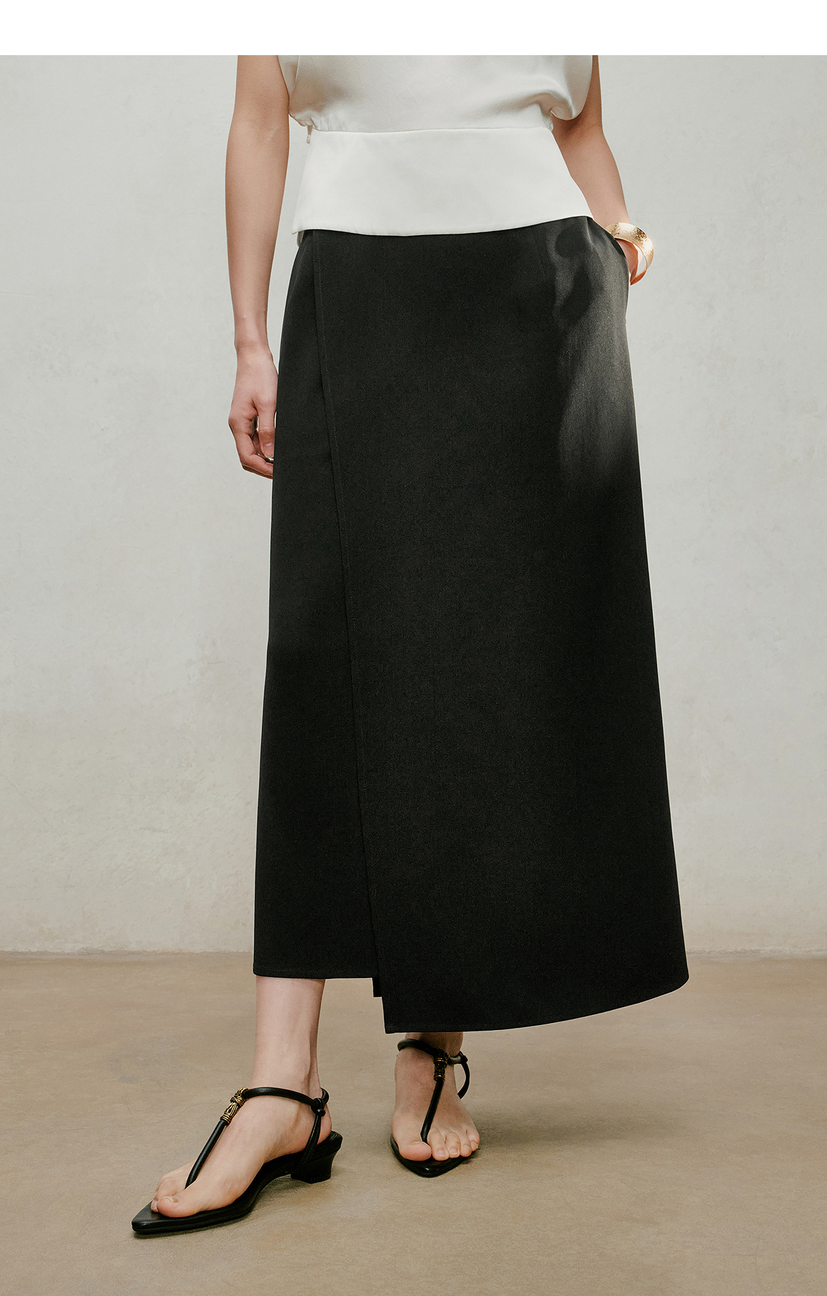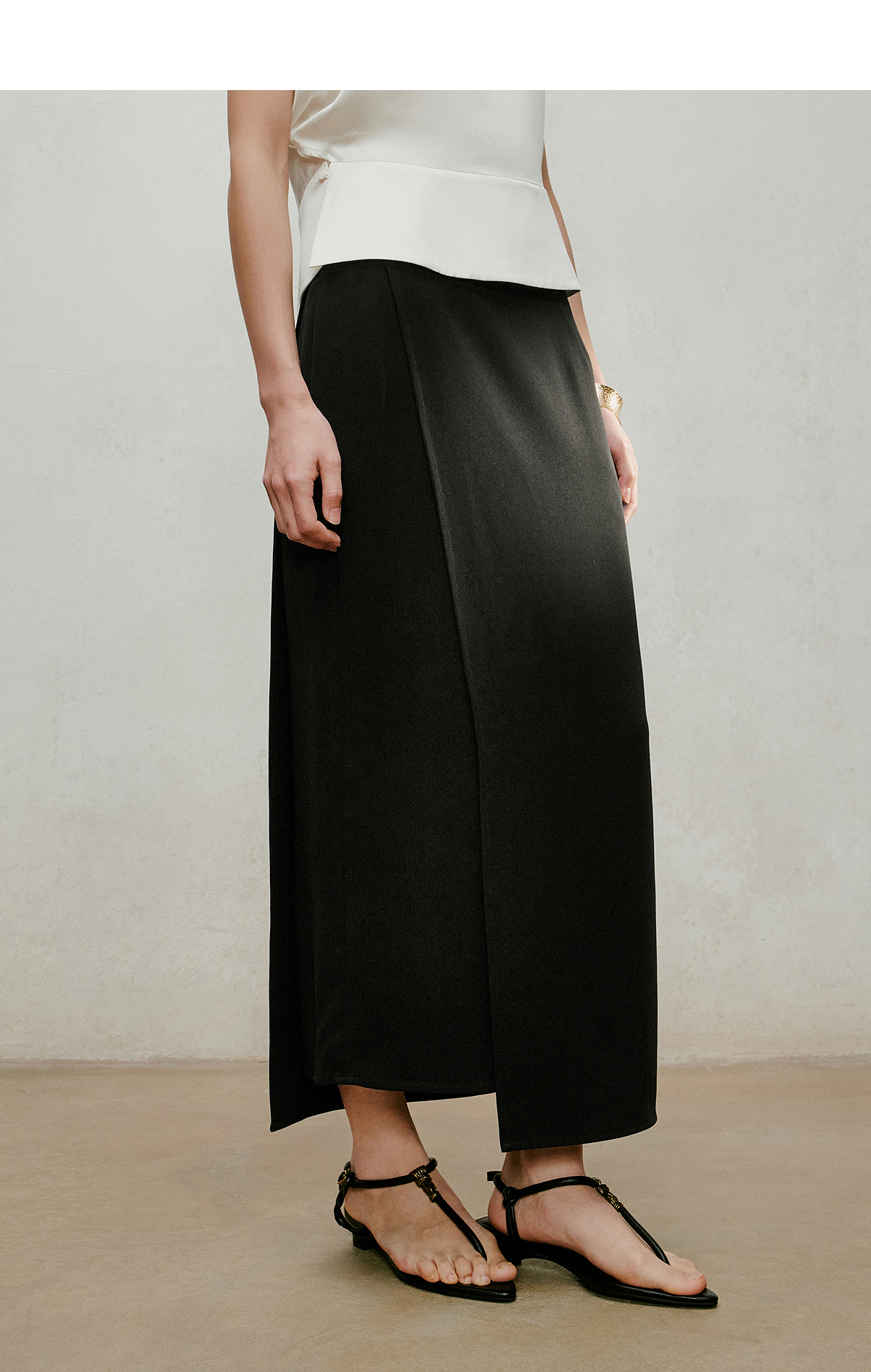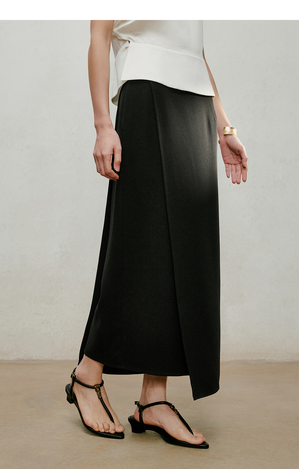 【林栖设计小店】风软流光|黑色优雅醋纤2026夏新款不规则半身裙1962058