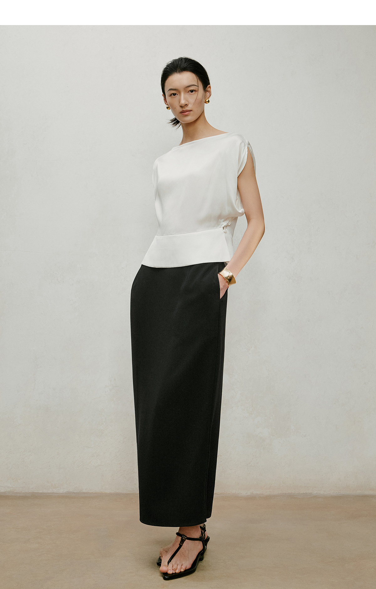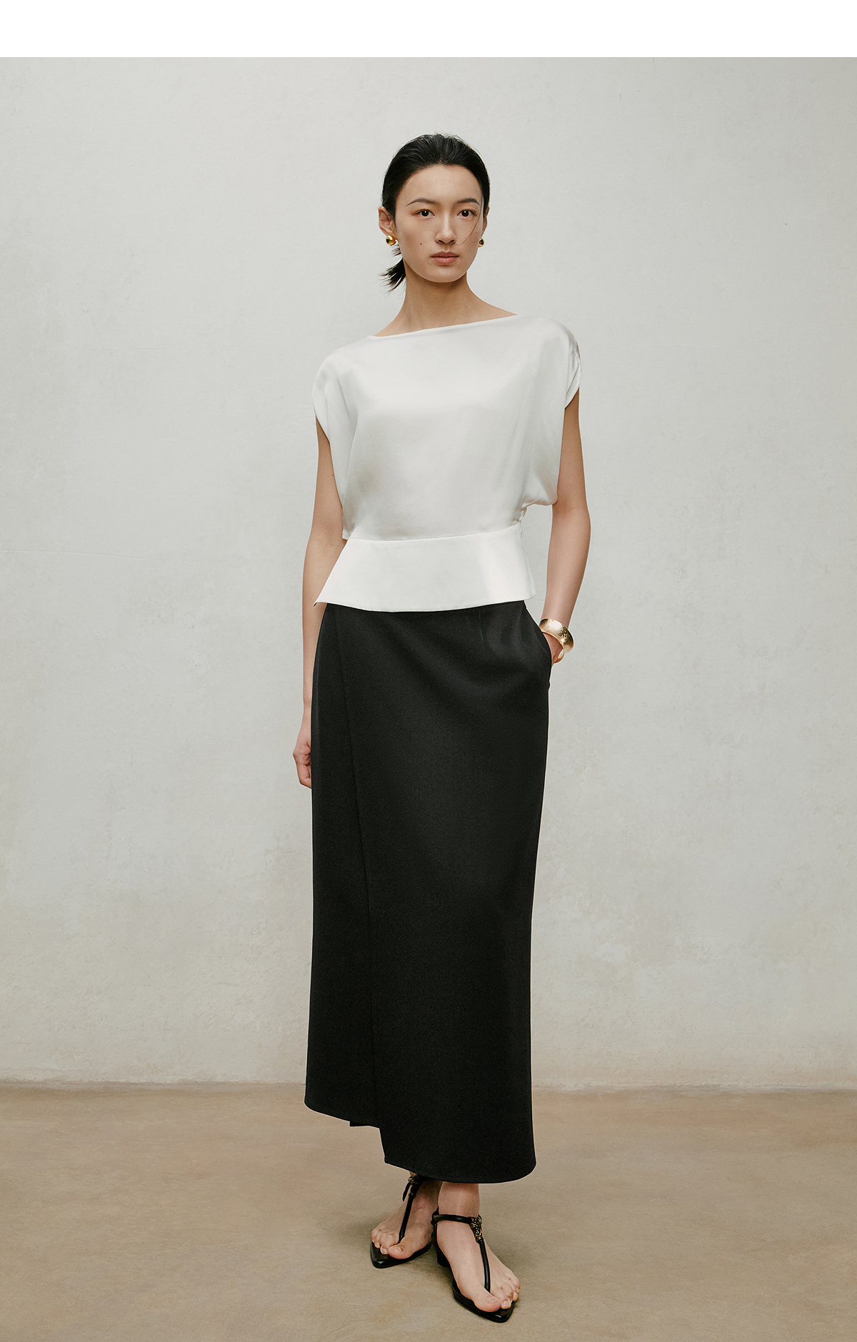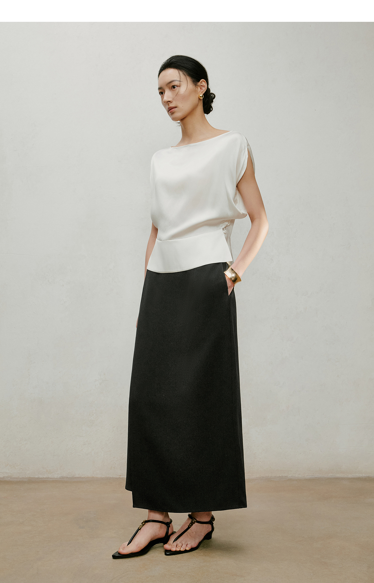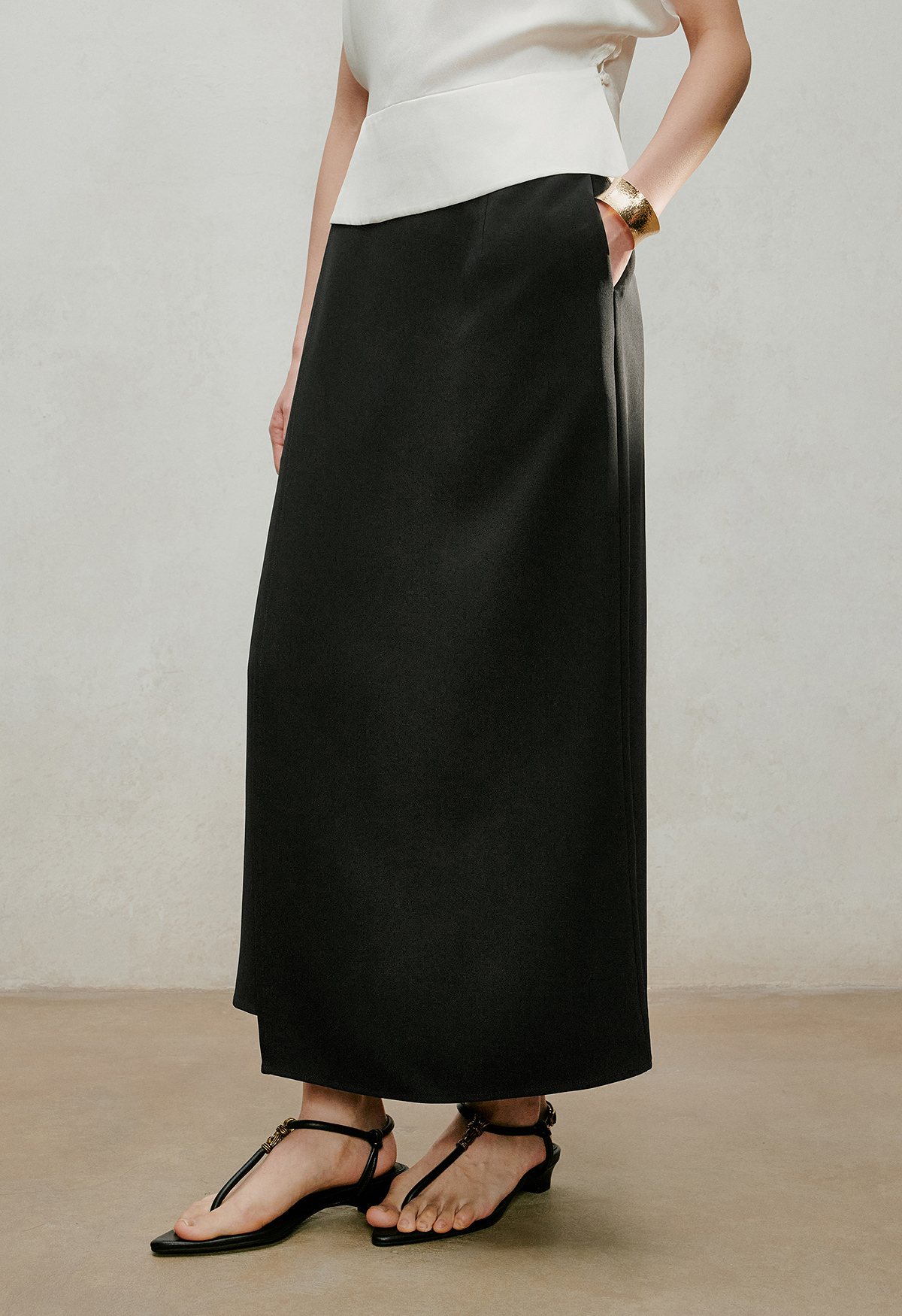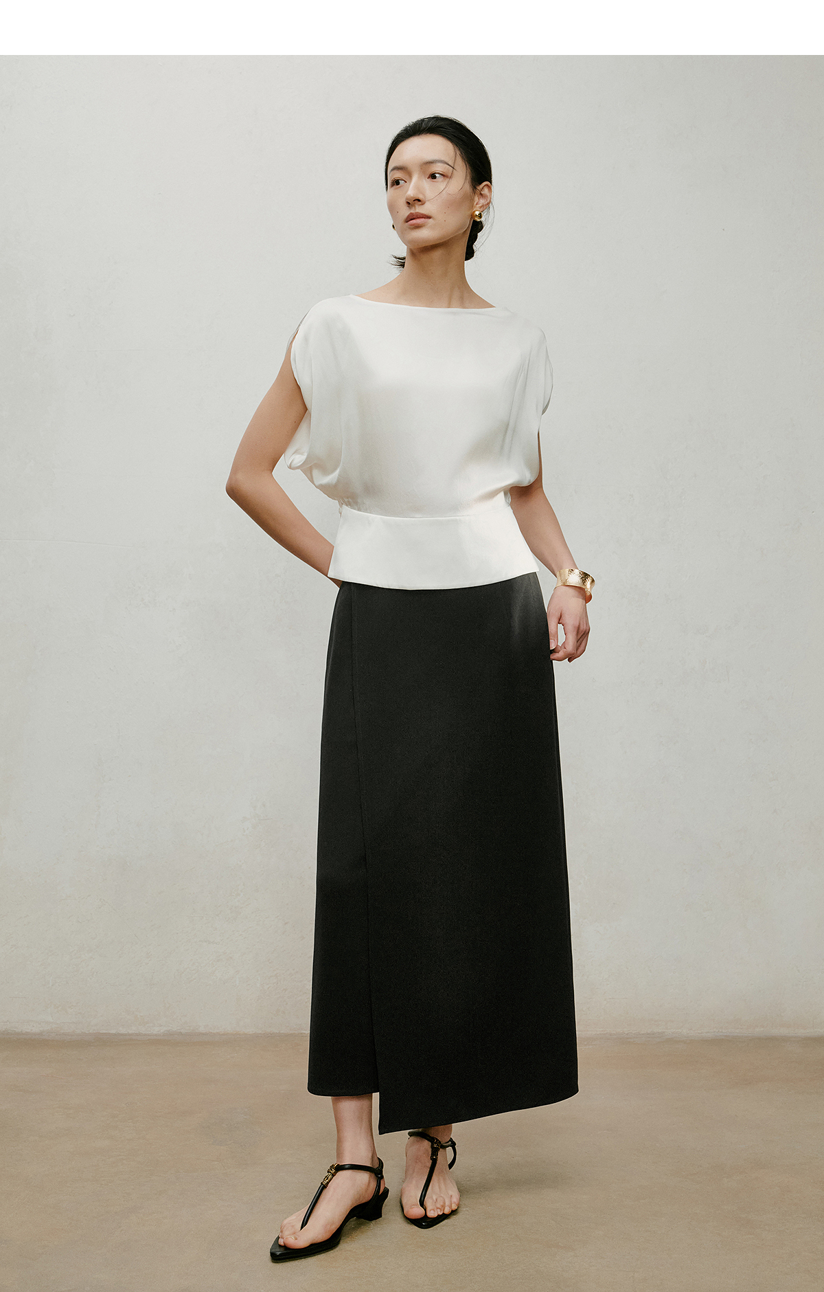 【林栖设计小店】风软流光|黑色优雅醋纤2026夏新款不规则半身裙1962058