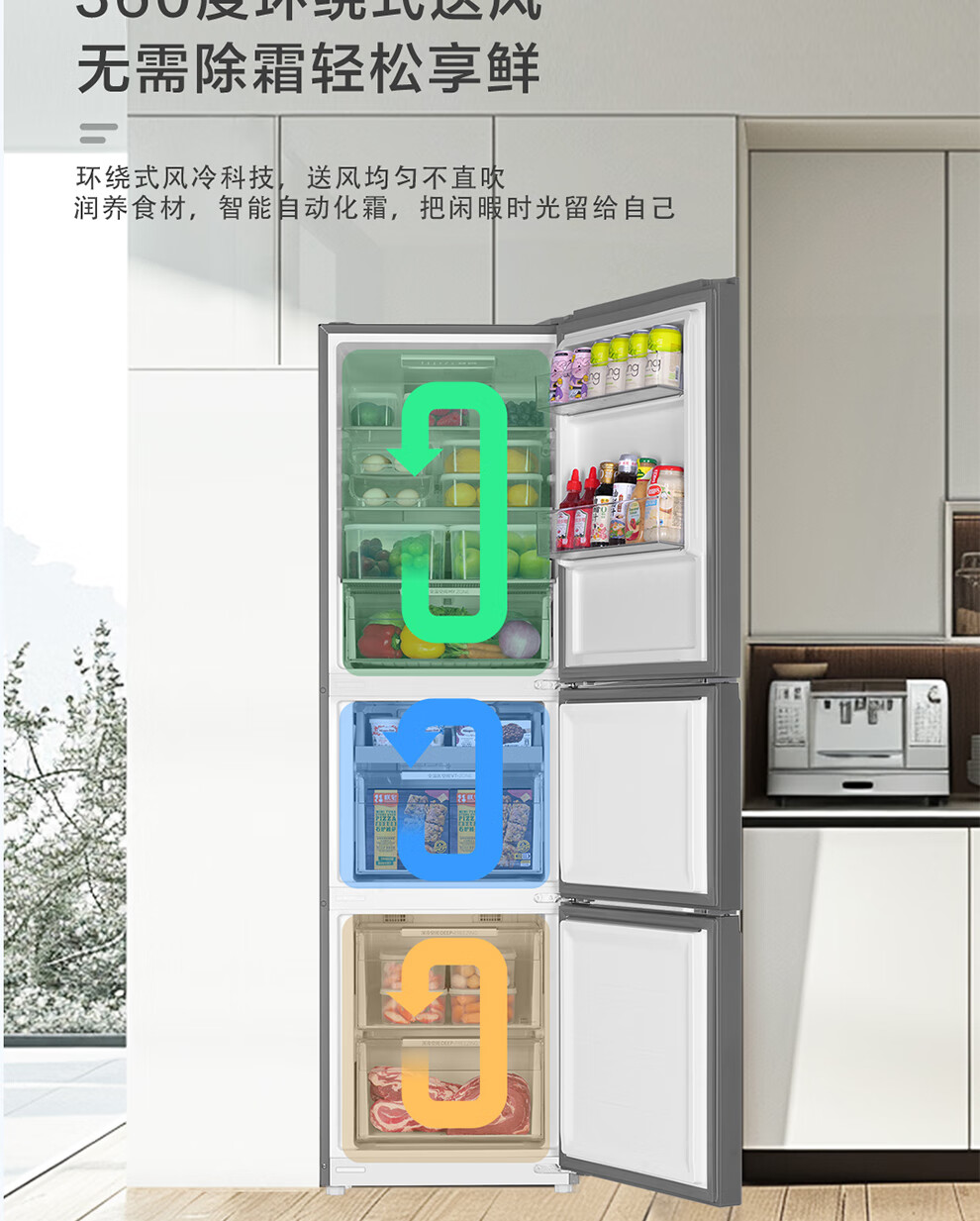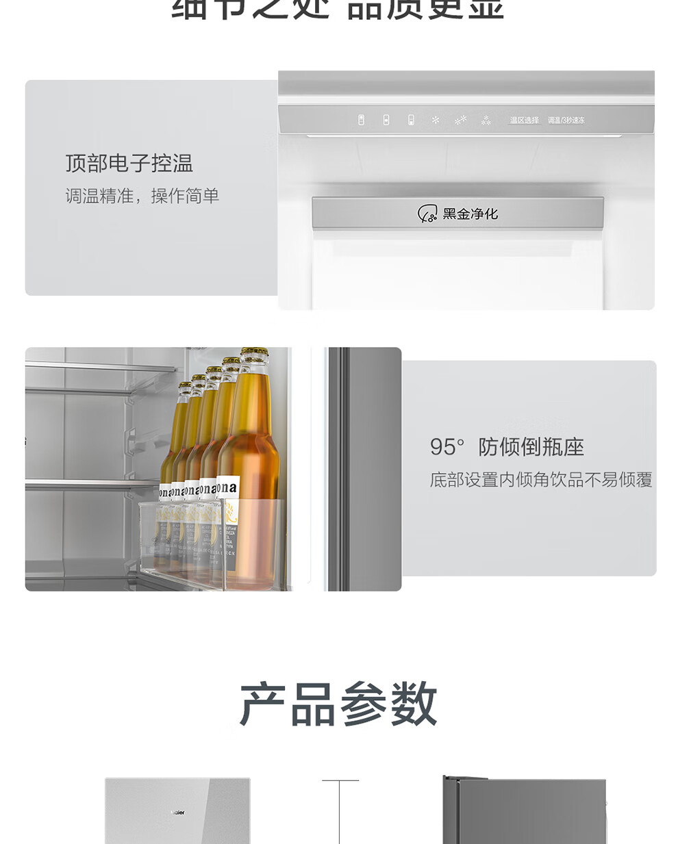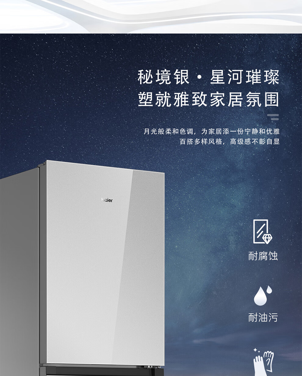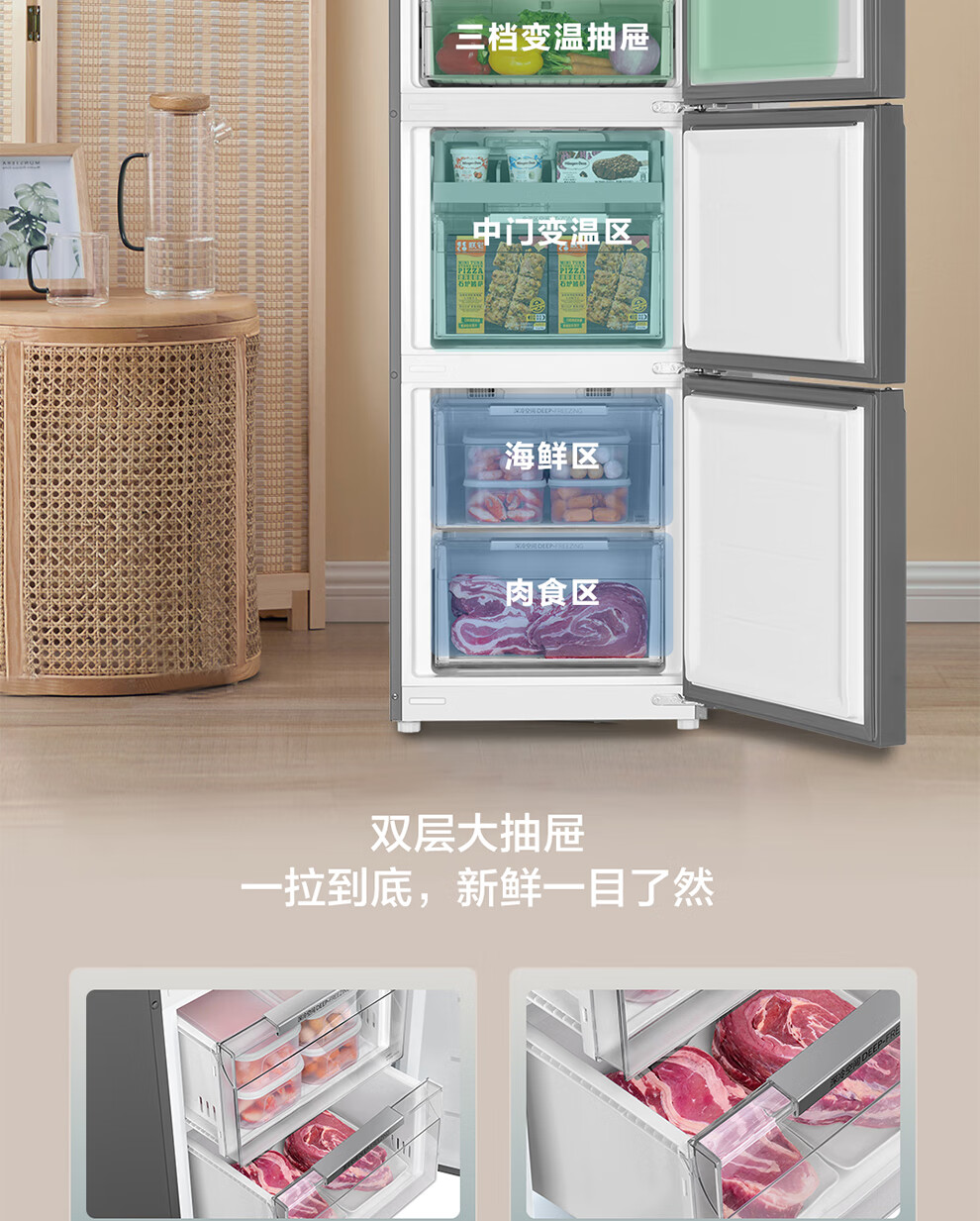海尔冰箱三开门多门风冷无霜283升一级双变频节能彩晶玻璃面板小户型优选高颜值电冰箱【新品】 【三门三温区+黑金净化+深冷速冻】BCD-283WLHC357SW