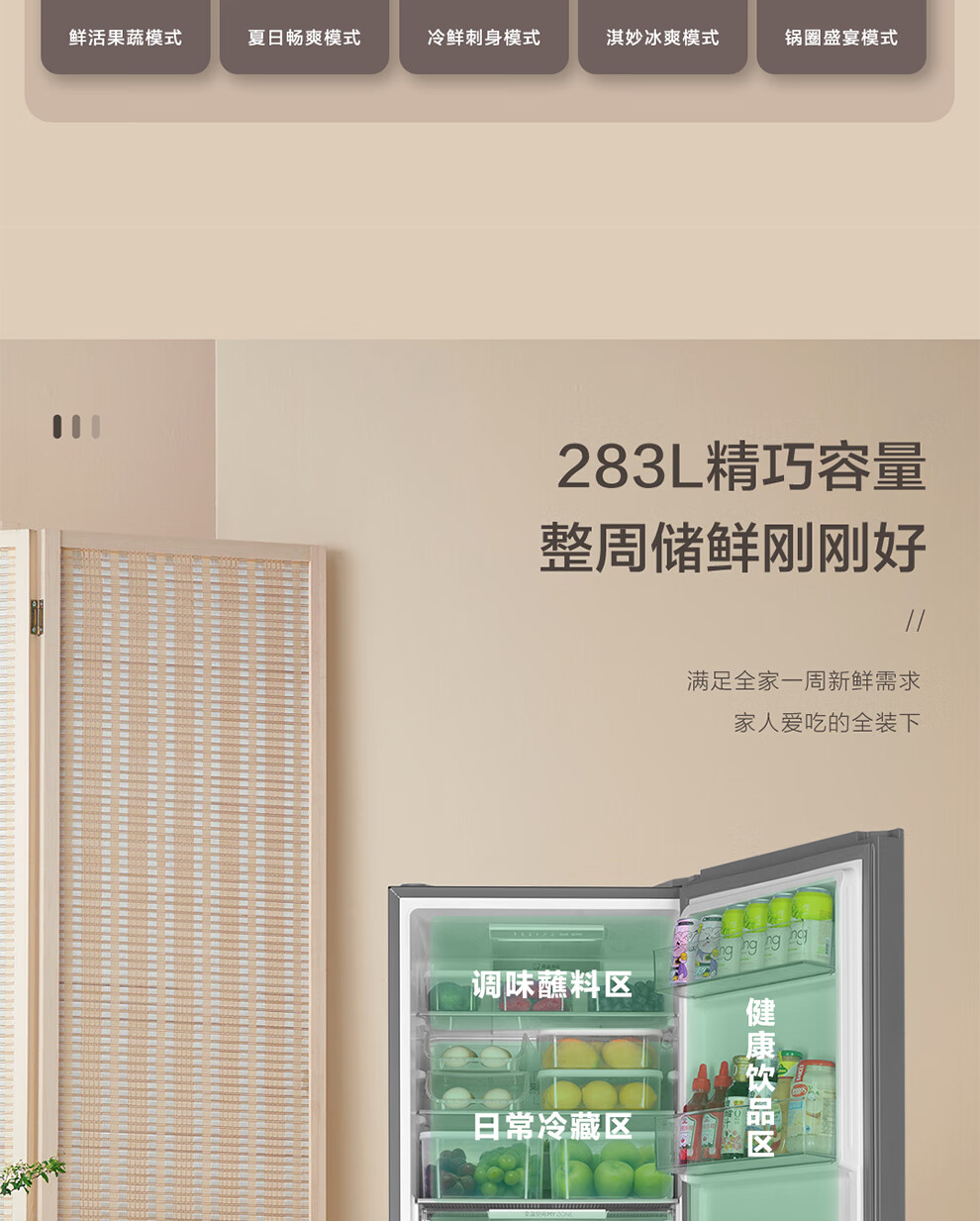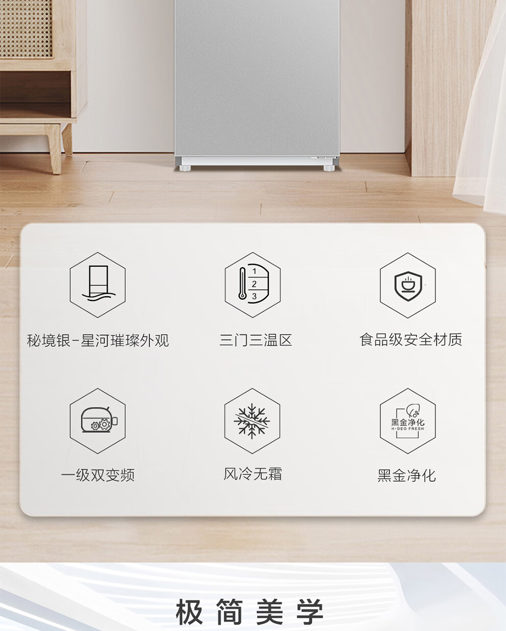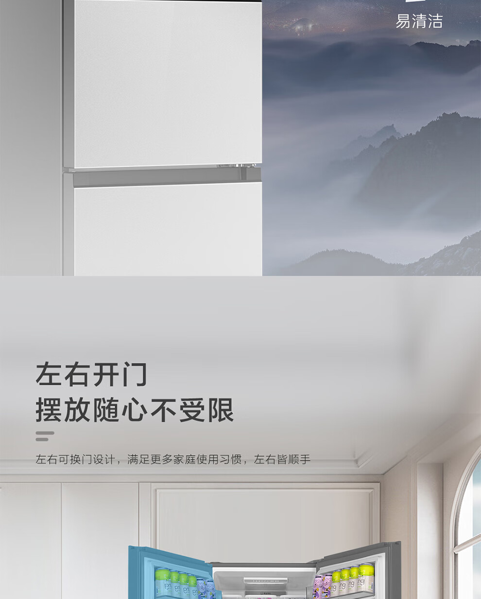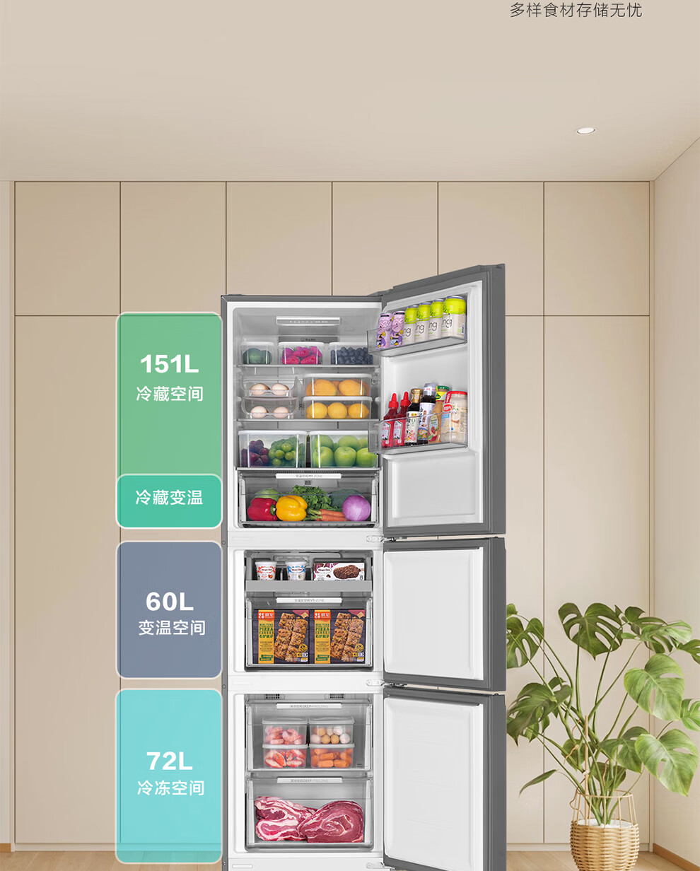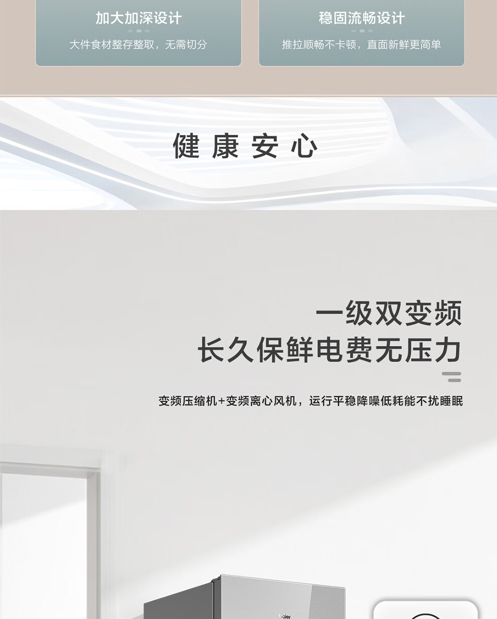 海尔冰箱三开门多门风冷无霜283升一级双变频节能彩晶玻璃面板小户型优选高颜值电冰箱【新品】 【三门三温区+黑金净化+深冷速冻】BCD-283WLHC357SW