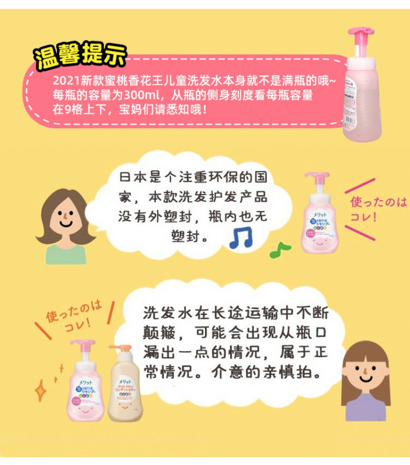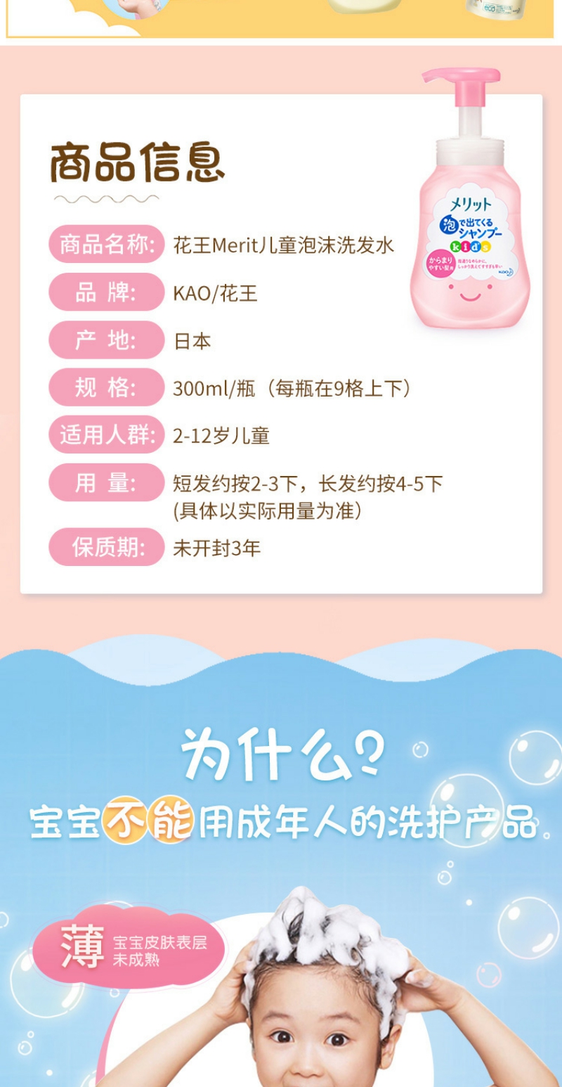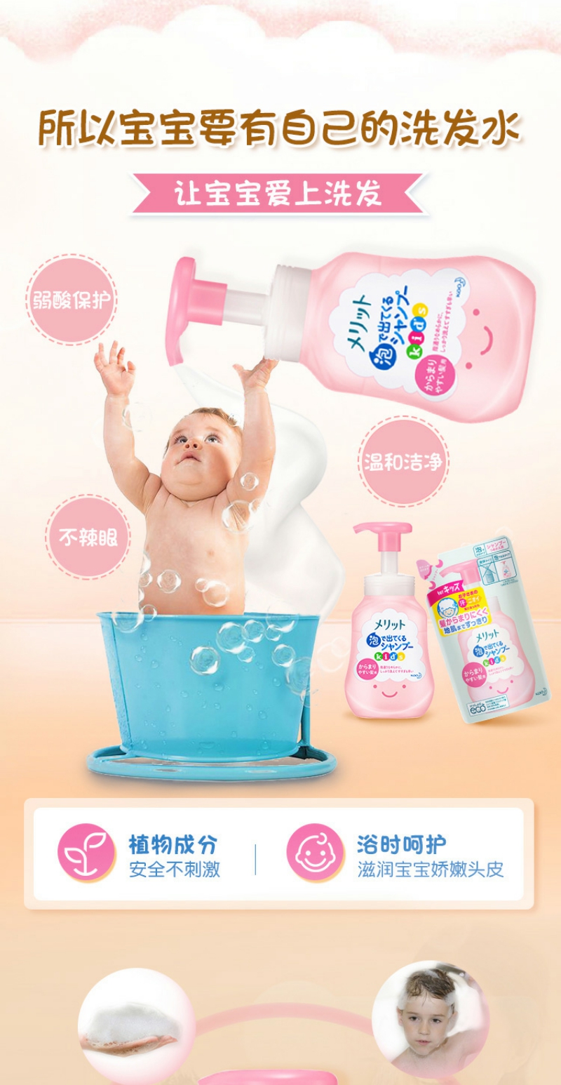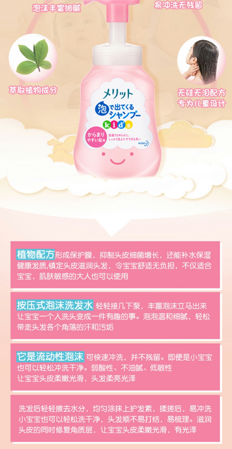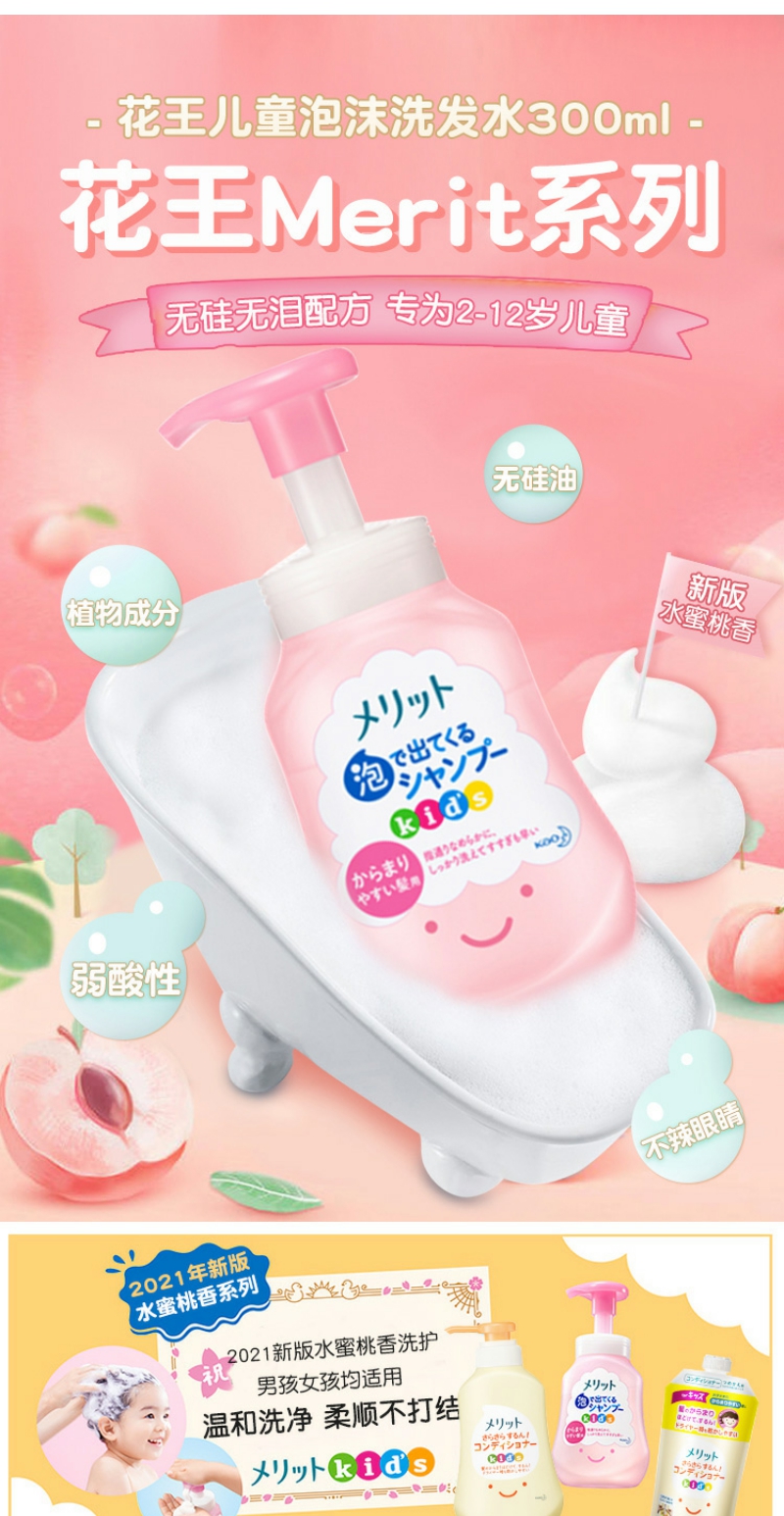 【YZ】花王儿童2-6-12岁蜜桃味泡沫洗发水弱酸无硅油300ml