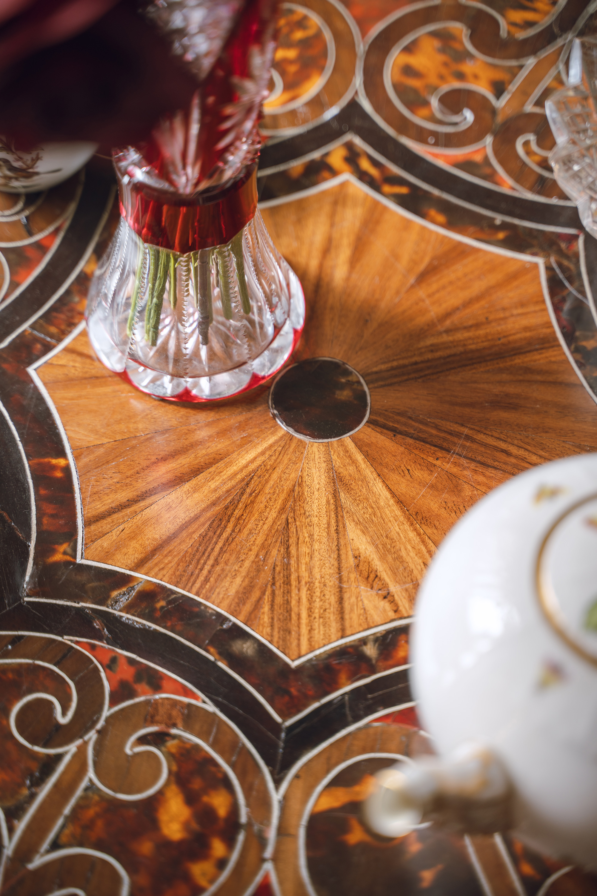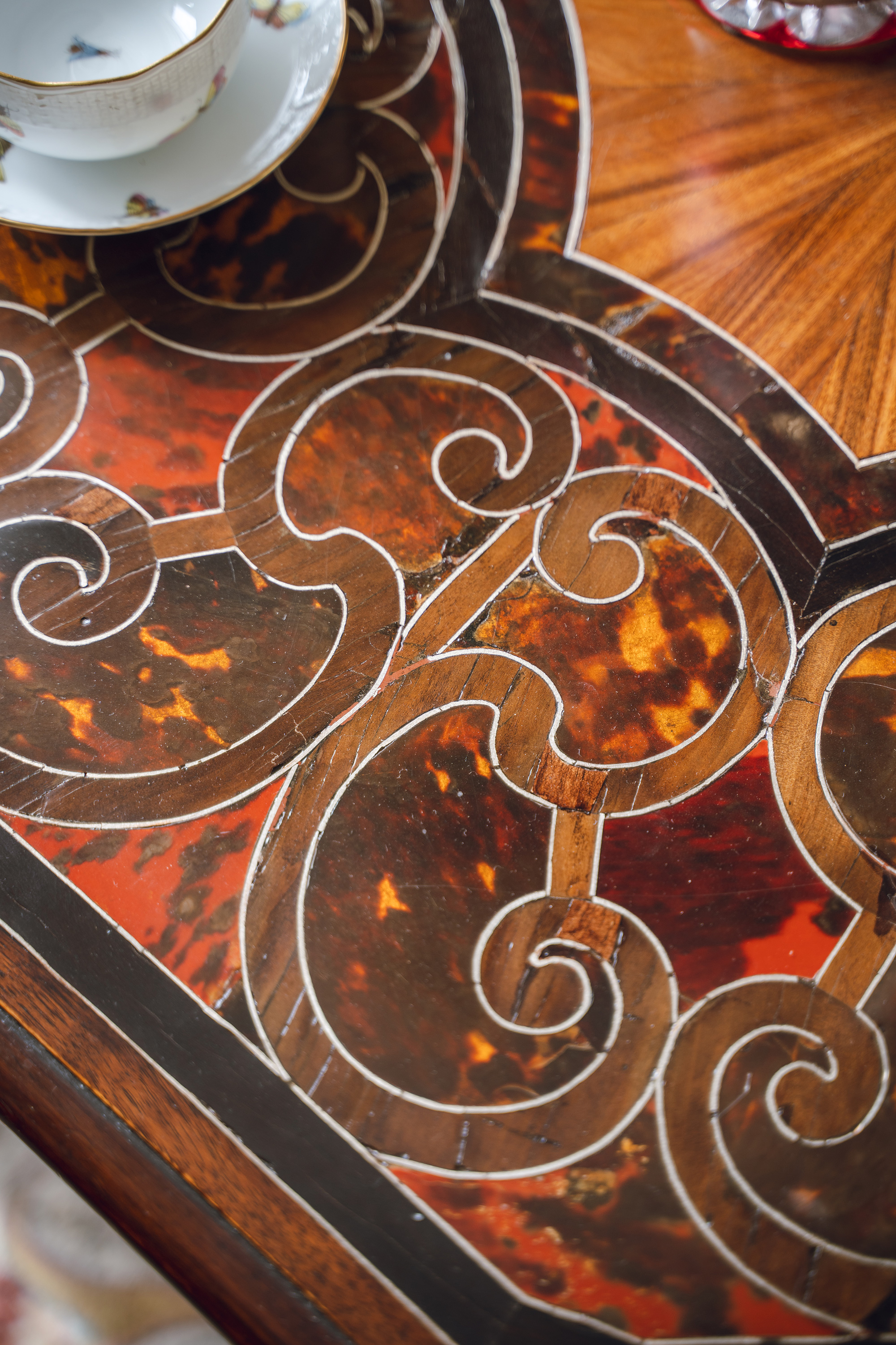 1880年代法国出品古典卷叶主题布勒镶嵌装饰胡桃木桌几
