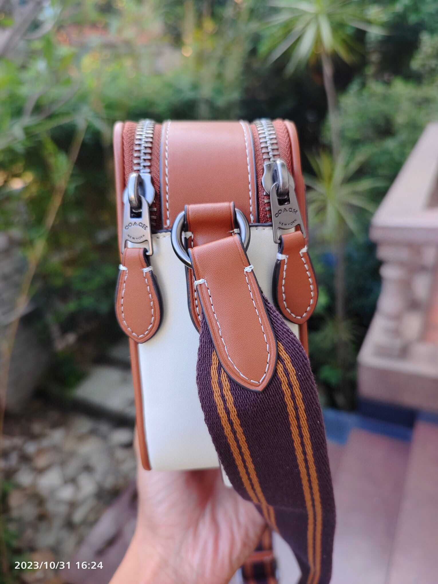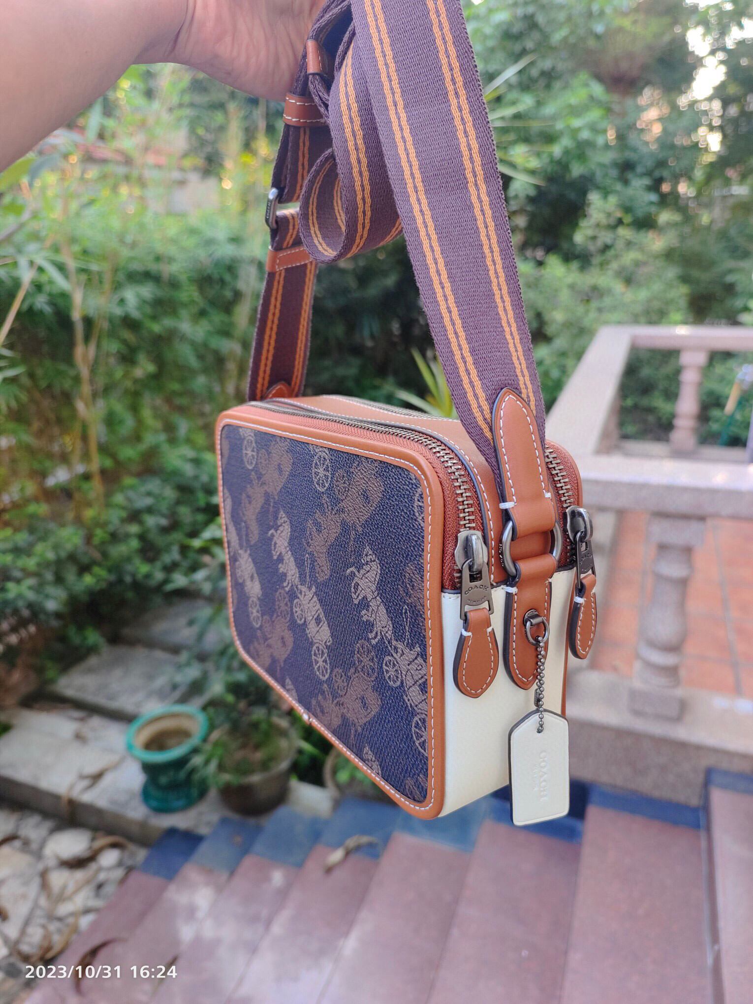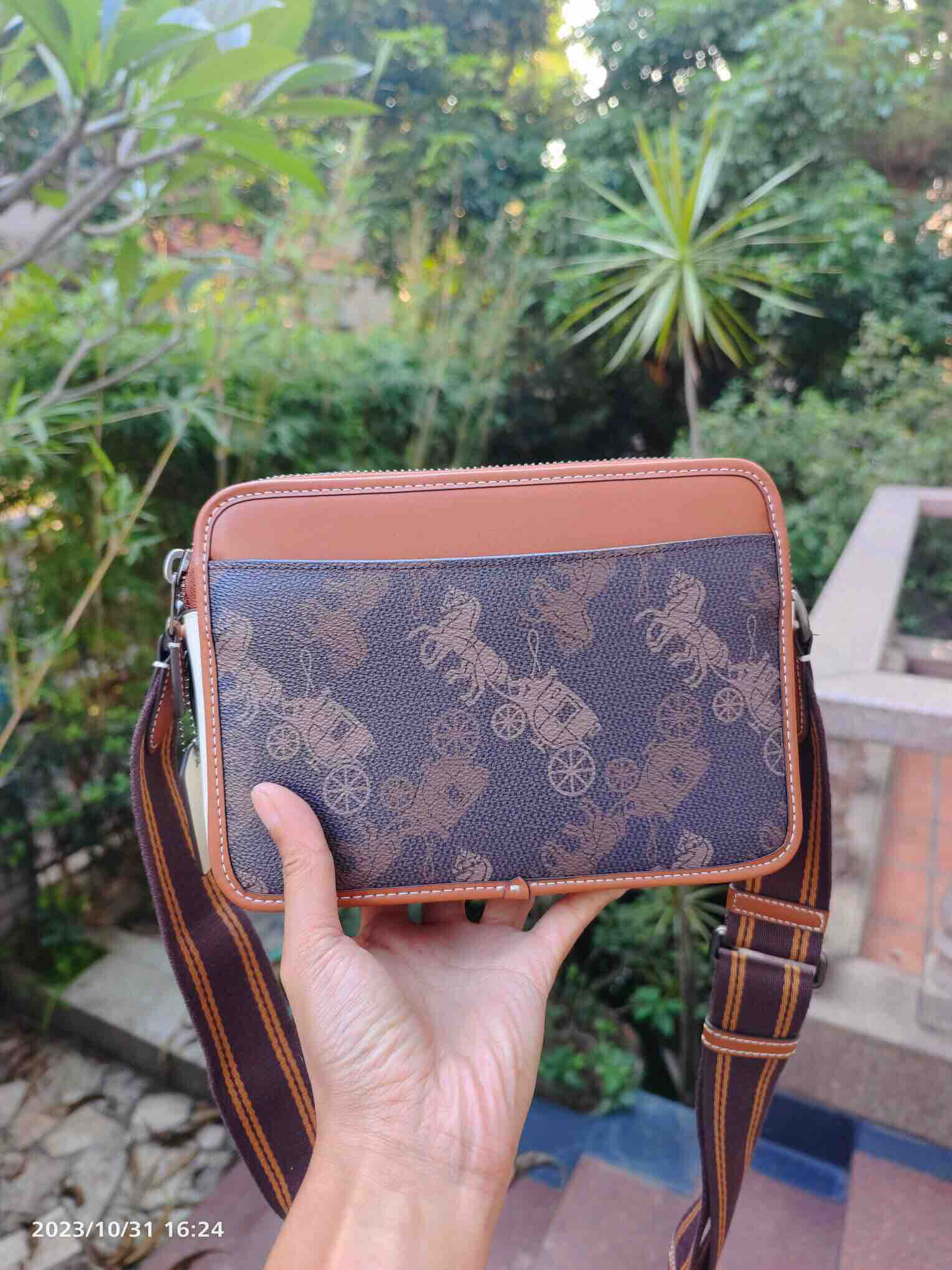 秋冬特惠💰520 蔻驰新款cm382男士新款 C家 Charter 通勤和出差提供便携舒适的体验 这款公整有型的斜挎包采用满版的大马车logo 和精致的皮革制作 带有2个特色拉链隔层 内置容量足够强大 尺寸:24*16*7cm