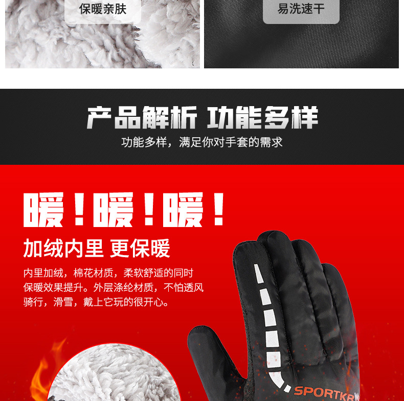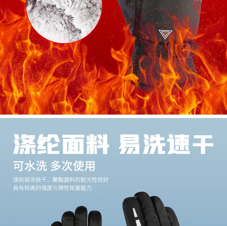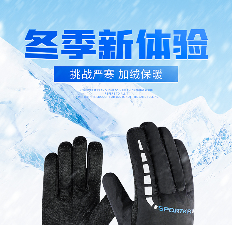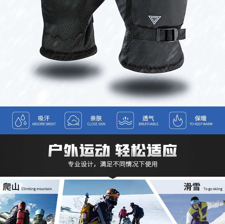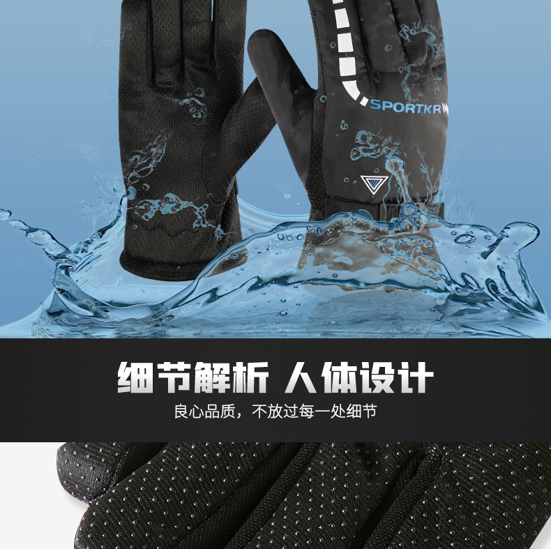 【YW】无忧购25元2双男士保暖手套户外滑雪骑行加绒加厚ST-610黑底(截单后3-5天发货)