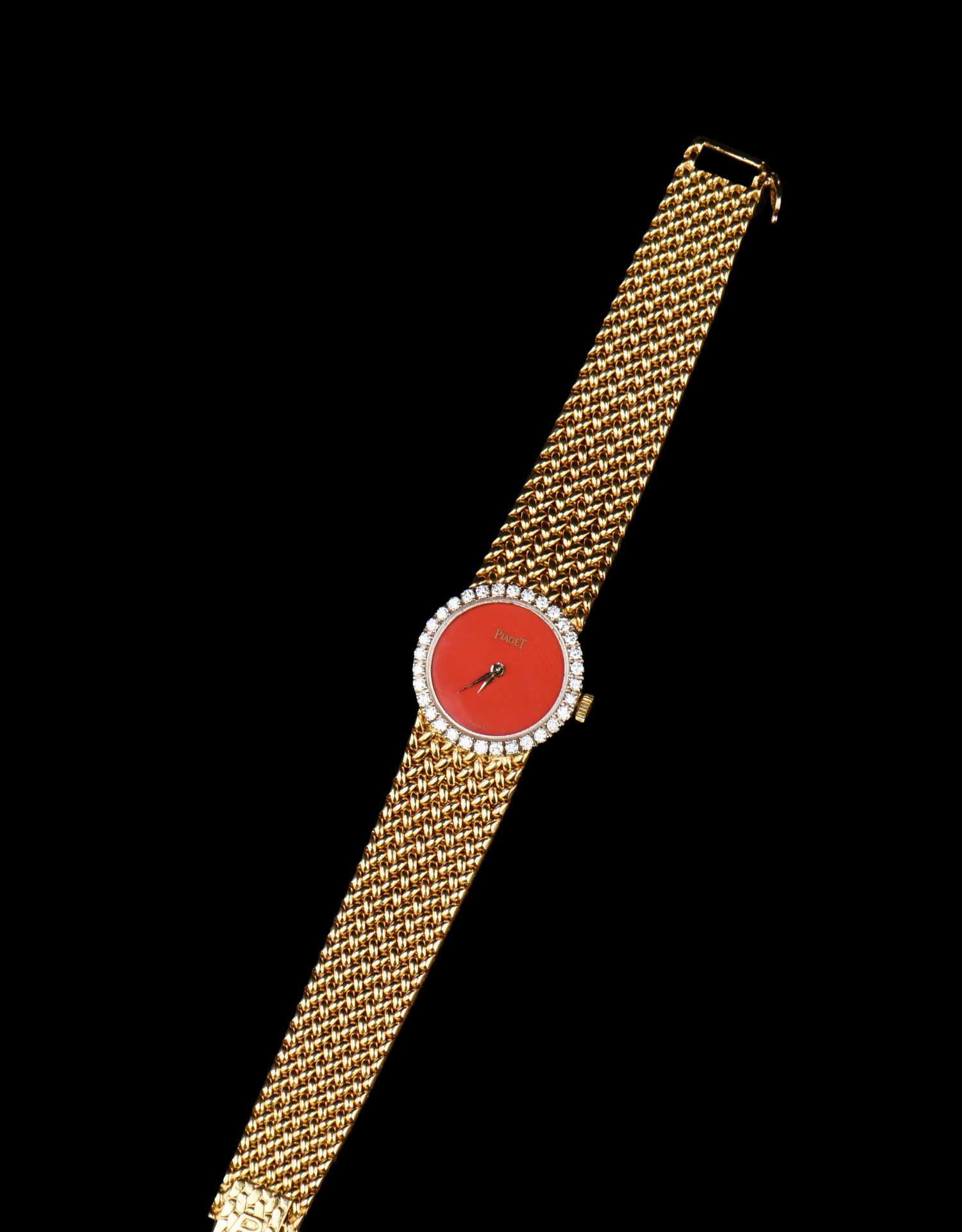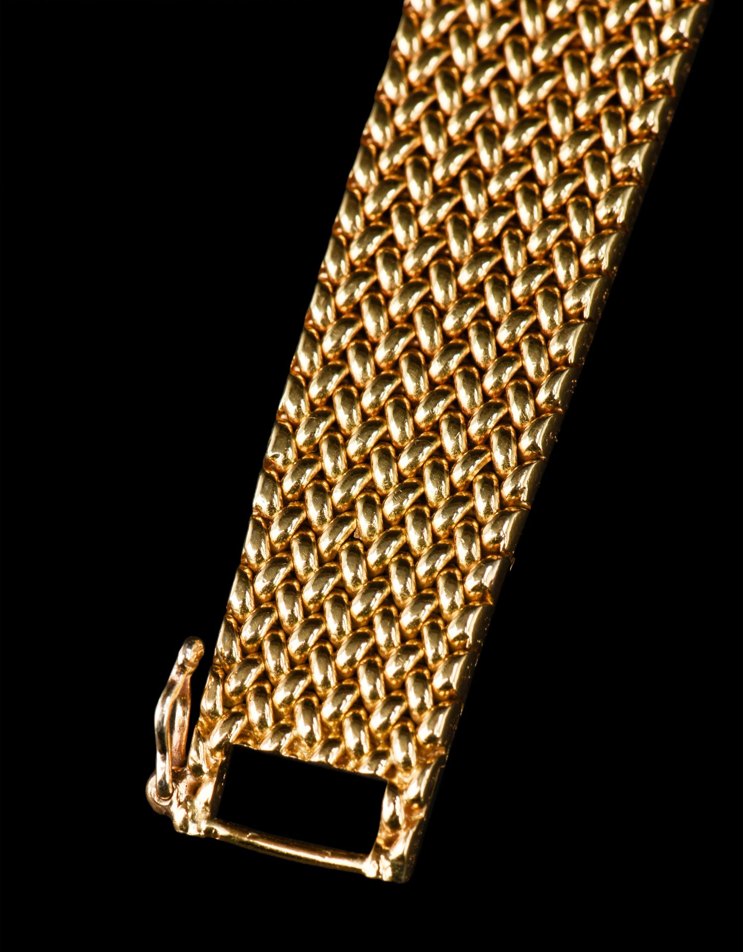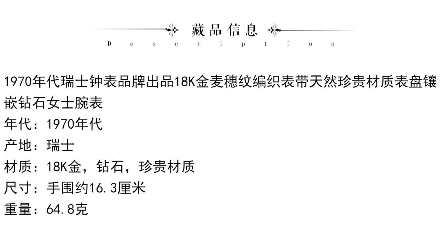 独角鹿西洋古董瑞士著名钟表品牌18K金麦穗纹编织镶钻石女士腕表