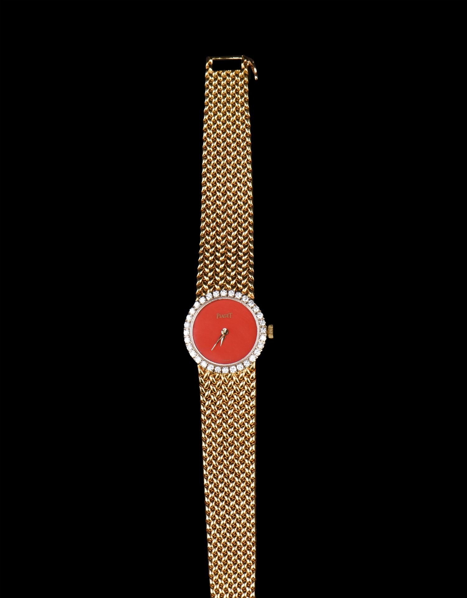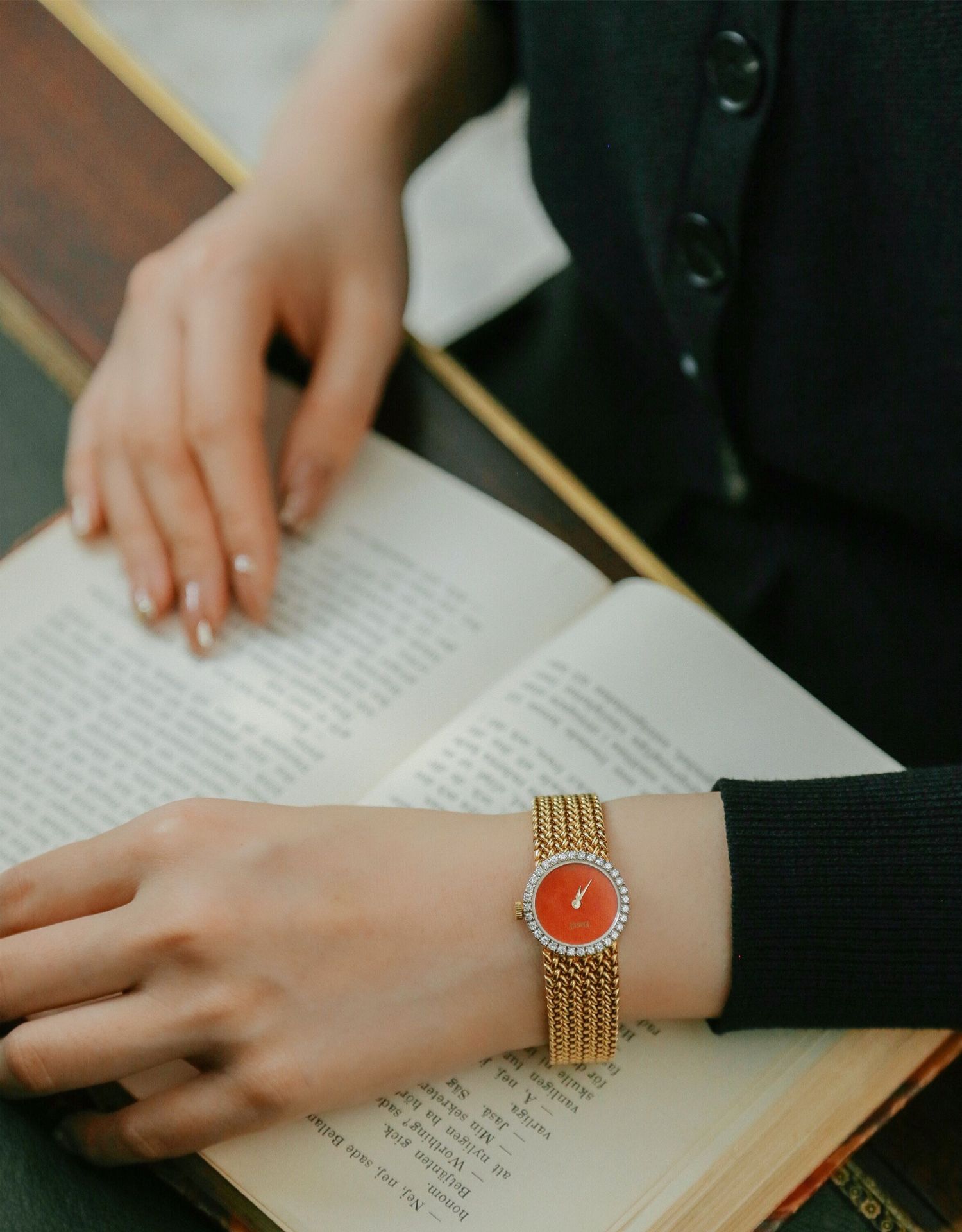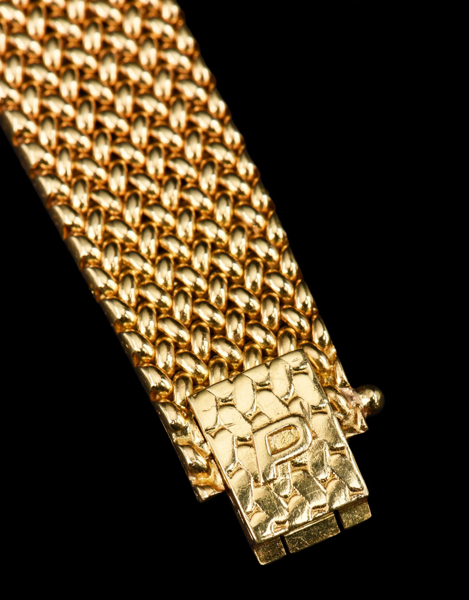 独角鹿西洋古董瑞士著名钟表品牌18K金麦穗纹编织镶钻石女士腕表