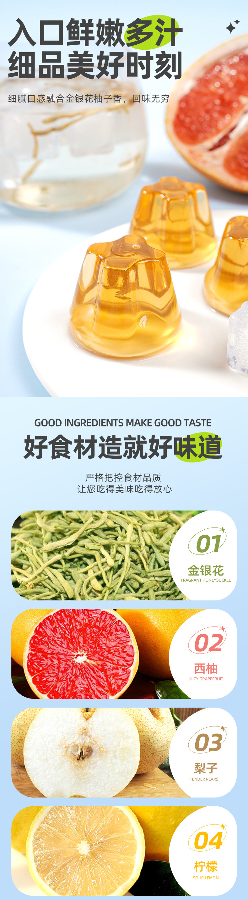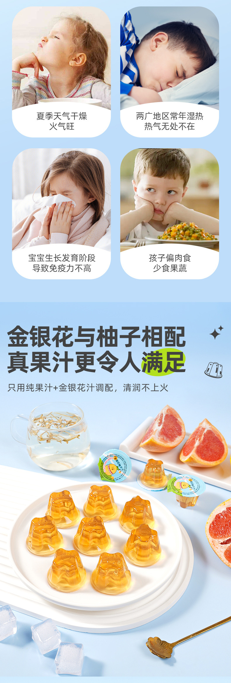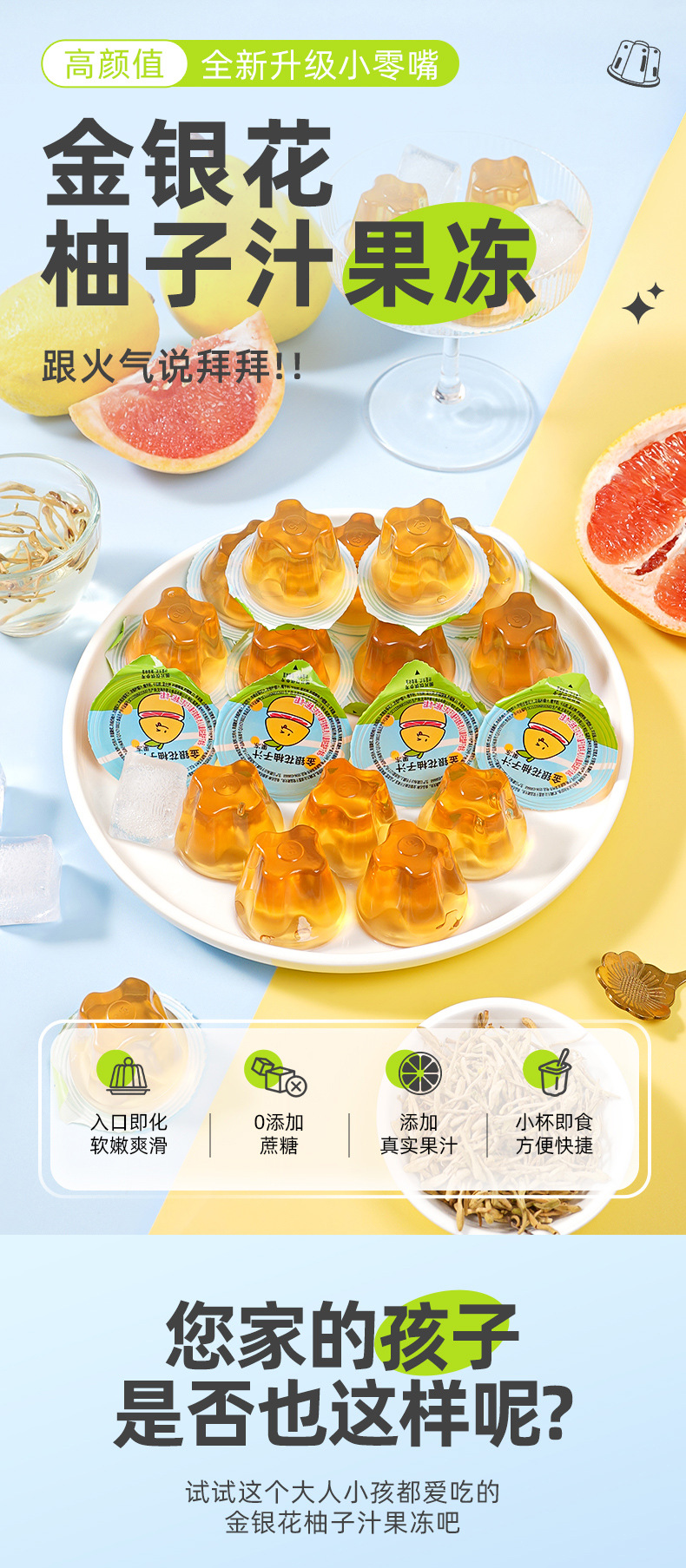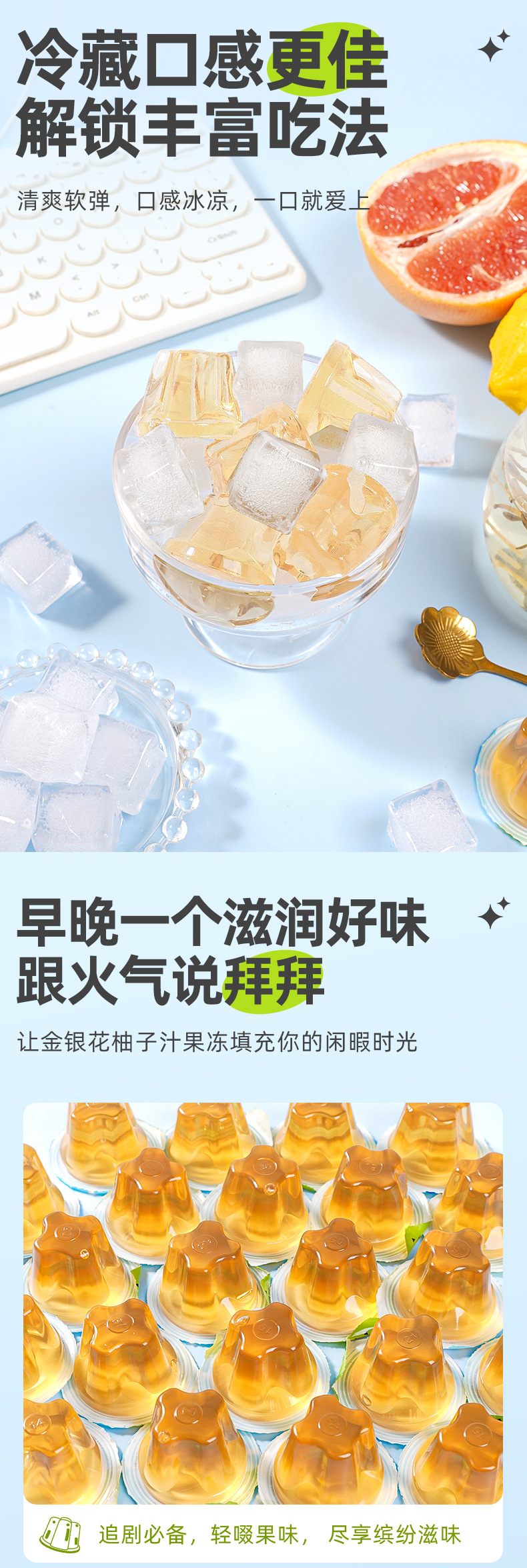 【29.9抢90包!金银花柚子汁果冻】金银花与柚子相配,真果子令人满足,跟火气说拜拜,Q弹降火清润凉喉,浓缩柠檬梨汁零食解馋L